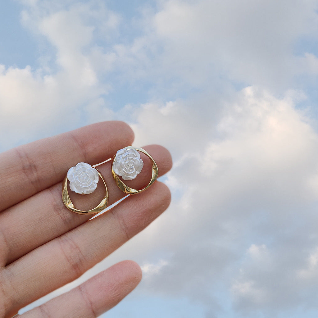 C廠【1804】法式時尚玫瑰花氣質耳環通勤大氣高級感立體花朵幾何溫柔百搭耳環 24.04-4