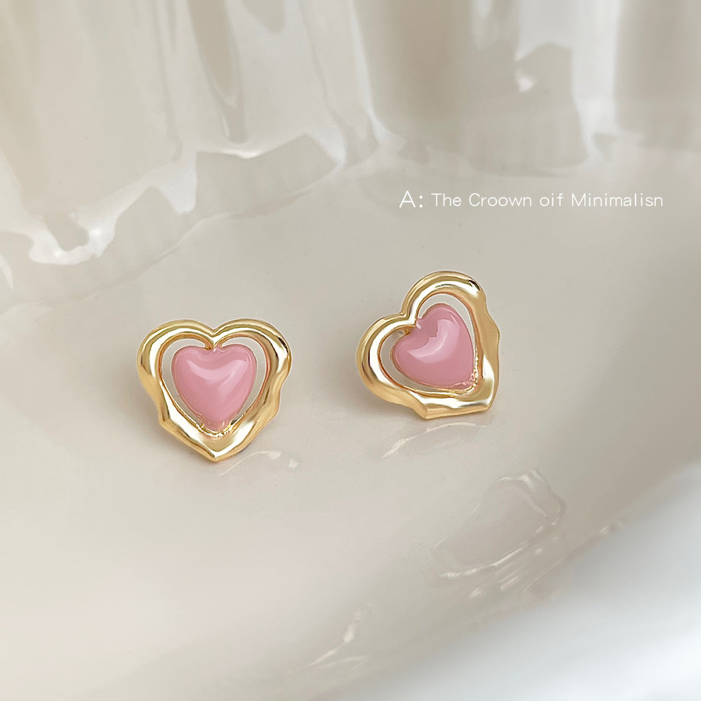C廠【2160】清新甜美愛心手工滴油耳環女時尚通勤氣質高級感百搭耳環 25.08-1