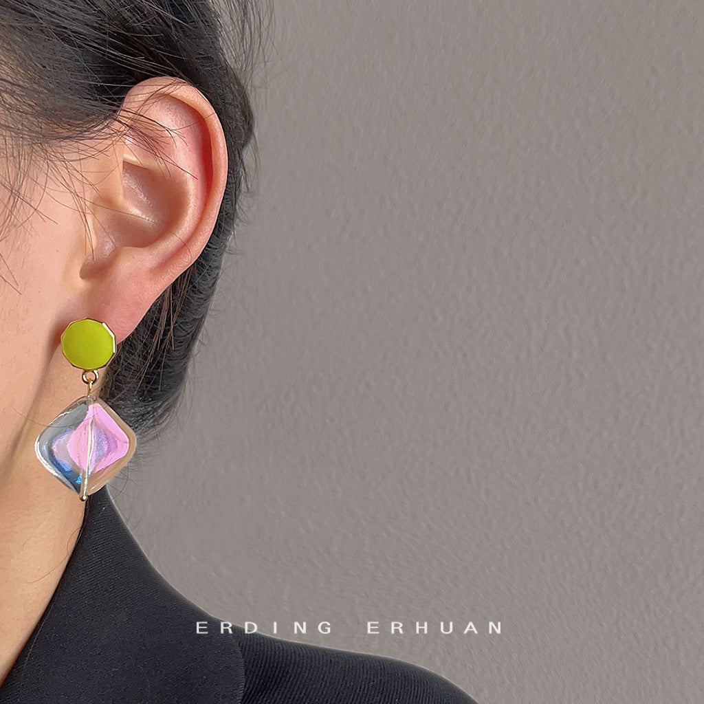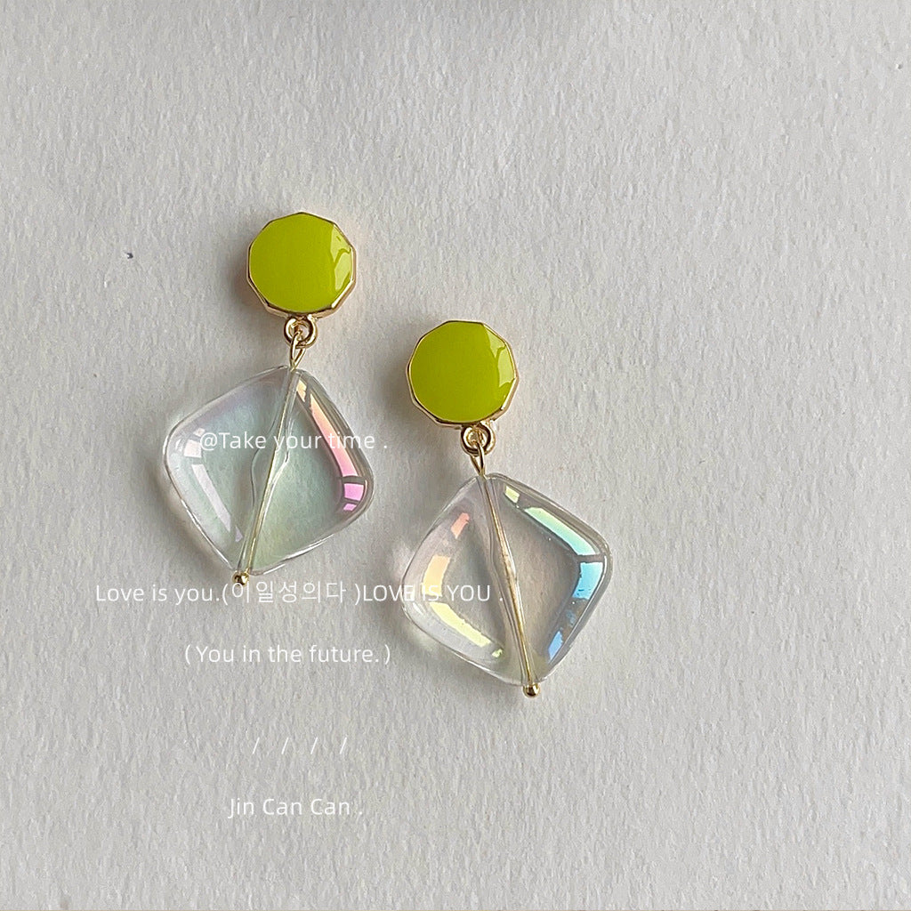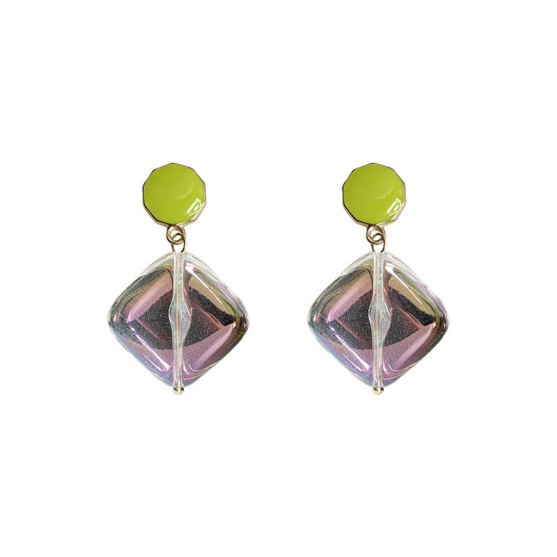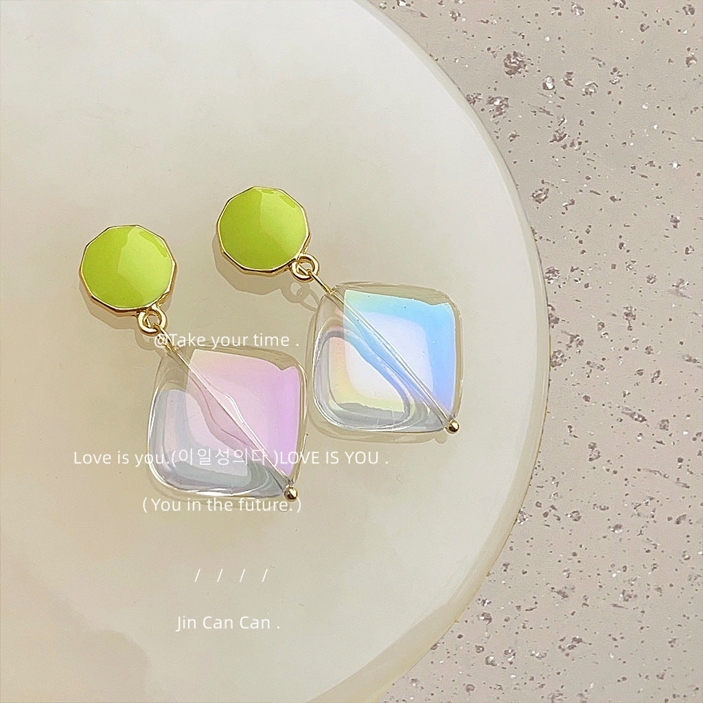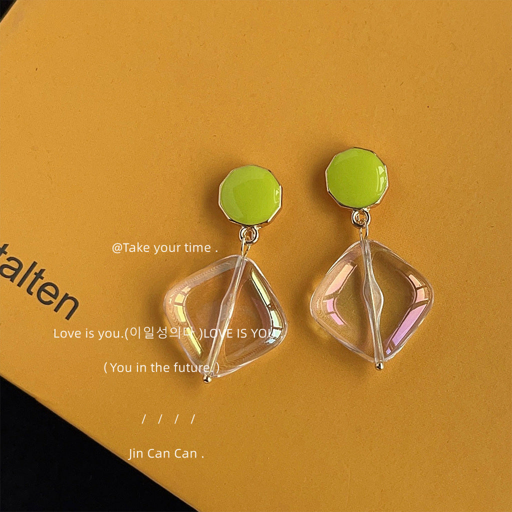 C廠【223】夏季清透感酪梨綠幾何耳環小清新設計感透明壓克力度假風耳飾女 24.07-2