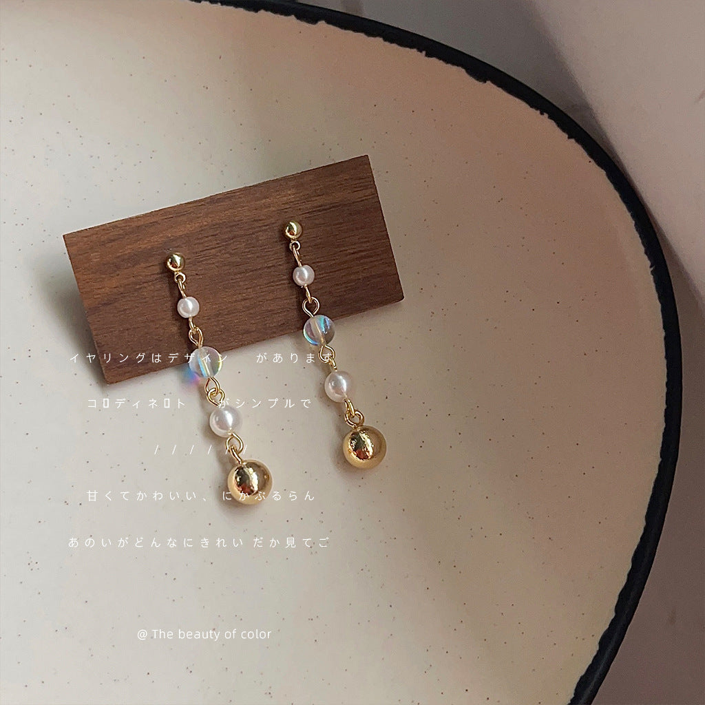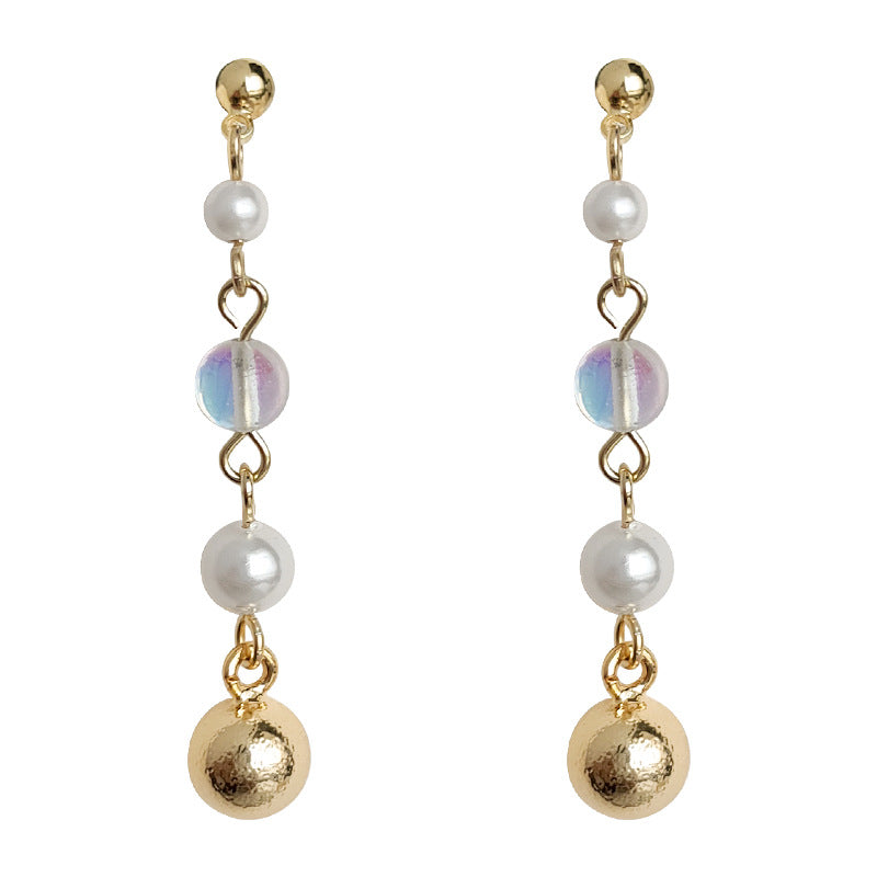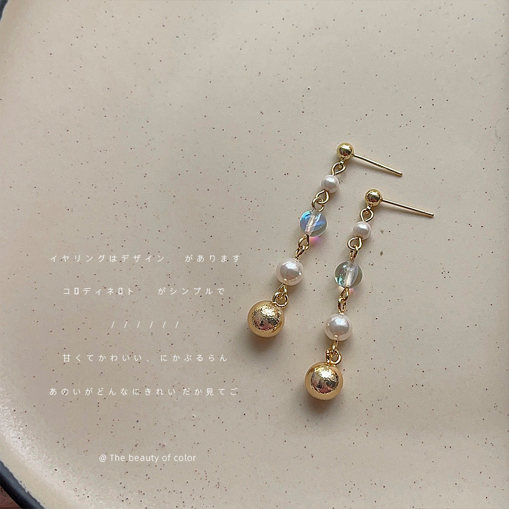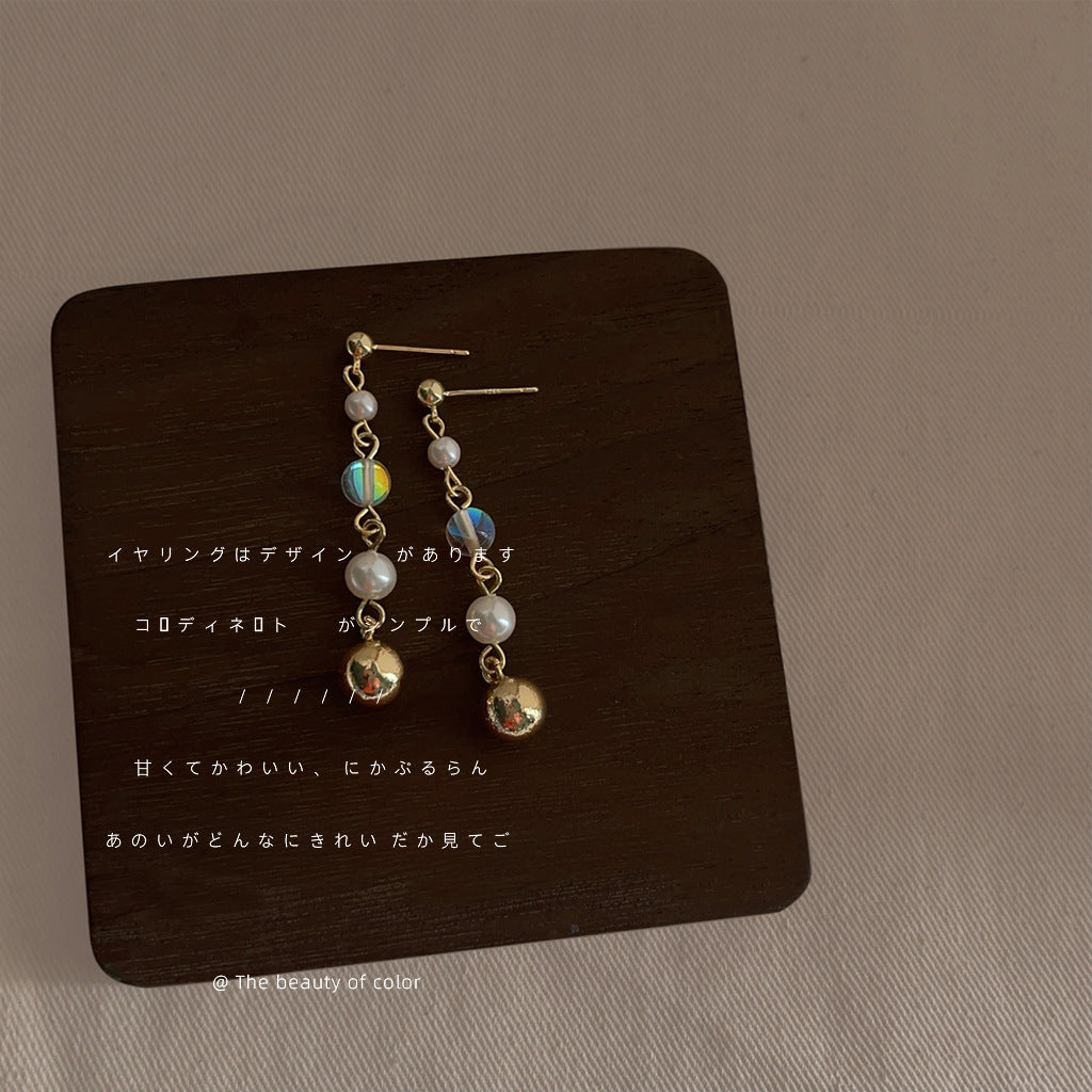C廠【2417】法式輕奢玻璃水晶手工藝串珠耳環高級感溫柔簡約設計感流蘇氣質耳飾 24.06-2