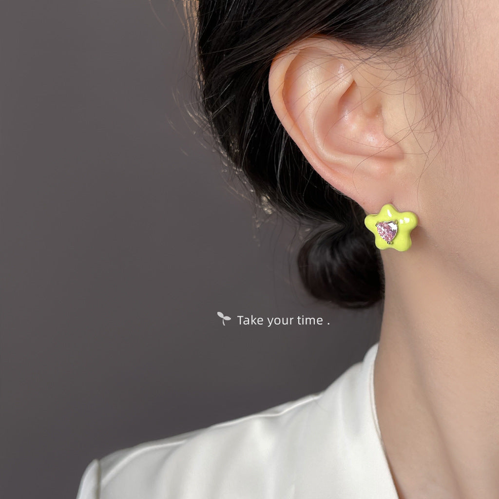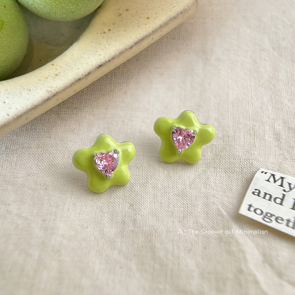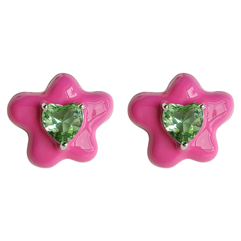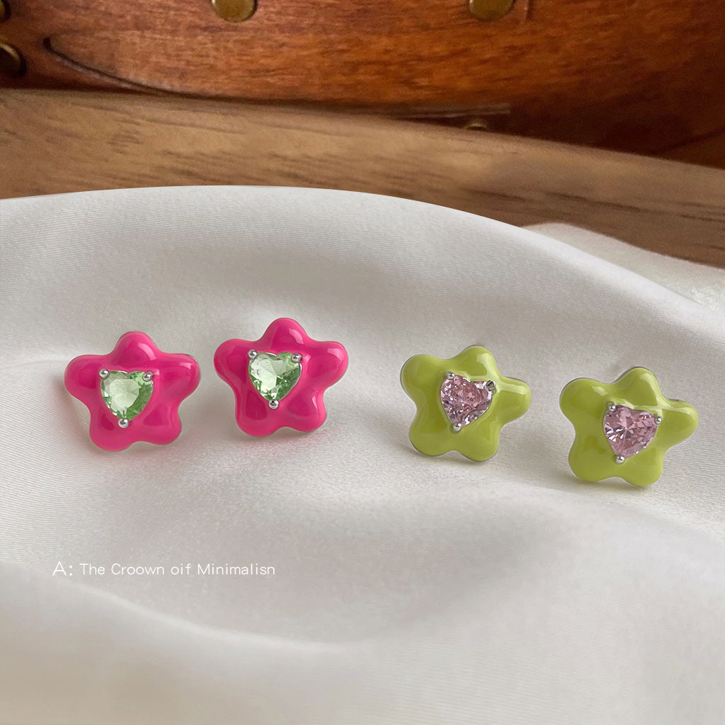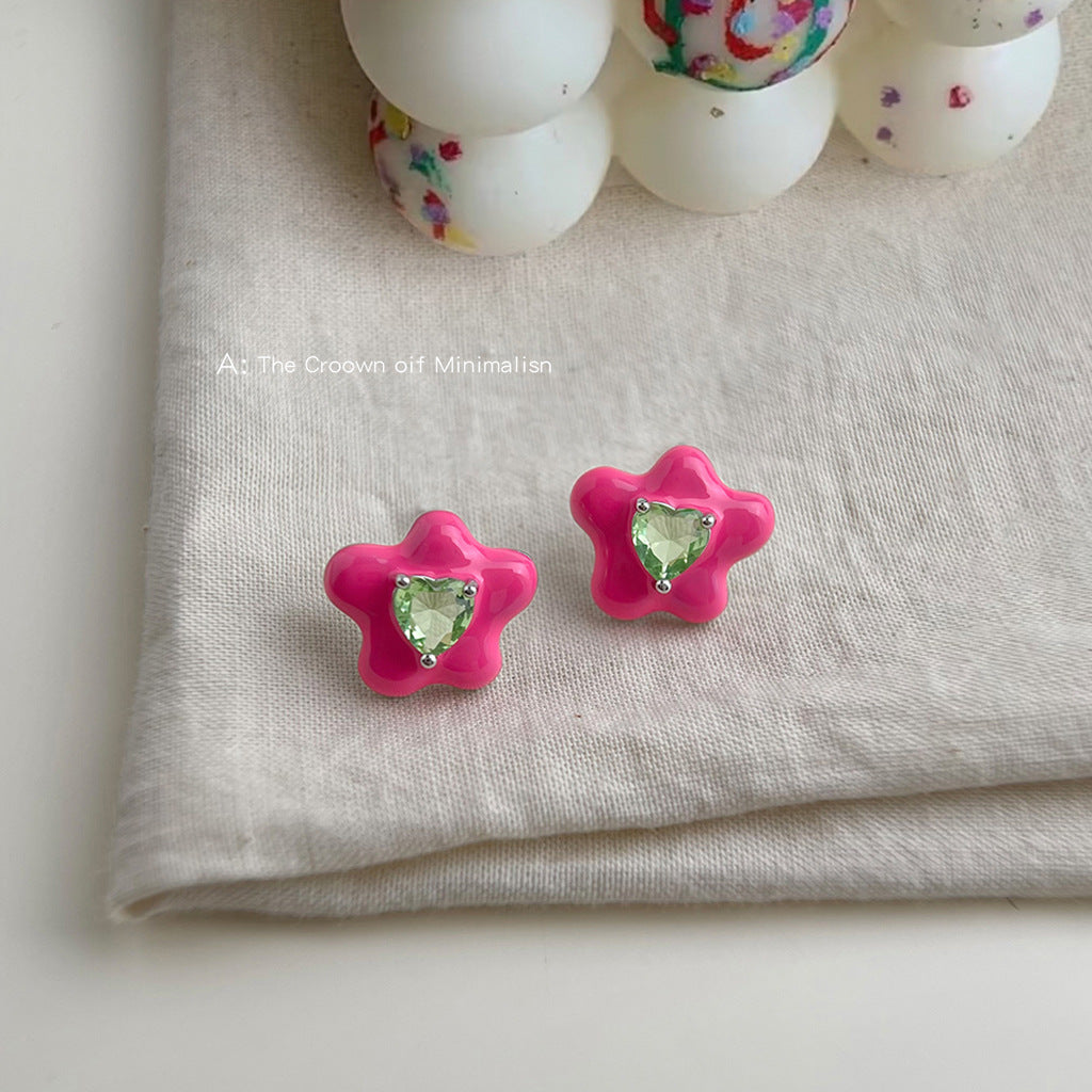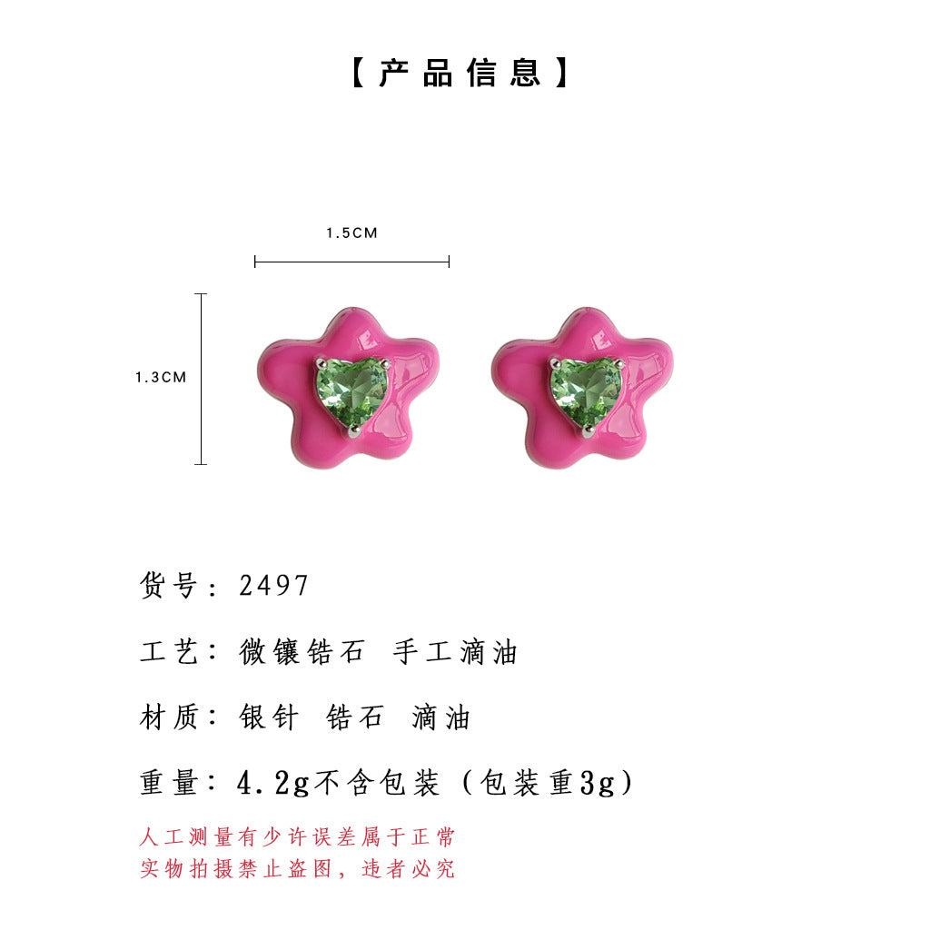 C廠【2497】甜酷風彩色液態花朵耳環小眾設計感個性糖果色微鑲鋯石小花耳飾女 25.08-5
