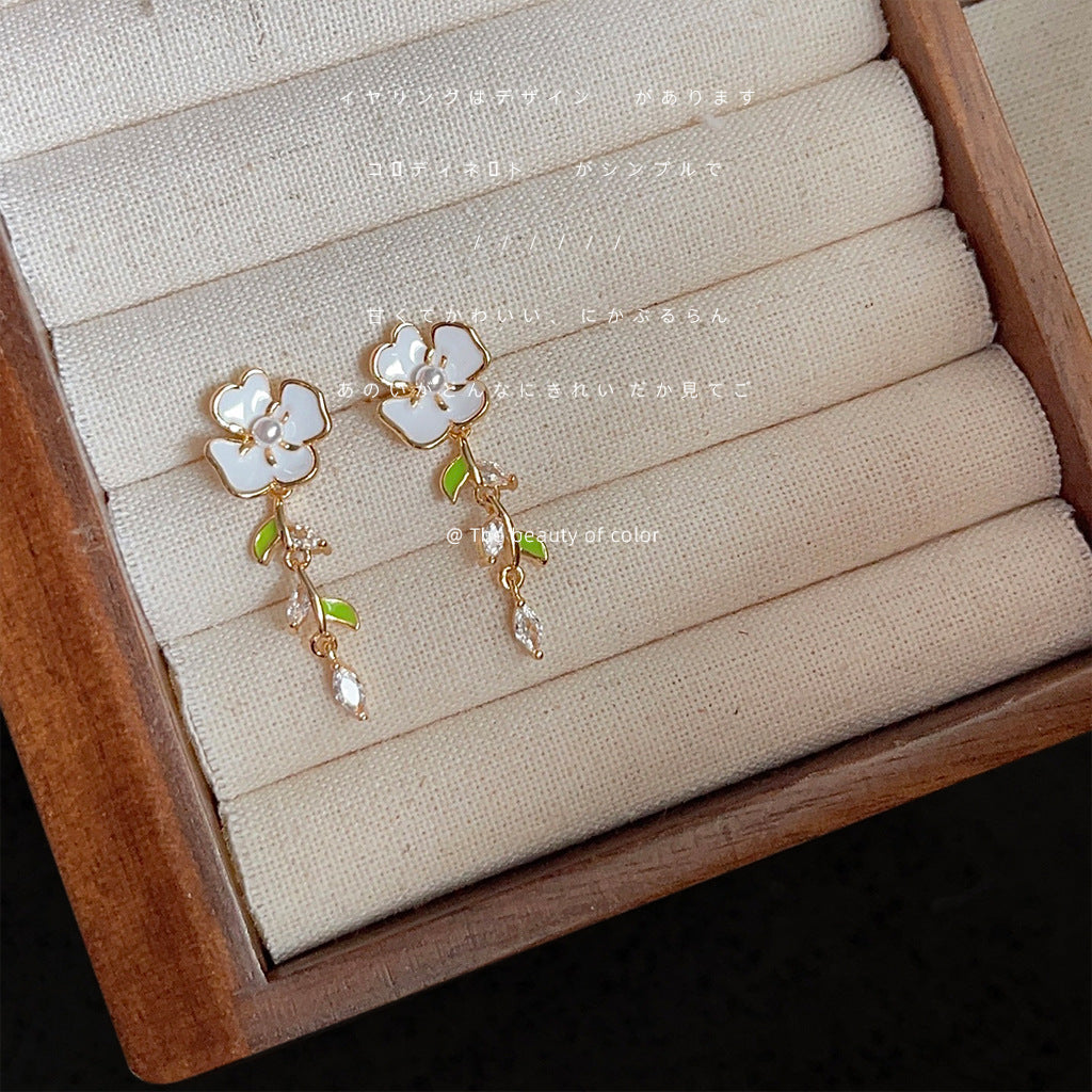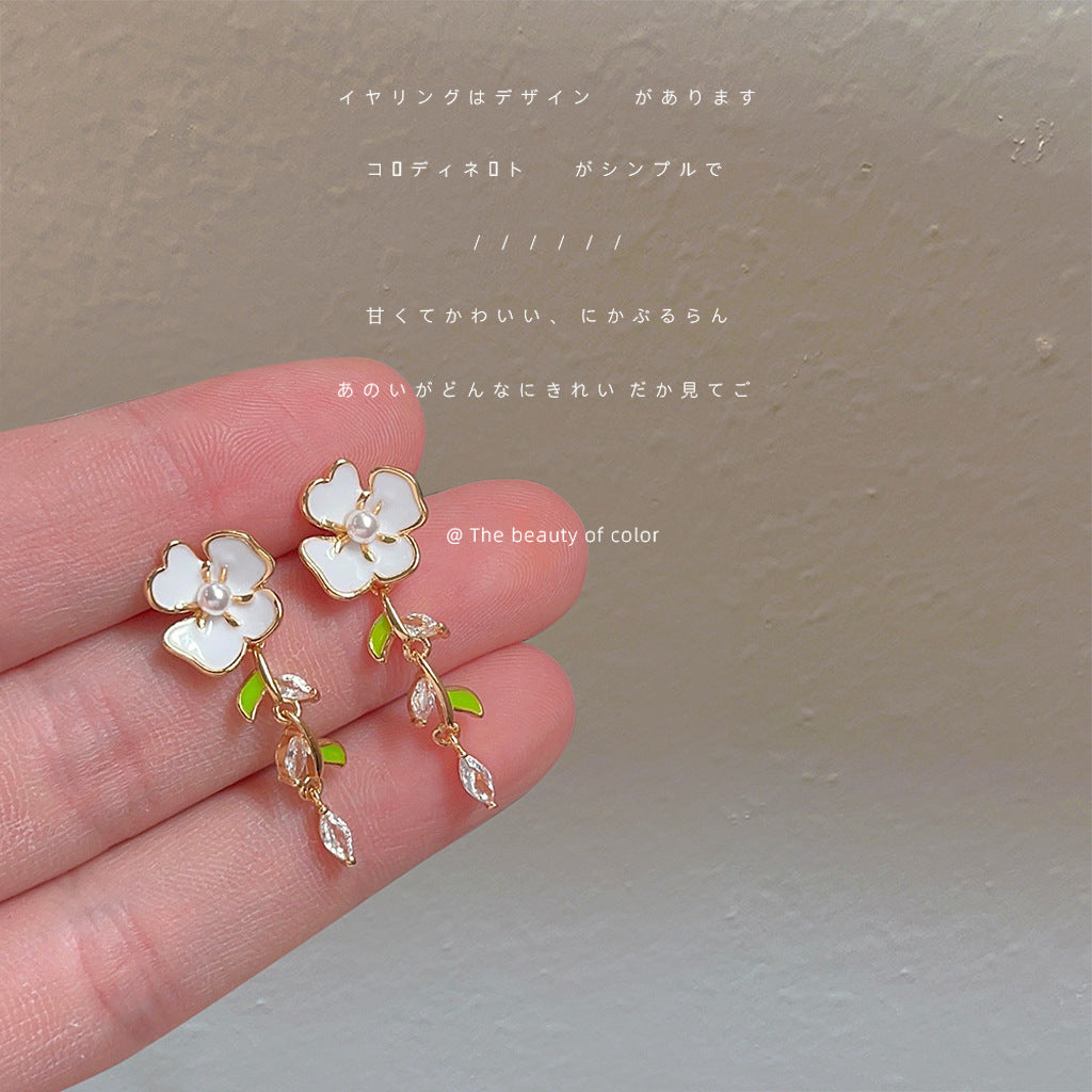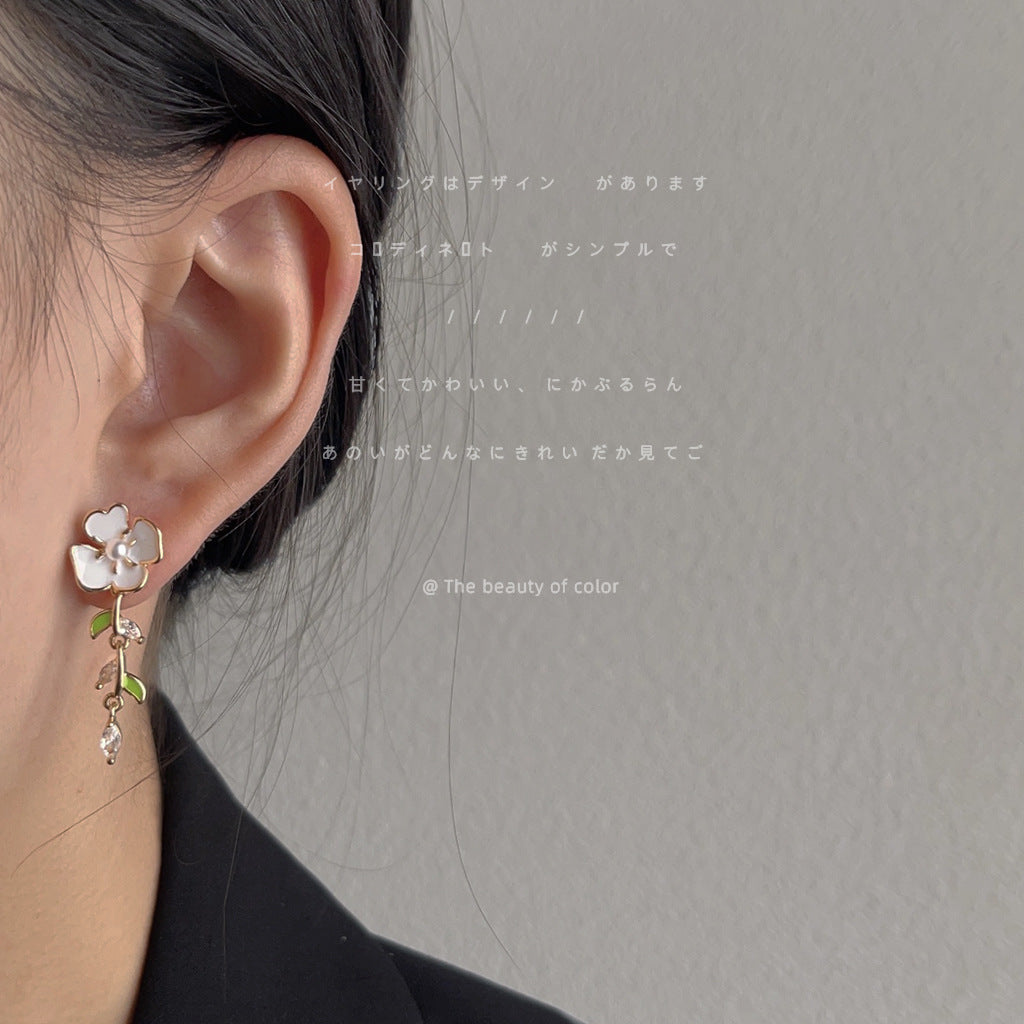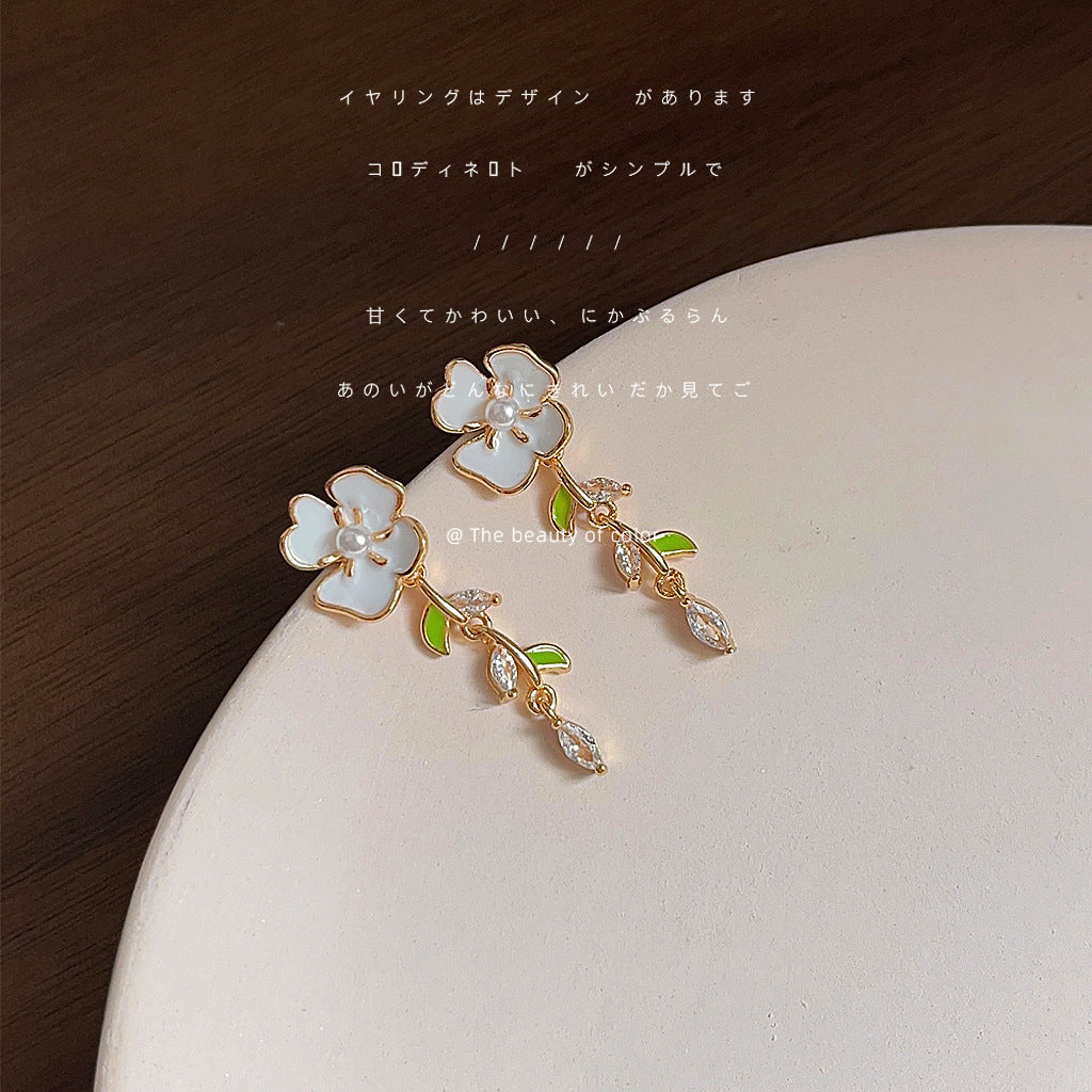 A廠【2551】春夏森系清新微鑲鋯石花朵耳環925銀針度假風滴釉樹葉甜美耳飾女 25.11-4