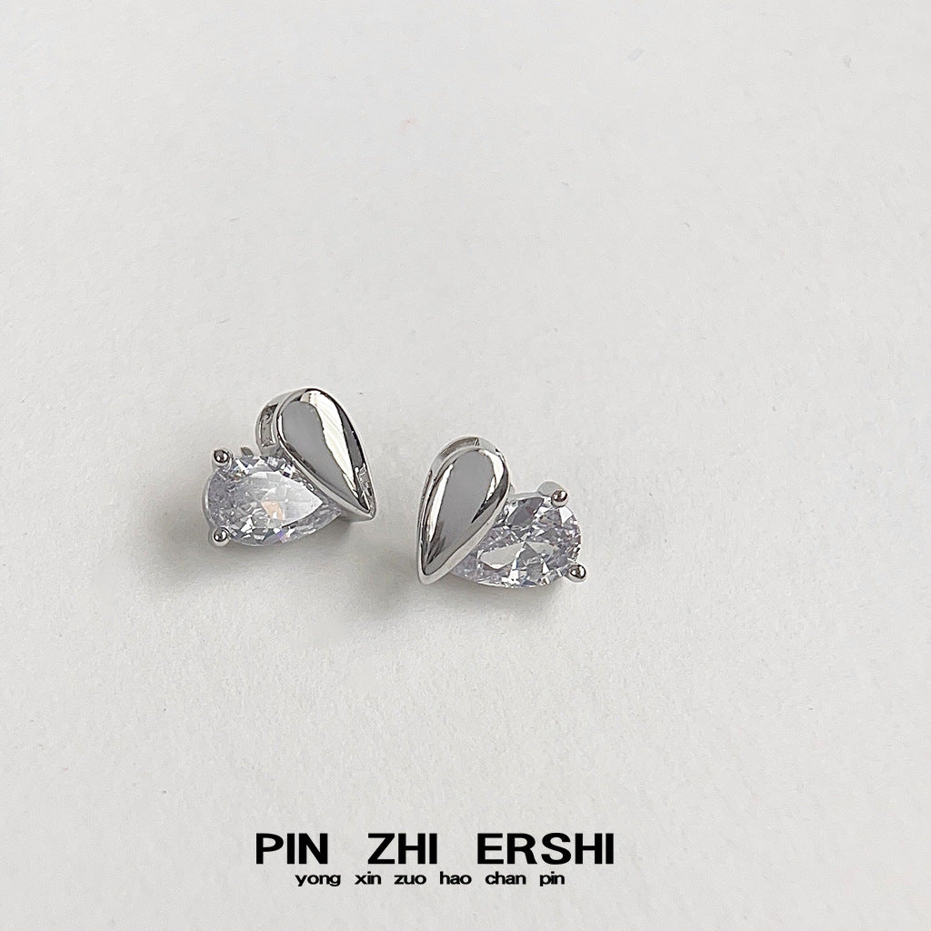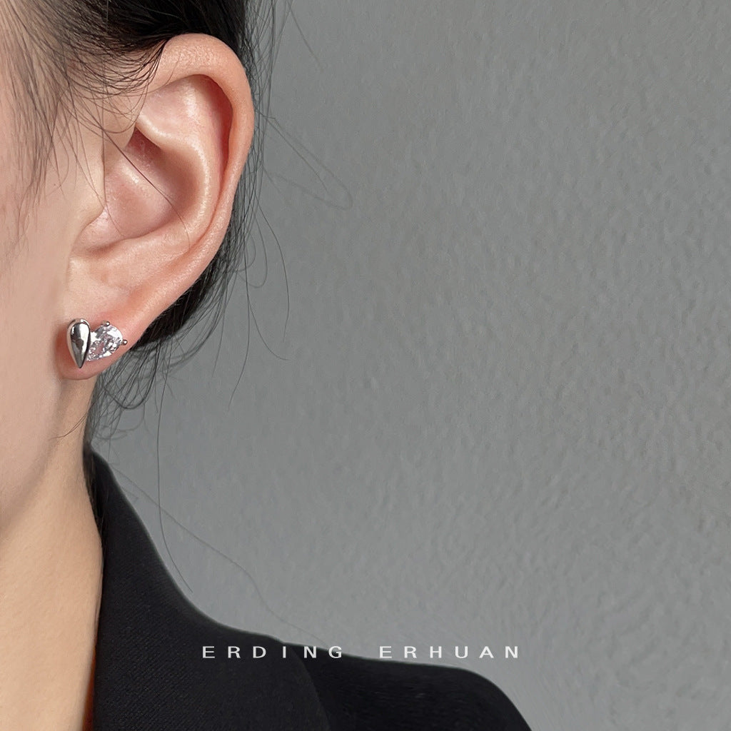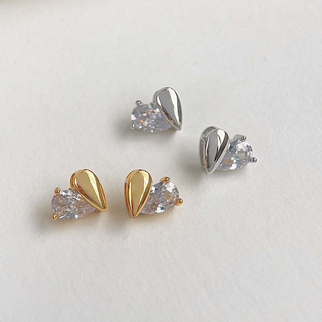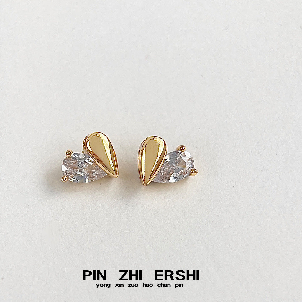 C廠【2621-22】升級版加厚鍍18K真金高級感通勤微鑲鋯石愛心耳環百搭輕奢耳飾女 24.03-2