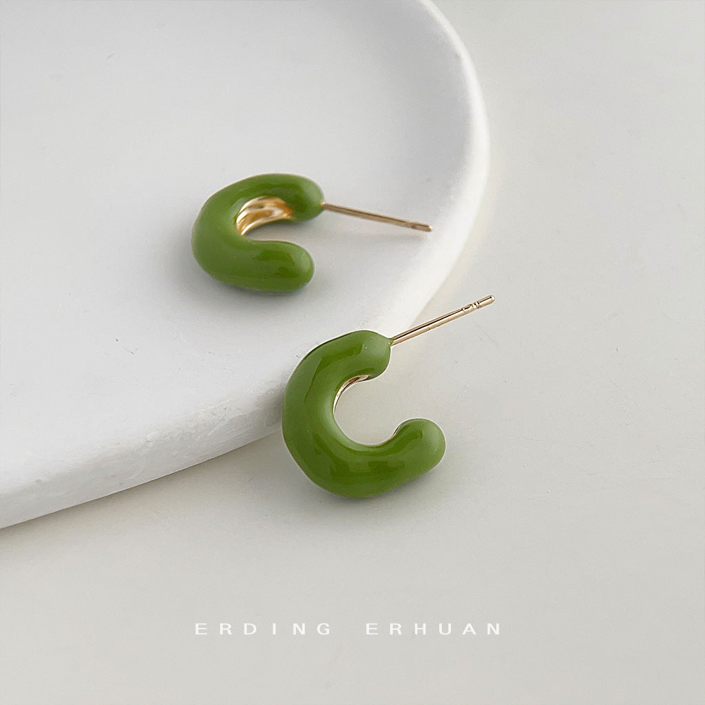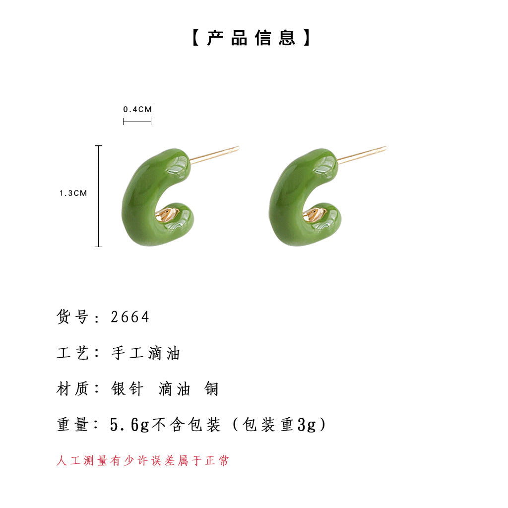C廠【2664】春夏多巴胺酪梨綠顯白C型設計感滴釉耳環通勤百搭清新光面耳飾 24.03-3