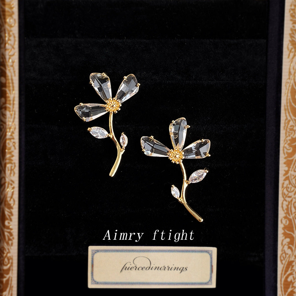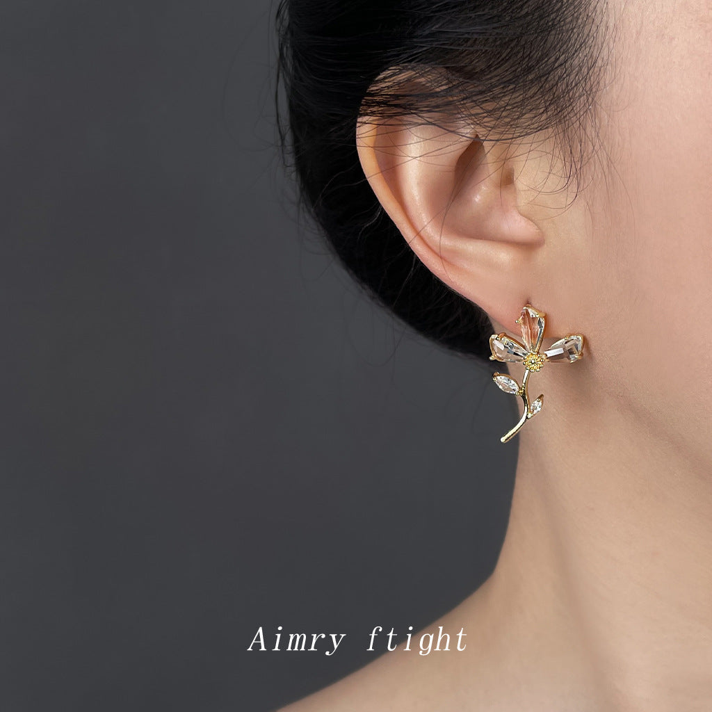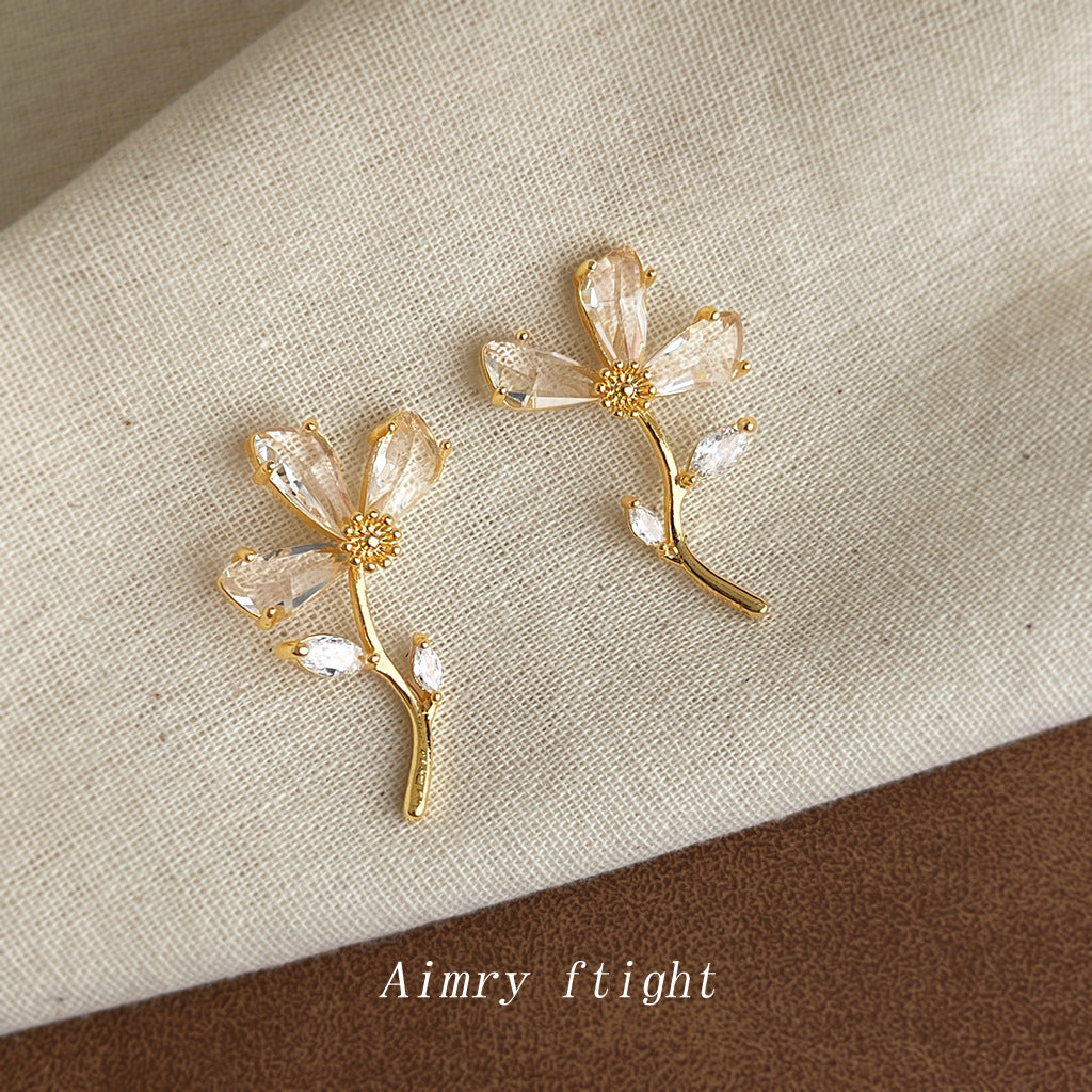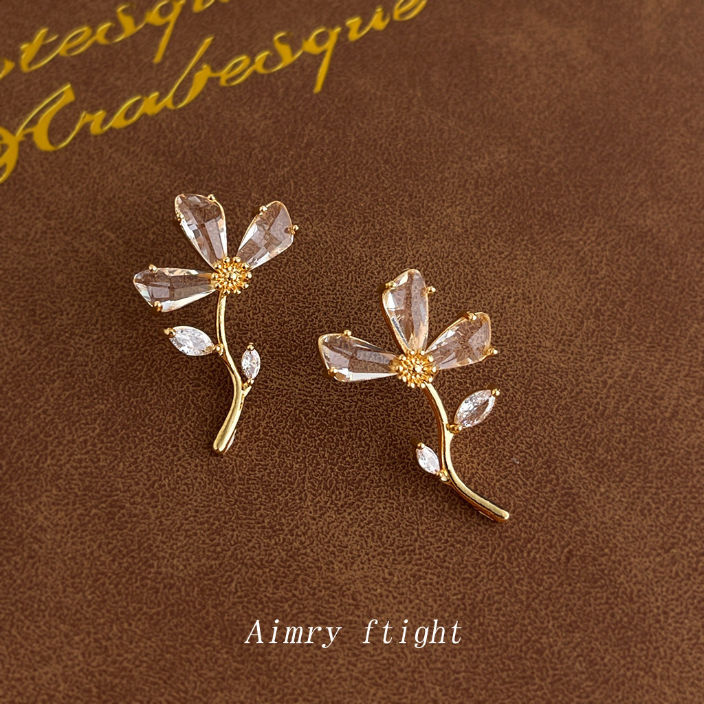 A廠【2730】超仙氣質鋯石花朵耳環女清新甜美高級感耳環時尚優雅耳飾 25.12-1