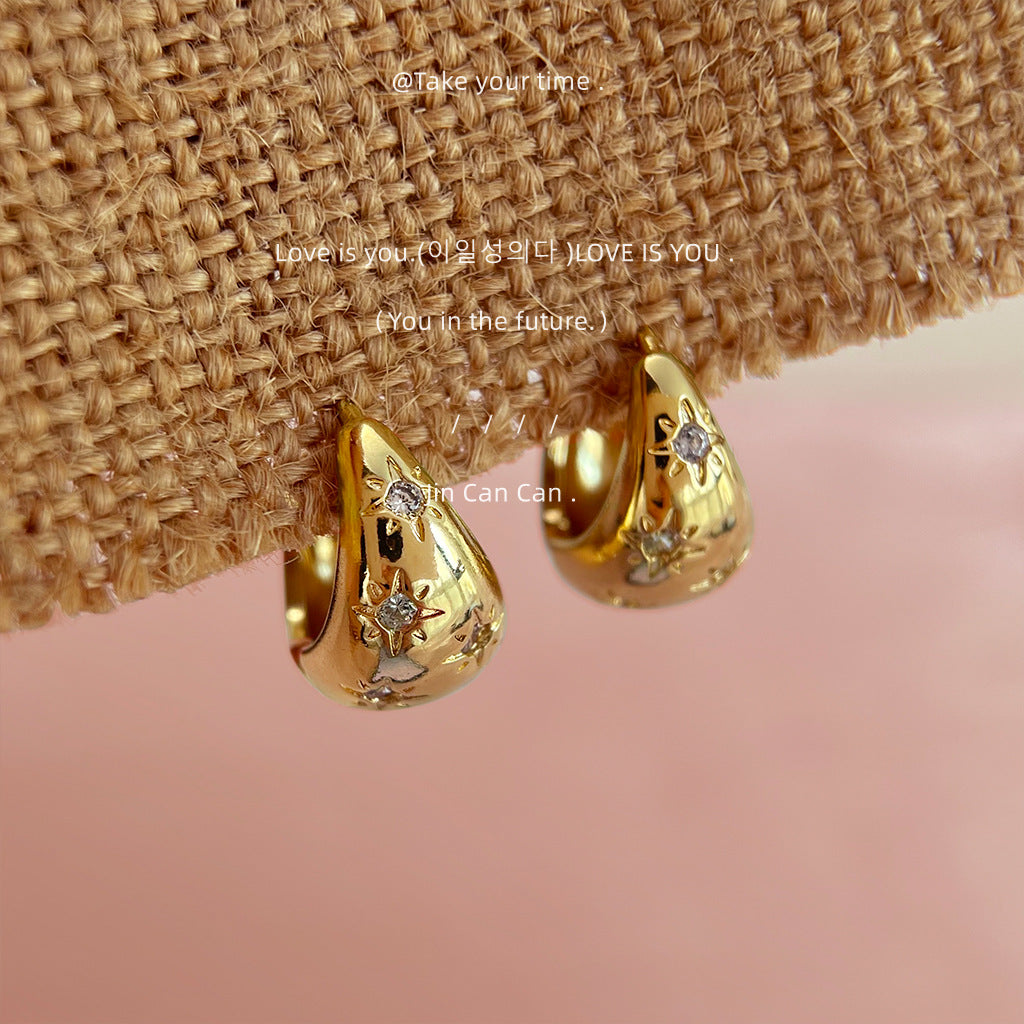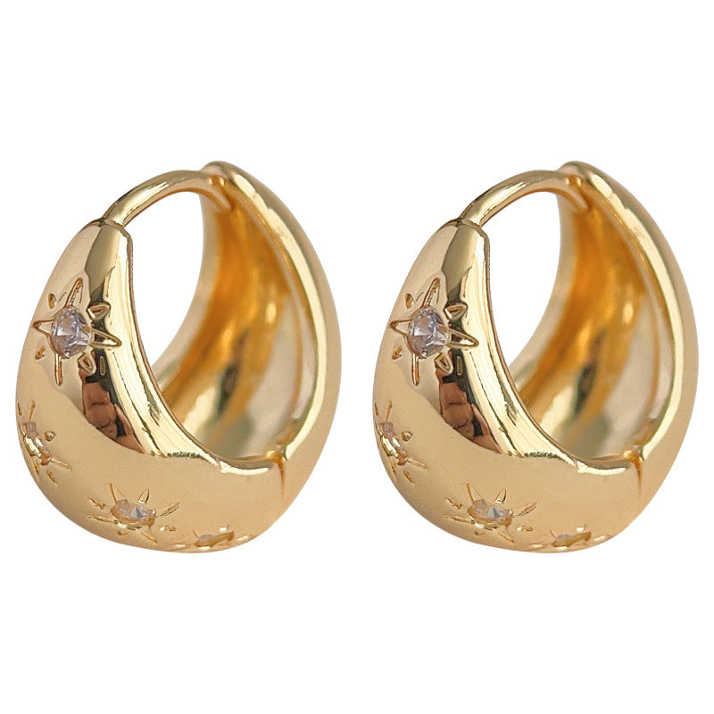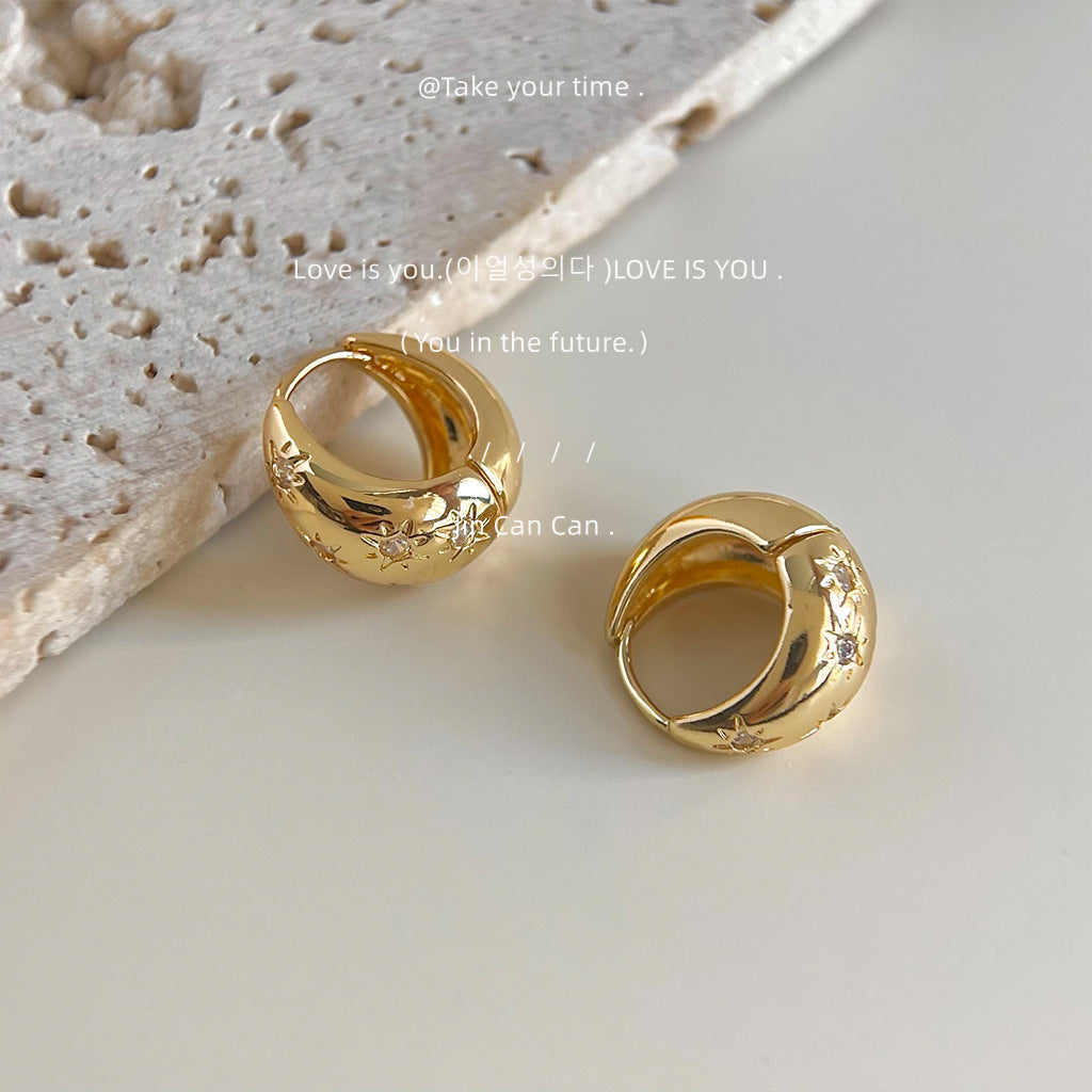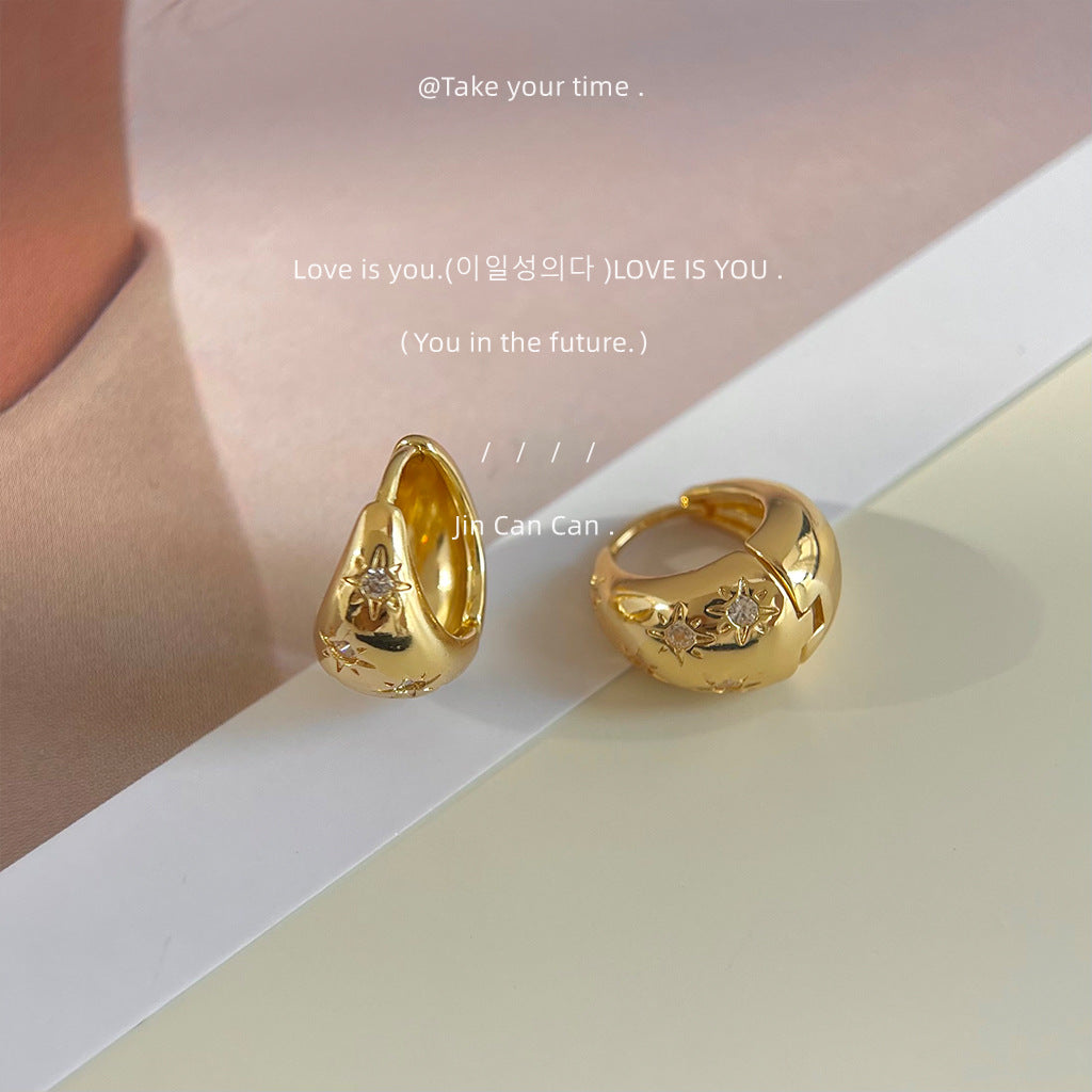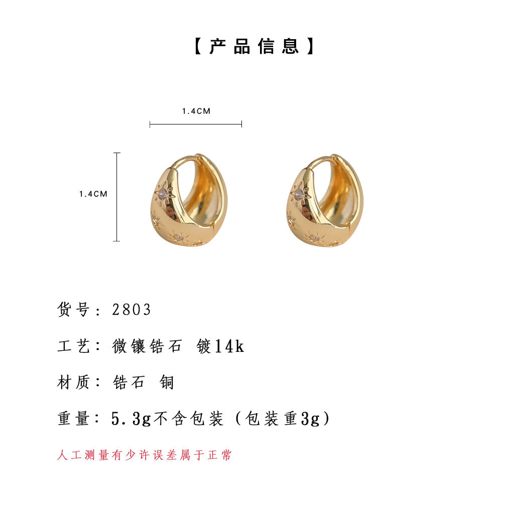 C廠【2803】時尚高級感輕奢風微鑲鋯石保色電鍍芒星幾何圓形耳環耳環飾品 25.08-1