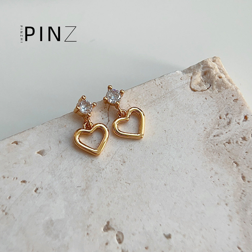 C廠【2991】升級版電鍍18K真金加厚迷你版微鑲鋯石愛心小耳環通勤簡約耳飾女 24.05-3
