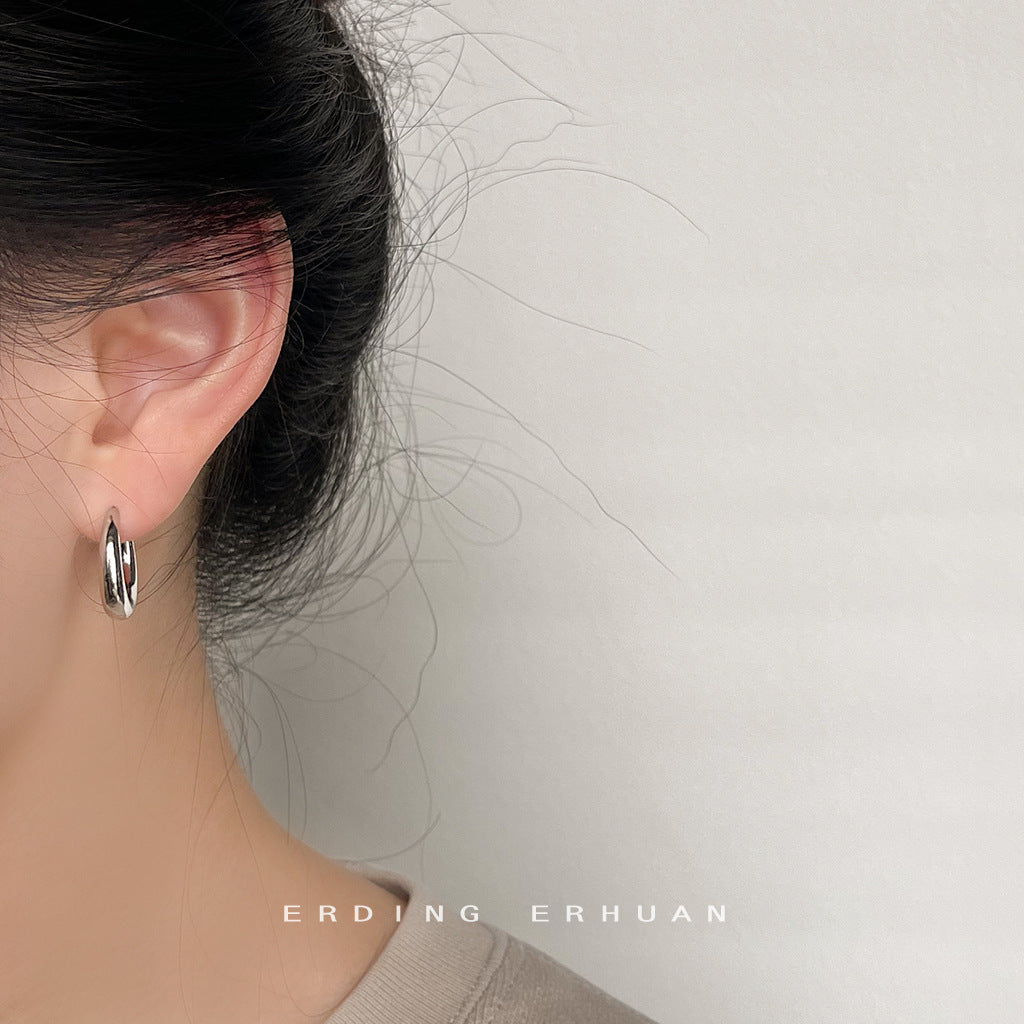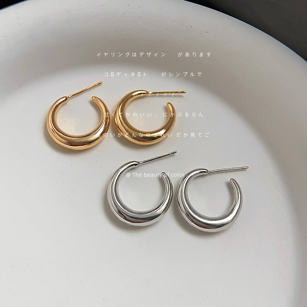 C廠【3096】高級感重工極簡主義鍍14K百搭輕耳奢華飾時尚通勤光面圓形耳環 25.06-3