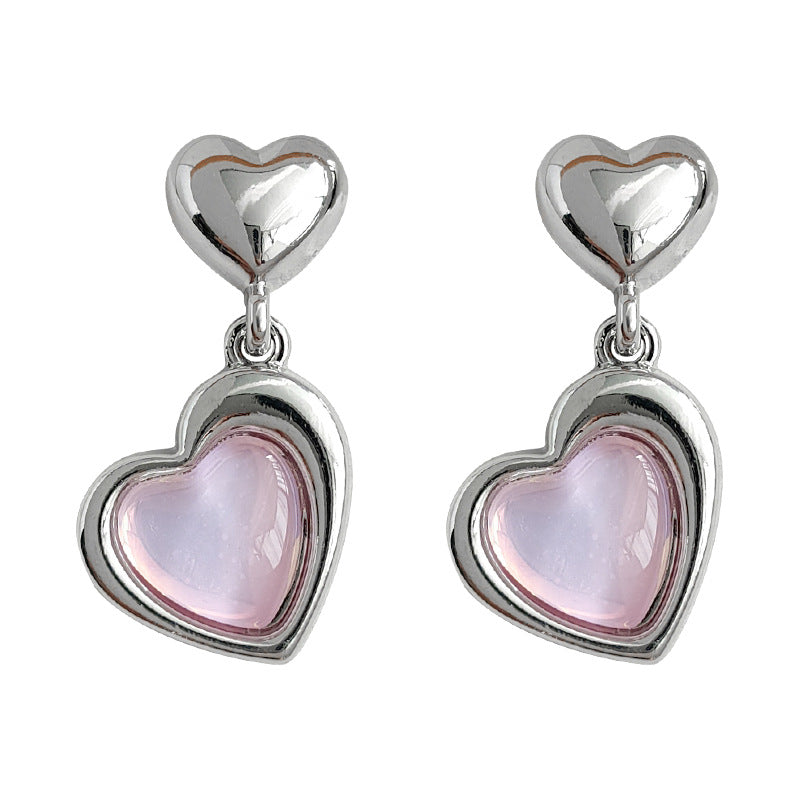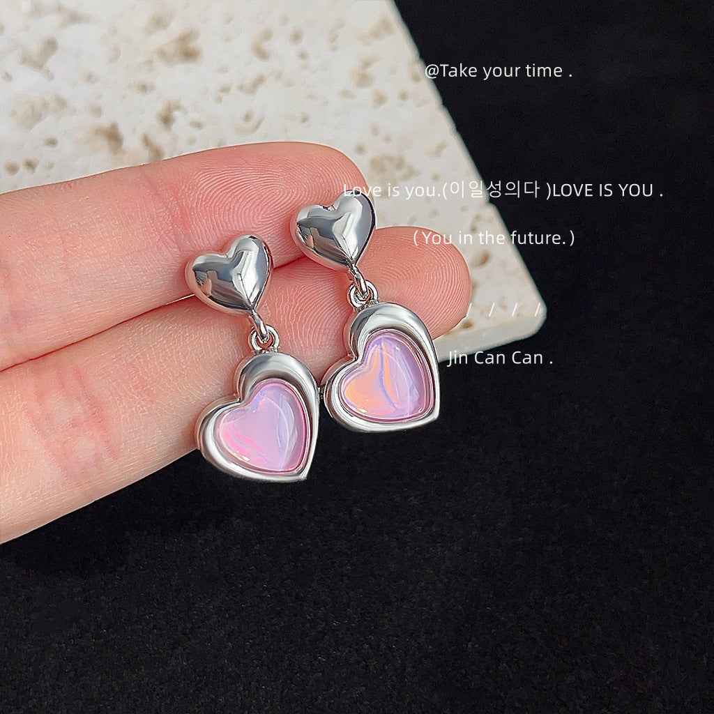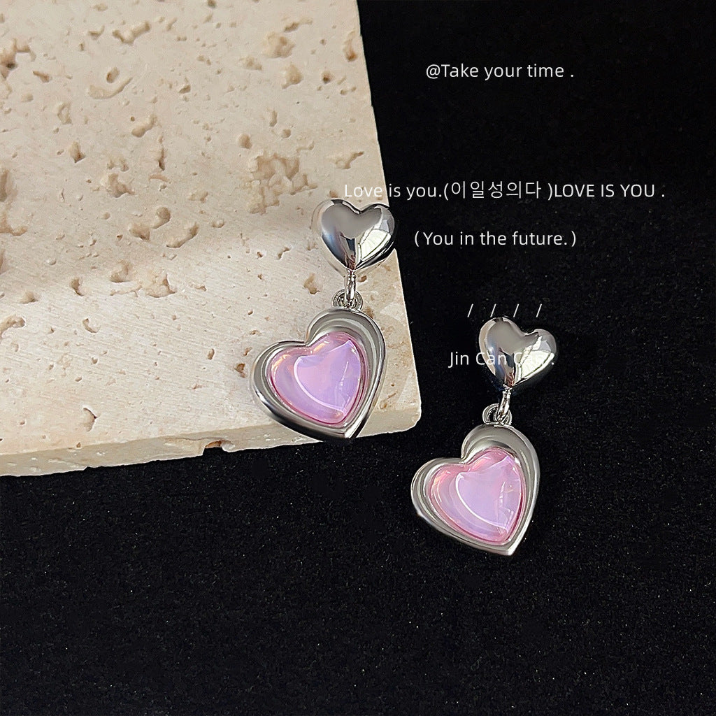 C廠【3142】甜酷風粉色愛心設計感耳環ins風銀色系小眾設計感心形耳環高級感 24.03-2