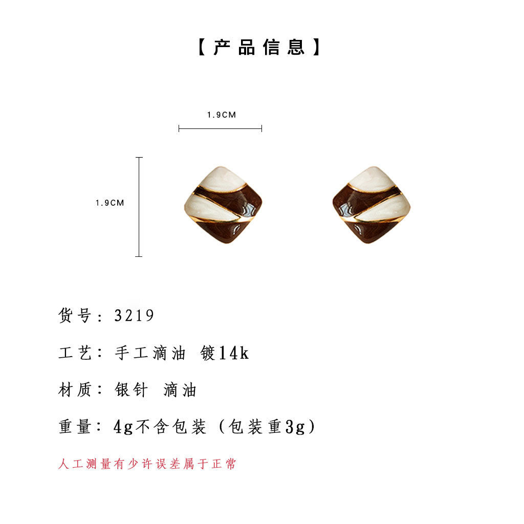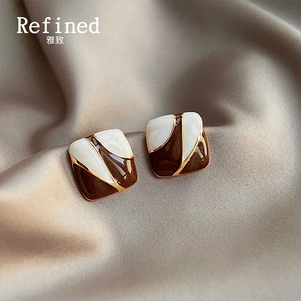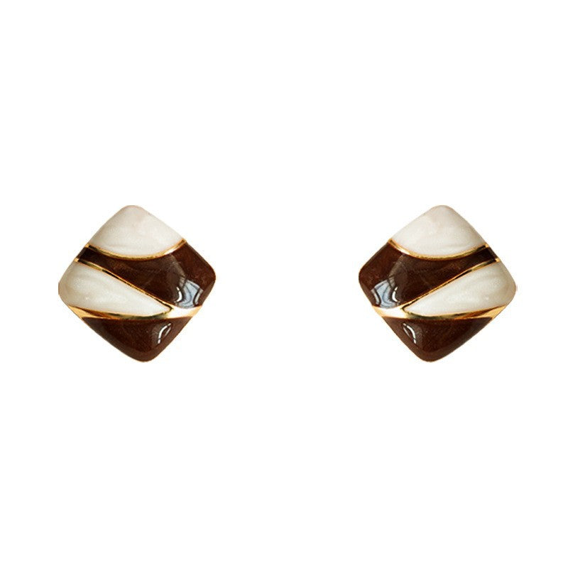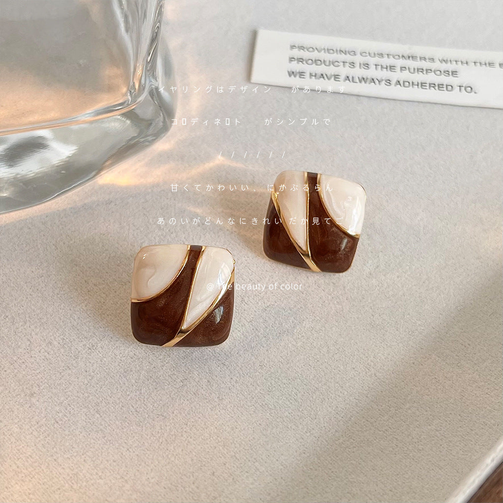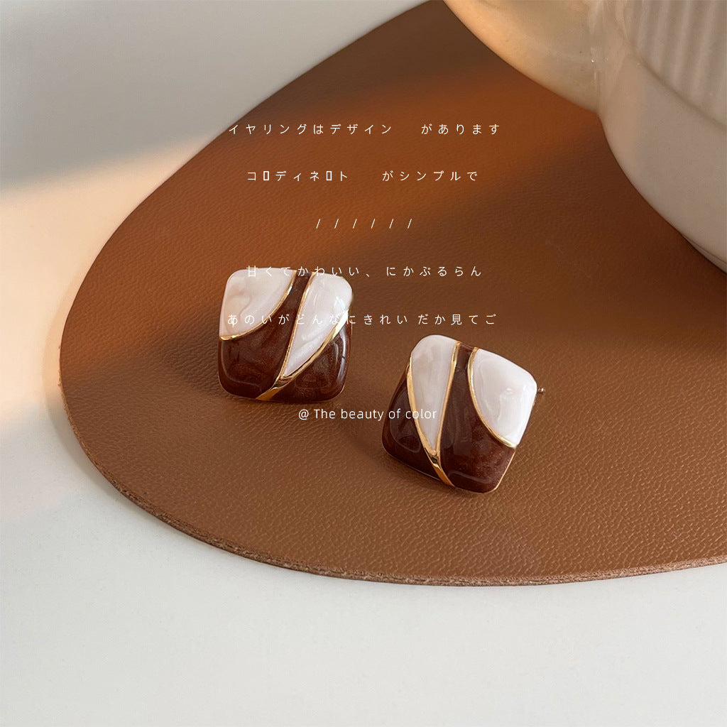 C廠【3219】港風文藝復古幾何方形琺瑯釉撞色酒紅白氣質耳環耳環飾品 25.08-1