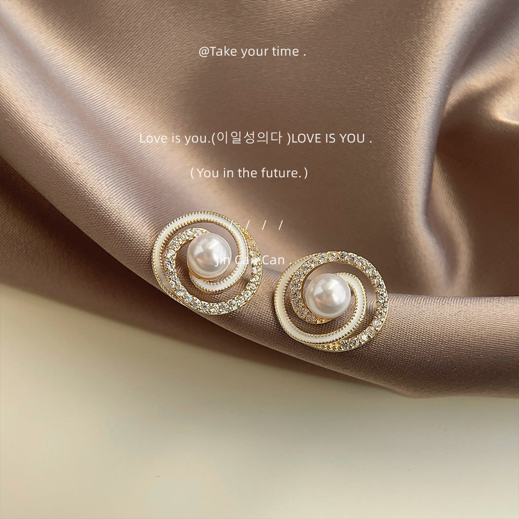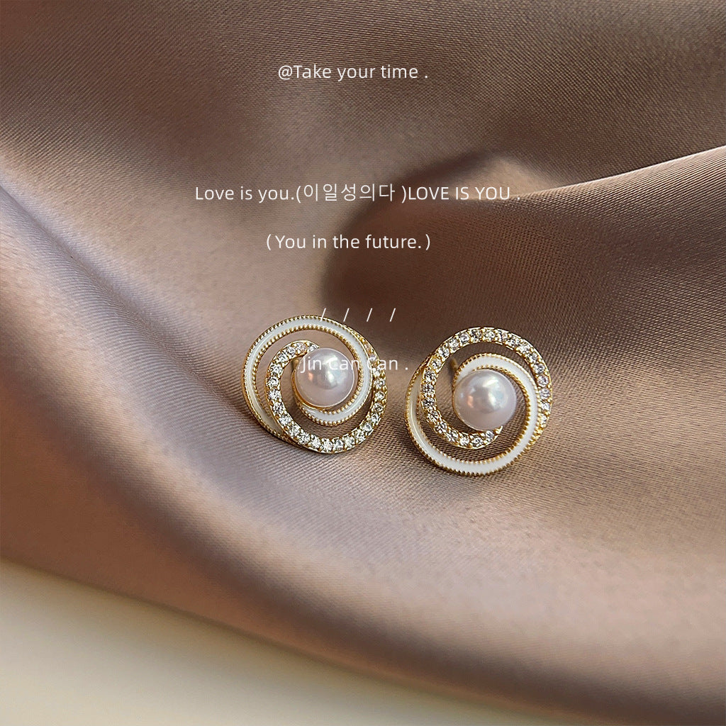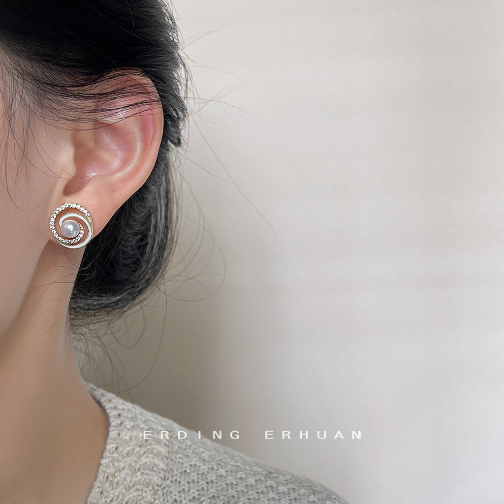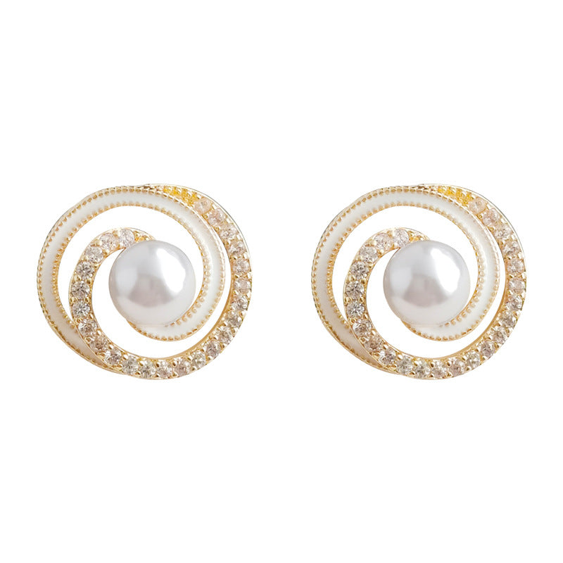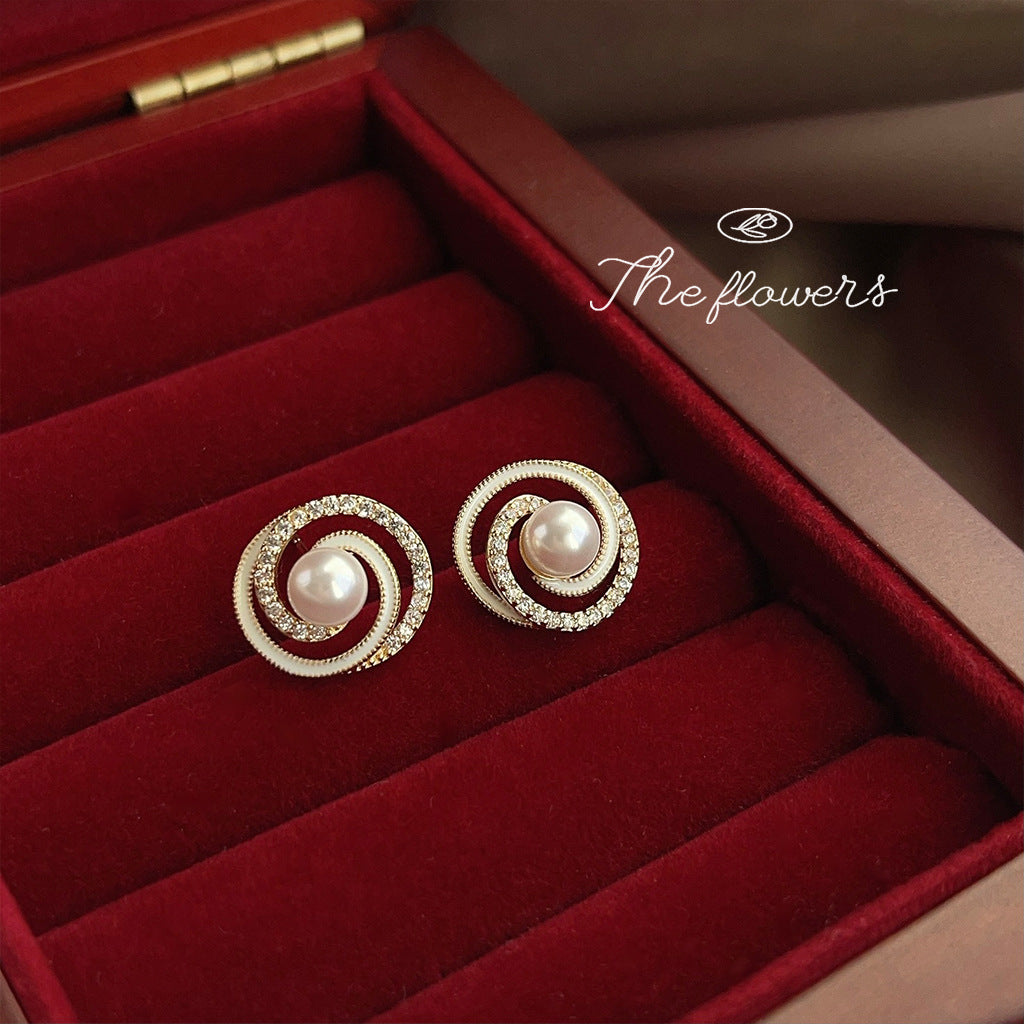 C廠【3230】法式優雅珍珠耳環女微鑲鋯石鏤空螺紋高級感輕奢圓耳飾925銀針 25.10-4