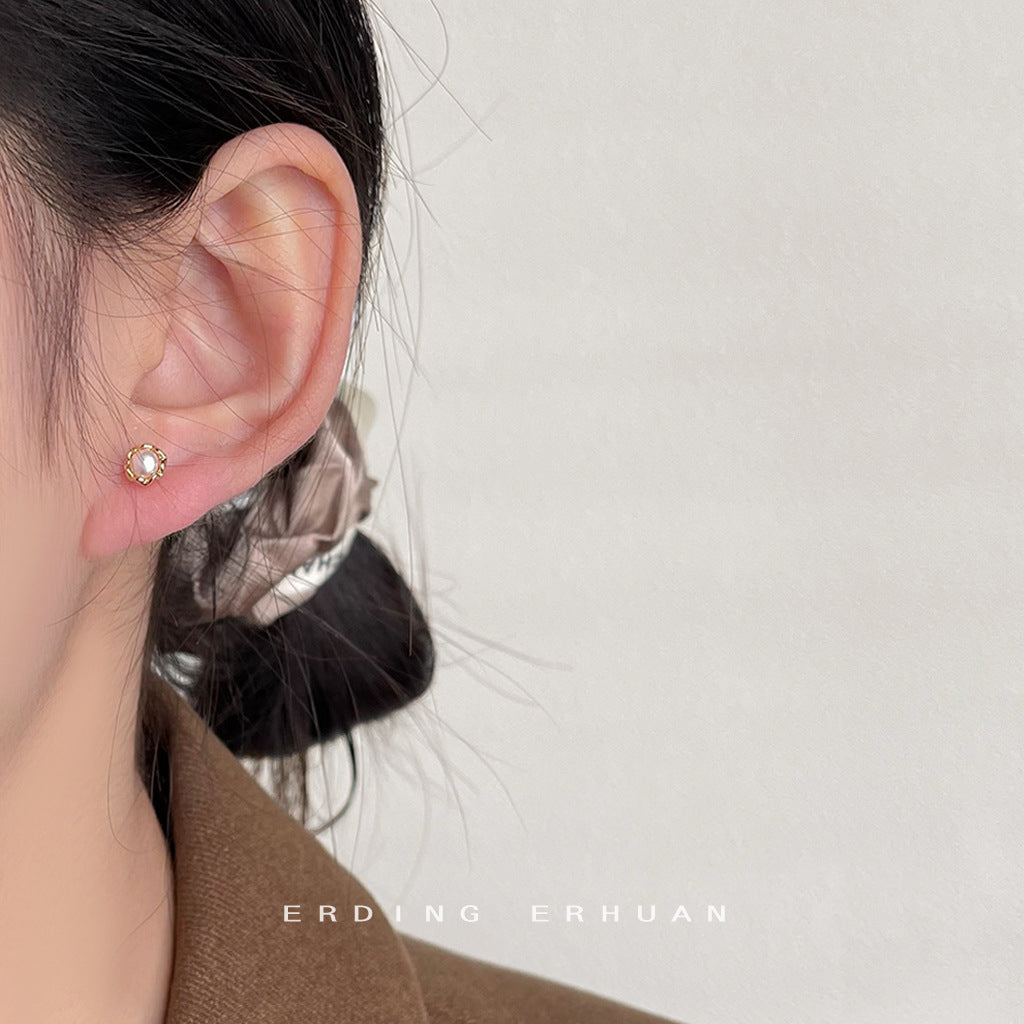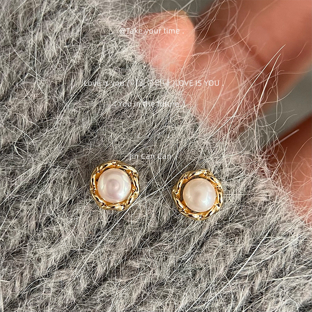 C廠【3262】極簡風淡水珍珠耳環高級鍍14K銀針耳飾簡約簡約通勤百搭耳環女 25.06-2