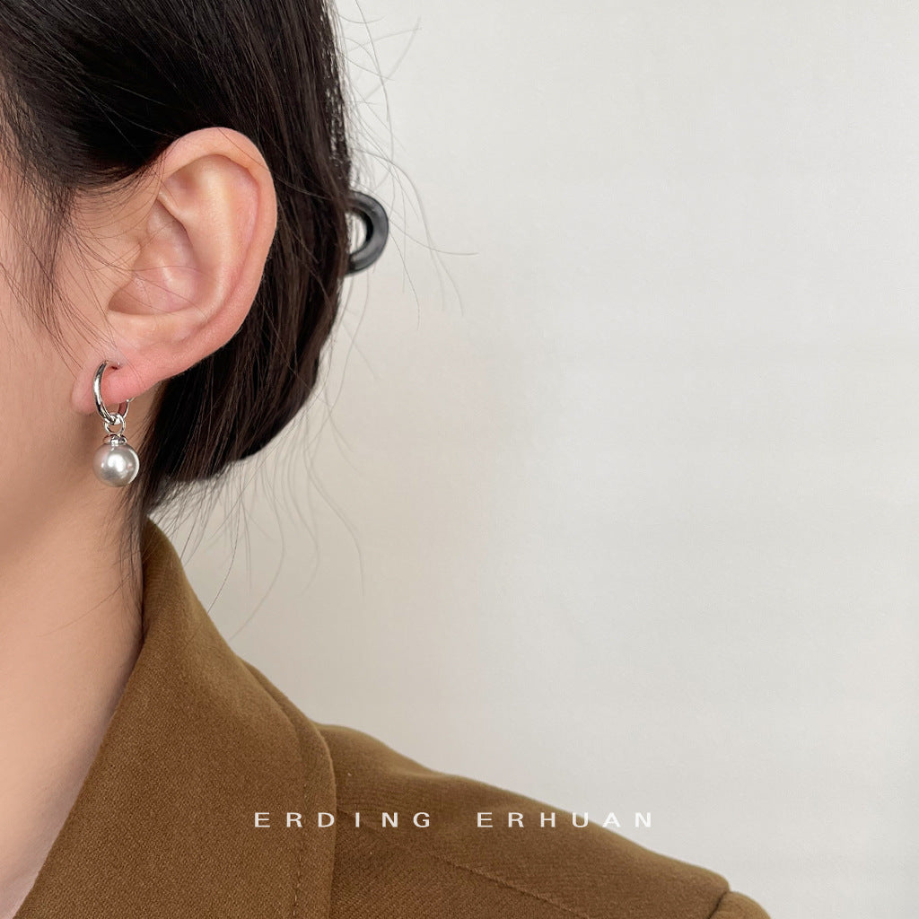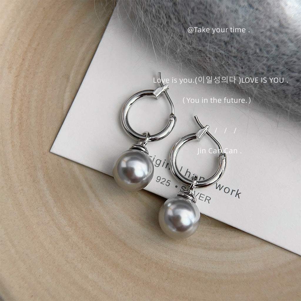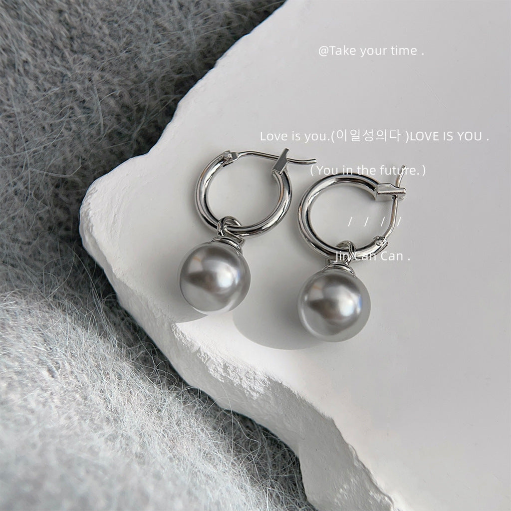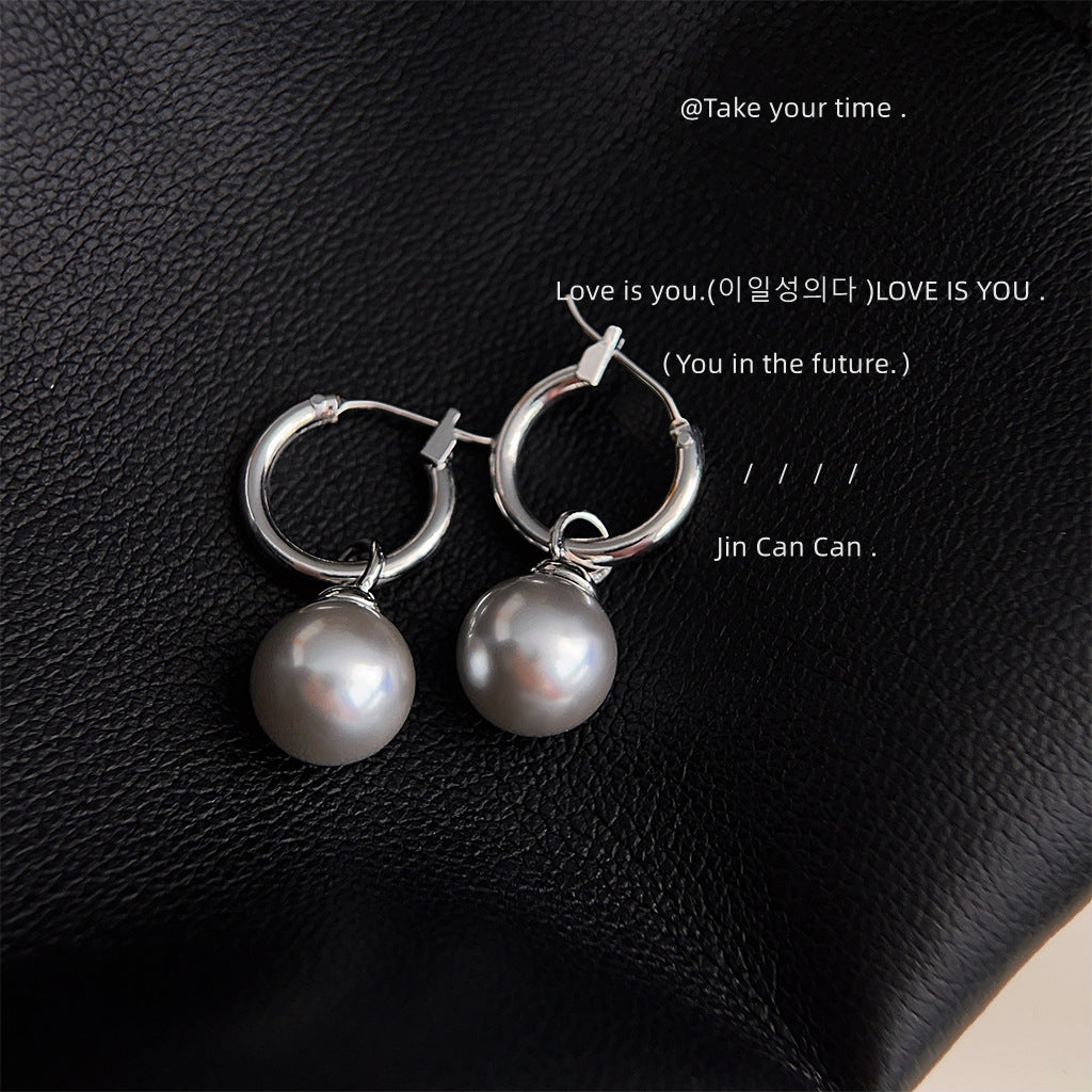 C廠【3307】冷淡風高級感爆款質感灰色珍珠耳環時尚通勤輕奢真多麻灰耳環耳環 25.11-1