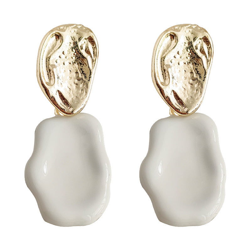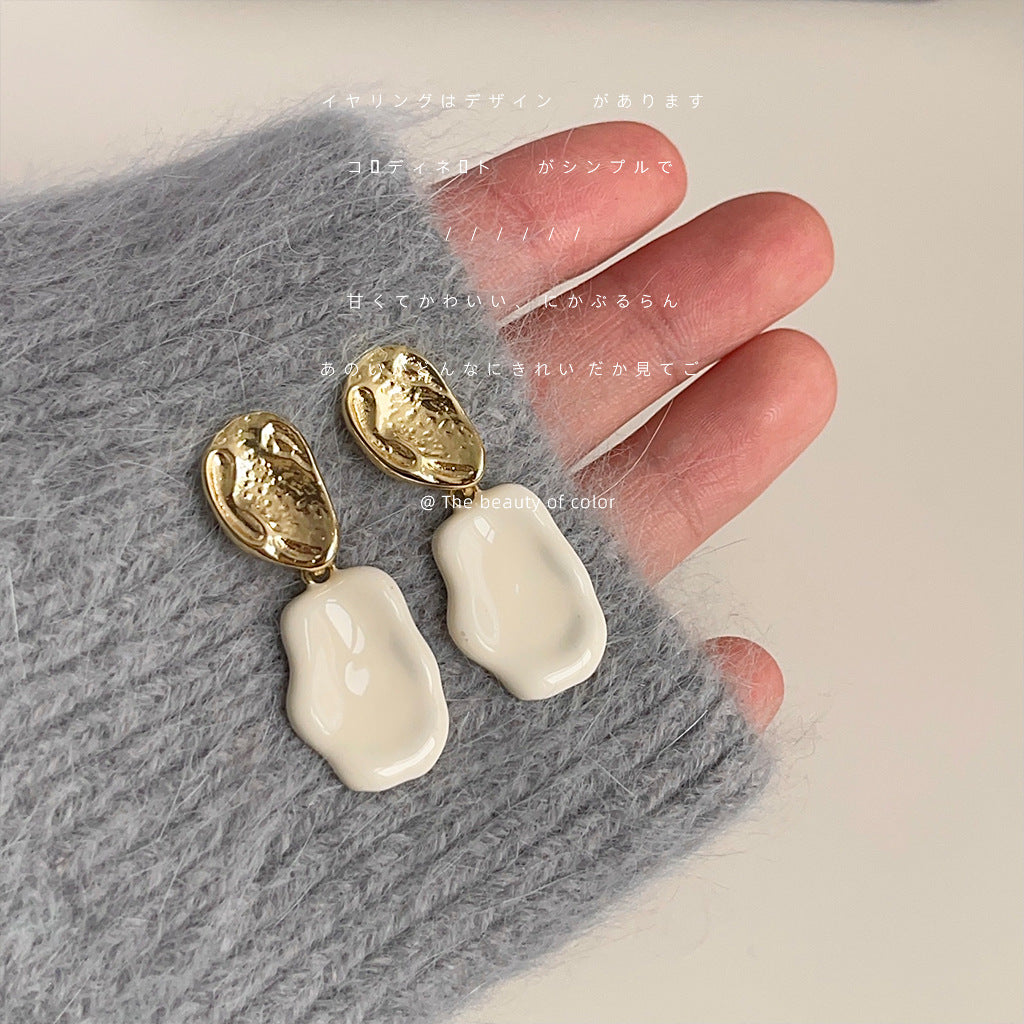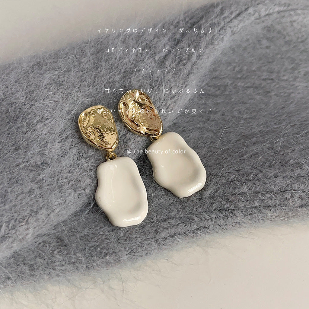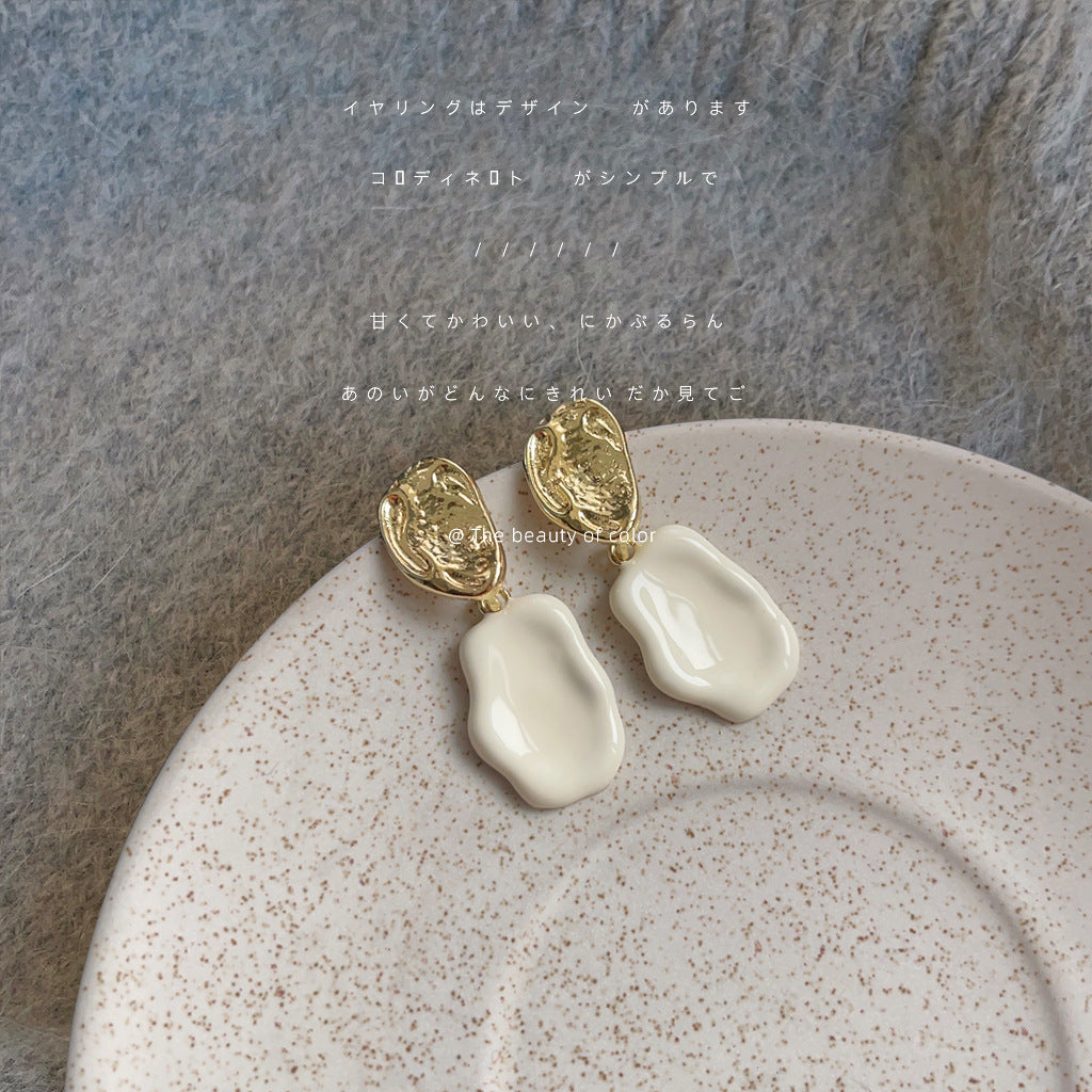 C廠【3346】法式奶白色滴釉鍍14K耳環女小眾不規則幾何時尚簡約百搭耳飾 25.07-4