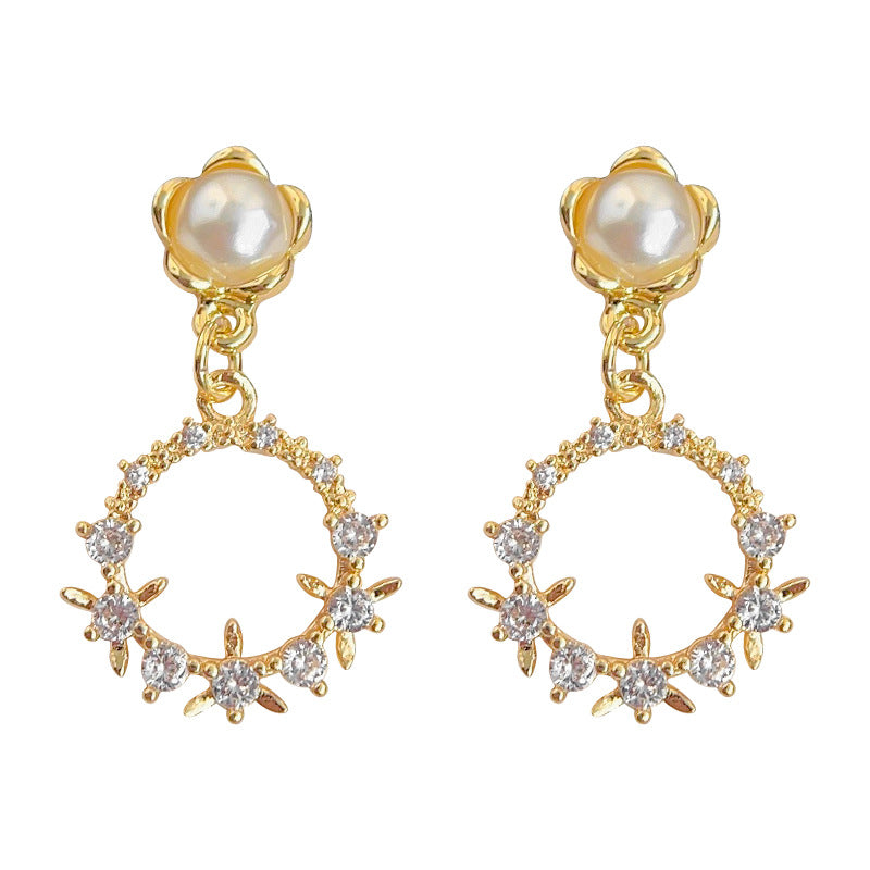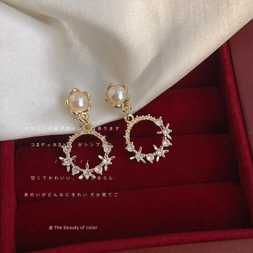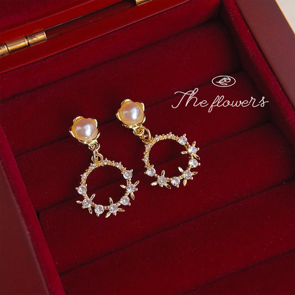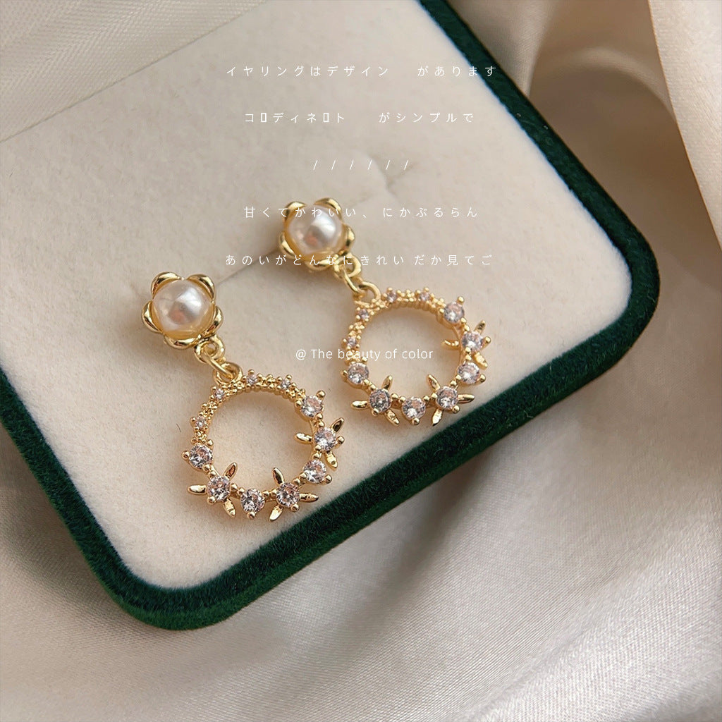 C廠【3558】微鑲鋯石電鍍14K清新甜美花環春款耳環 氣質簡約百搭森系耳飾 24.01-1