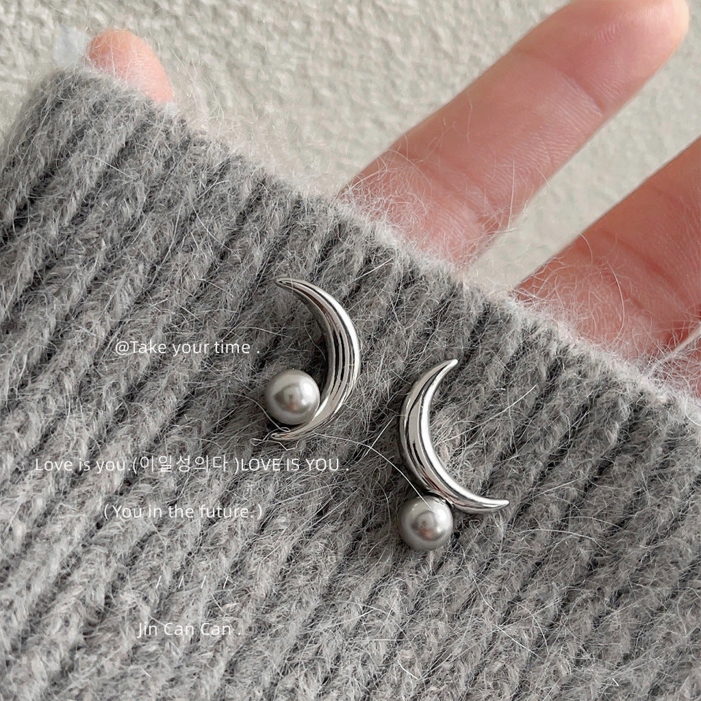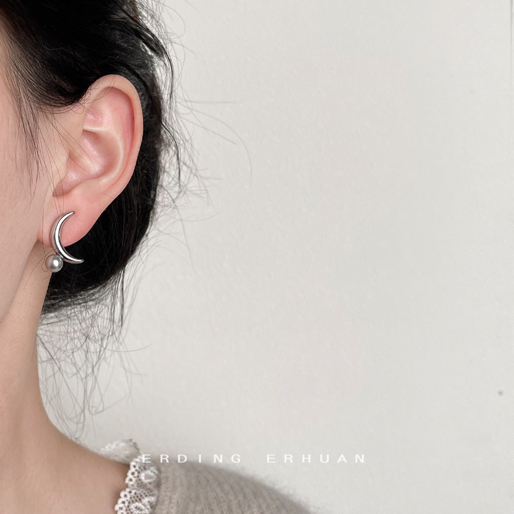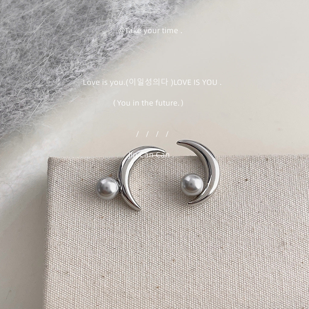 C廠【3572】小眾設計感個性ins甜酷風月亮耳環氣質通勤百搭簡約冷淡耳飾 24.01-2
