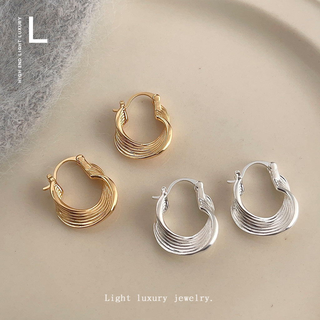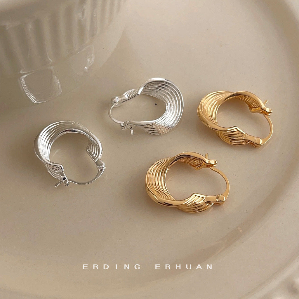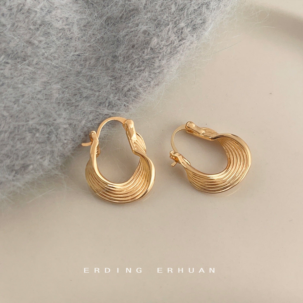C廠【3581-3582】高級感時尚通勤電鍍14K幾何曲面紋理感耳飾氣質百搭耳扣 24.01-2
