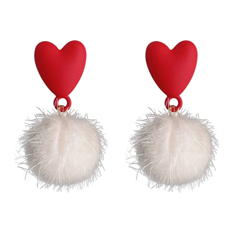 C廠【3588】適合跨年氣氛~新年可愛過年喜慶毛球愛心耳飾 24.01-2