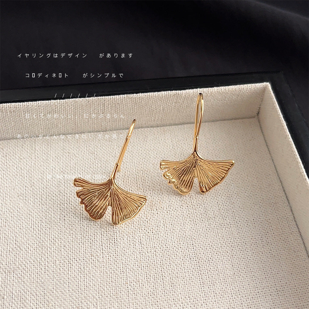 C廠【3599】輕奢風高級感藝術氣息設計感銀杏葉時尚耳環女鍍14K耳飾 24.02-4