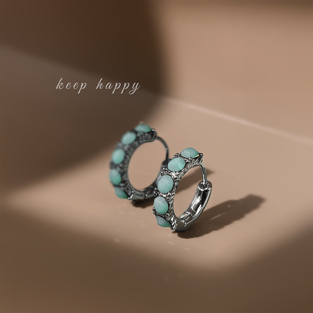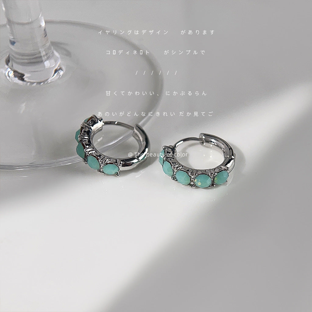 C廠【3603】春夏款甜酷風個性蛋白綠氣質百搭潮玻璃水鑽耳飾 24.02-4