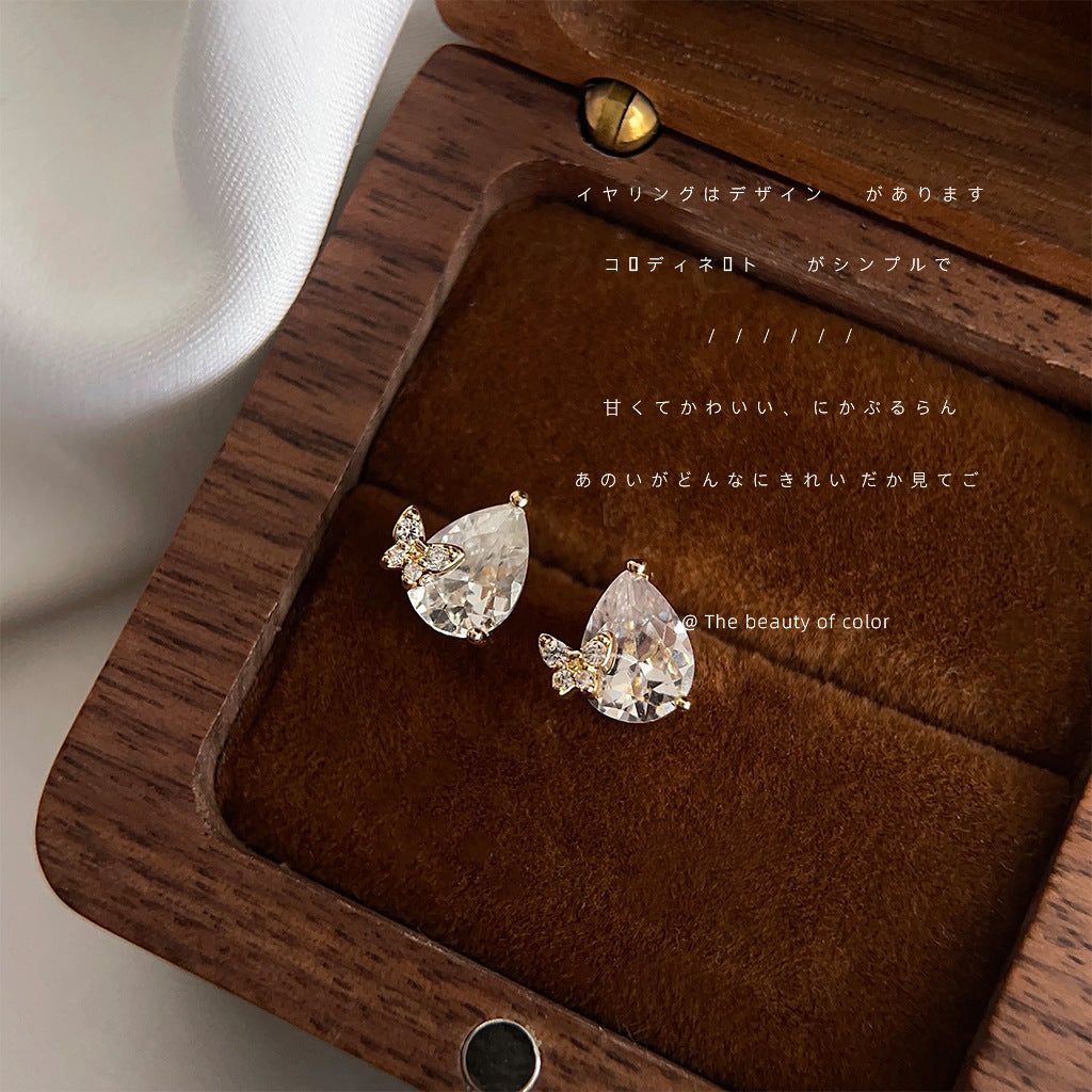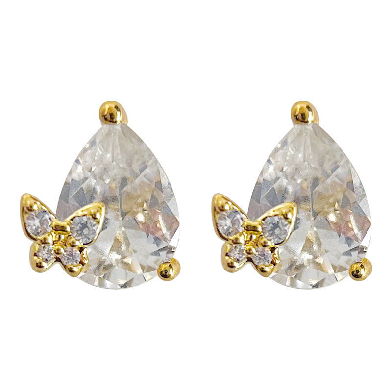 C廠【3615】迷你版鋯石水滴小蝴蝶鍍14K銀針耳飾飾品甜美可愛小清新耳釘 24.02-4