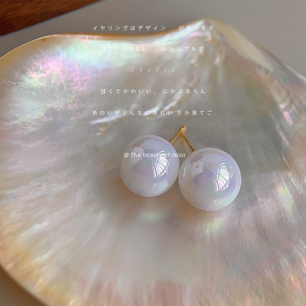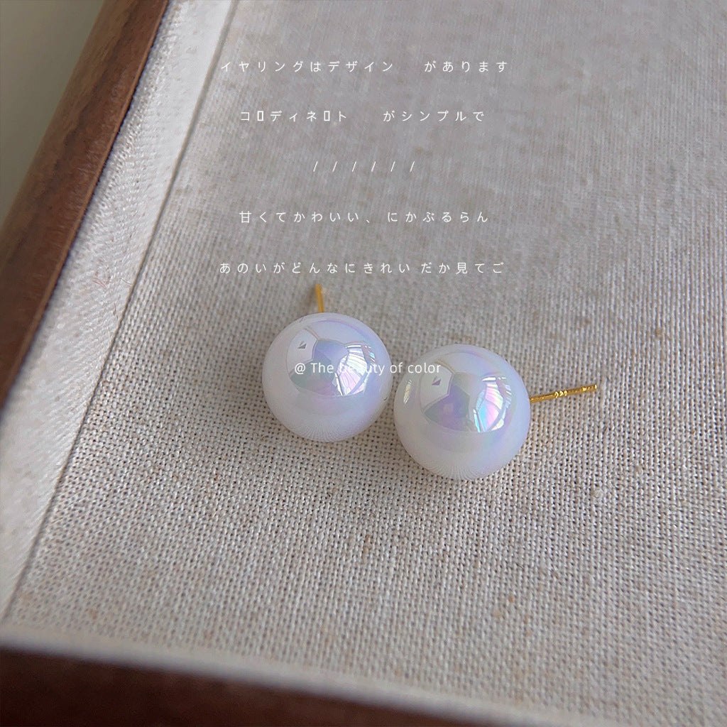 C廠【3618】春夏款彩光圓形幾何珍珠耳釘氣質甜美樹脂耳飾 24.02-4
