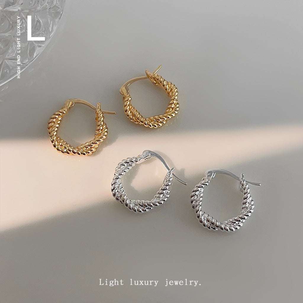 C廠【3629-3630】輕奢風高級感時尚通勤簡約百搭鍍14K麻花幾何圓形耳扣氣質耳飾女 24.02-4