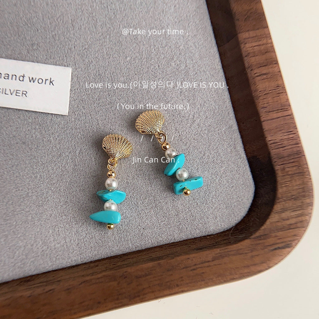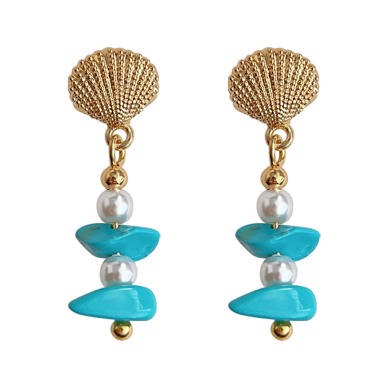C廠【3634】原創設計手工作品! 貝殼合成綠松石氣質優雅設計師耳環 24.03-2