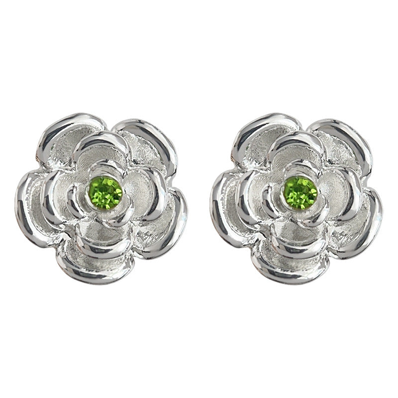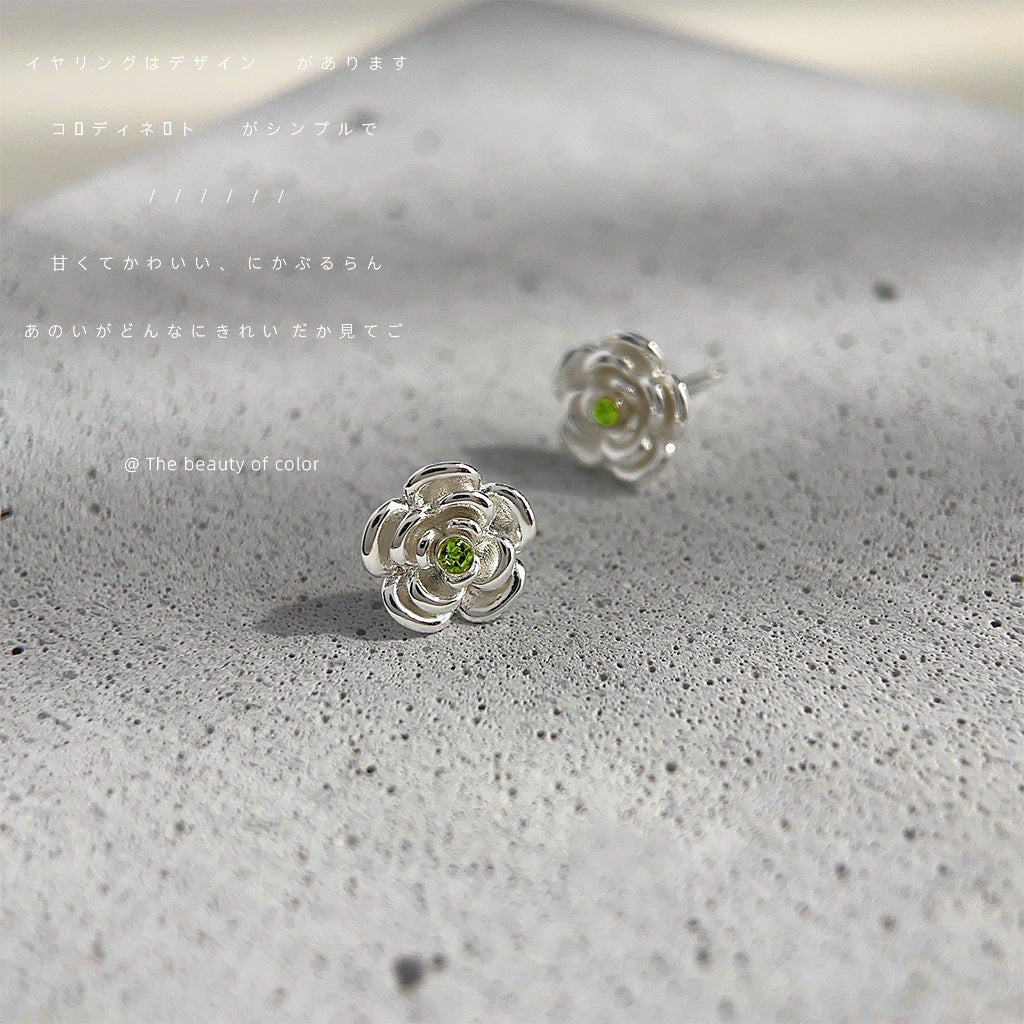 C廠【3635】甜美小清新鑲鑽山茶花森系銀針氣質簡約百搭通勤銀色耳飾 24.03-2