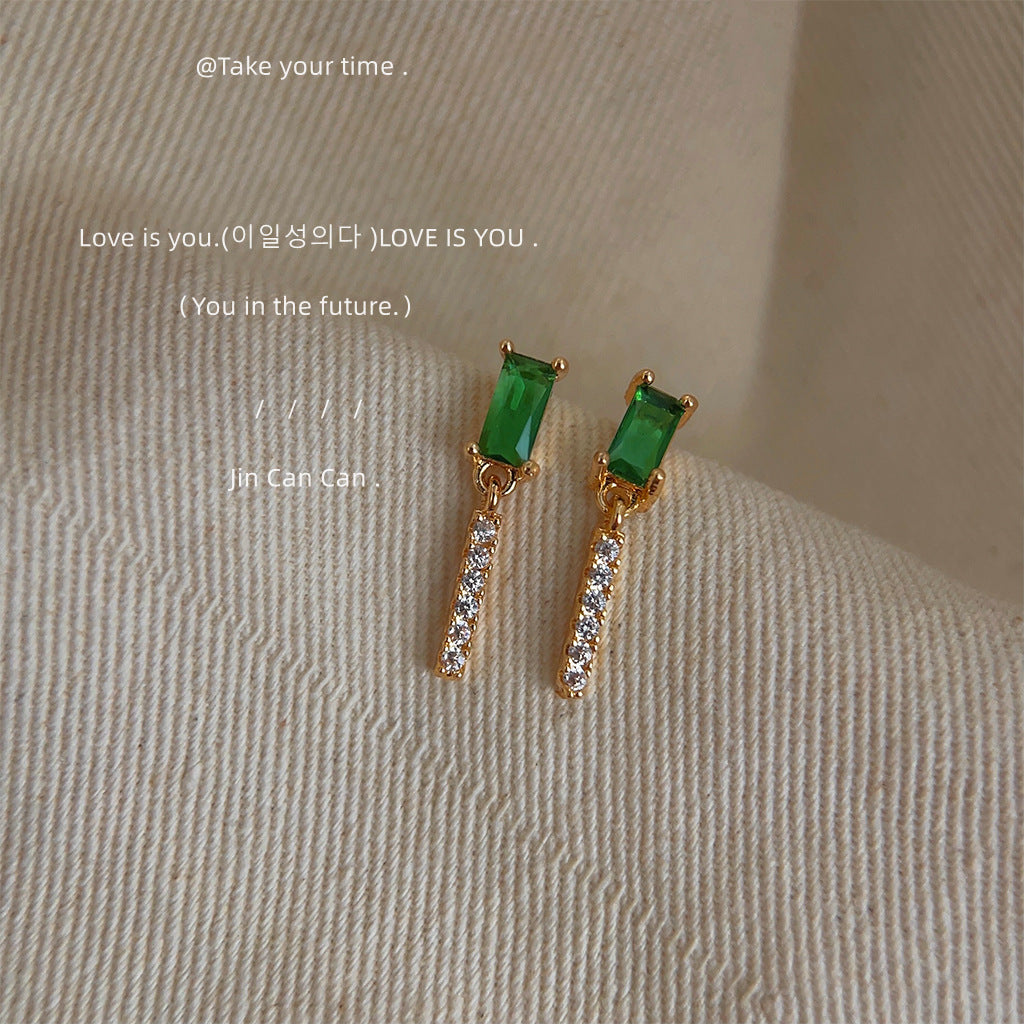 C廠【3647】微鑲鋯石小巧迷你版祖母綠銀針鍍14K耳飾 24.03-2