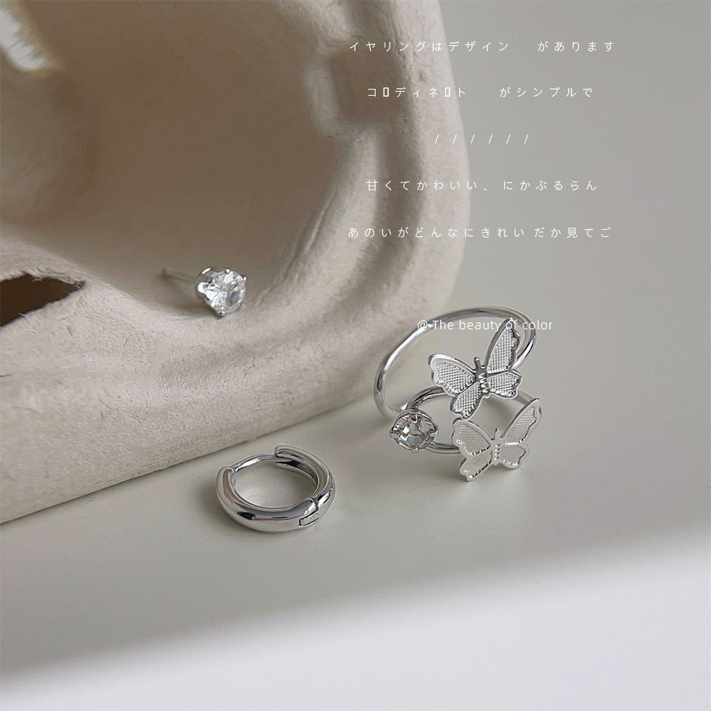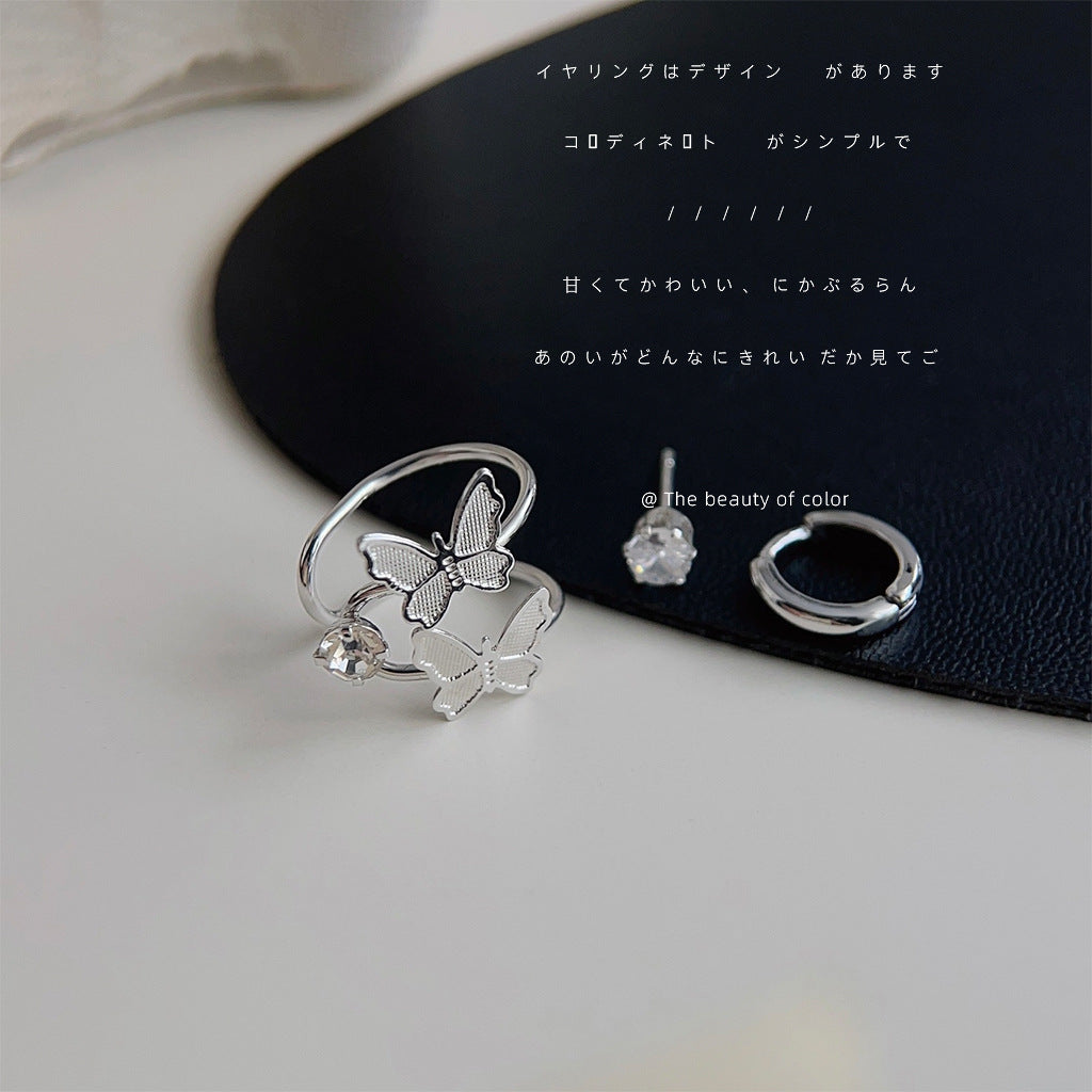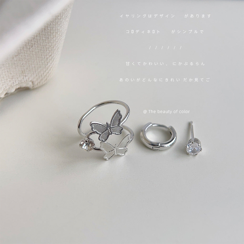 C廠【3655】三件式個性ins潮設計感耳骨夾設計感蝴蝶銀色甜酷風創意新款耳飾 24.03-2