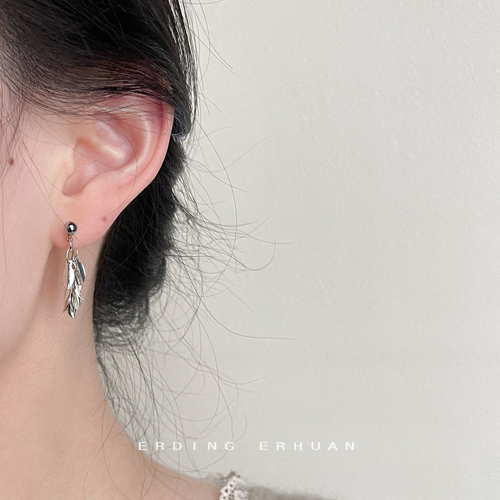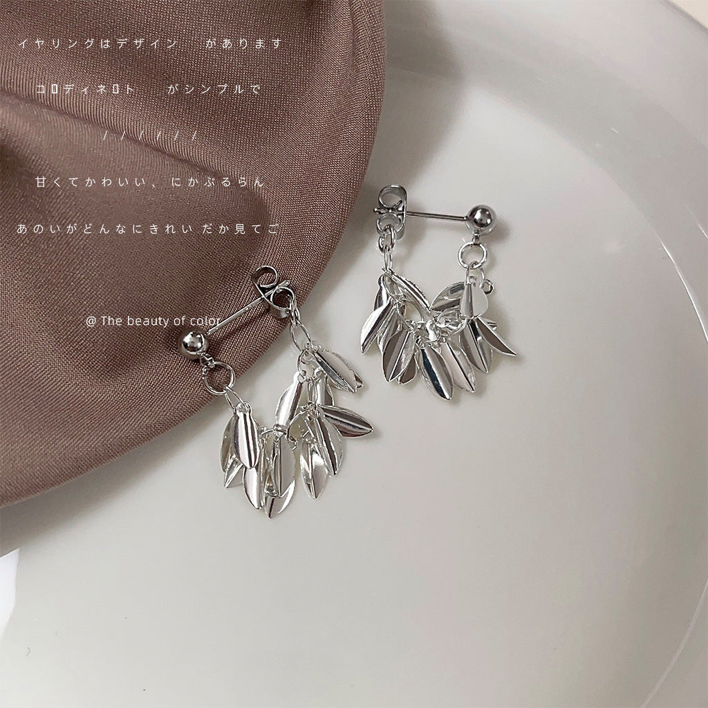 C廠【3657】手工設計感流蘇鏈條銀色葉子輕奢通勤耳飾 24.03-2