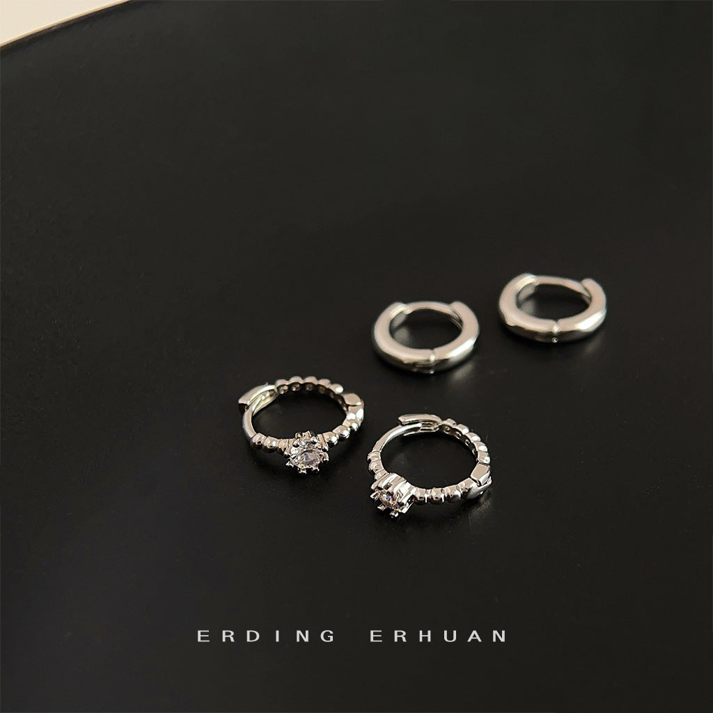 C廠【3675-76】極簡主義日常通勤百搭氣質簡約圓形鋯石耳扣個性ins小巧耳飾 24.03-2