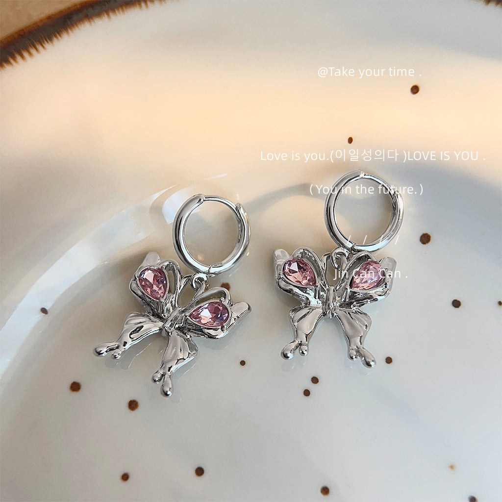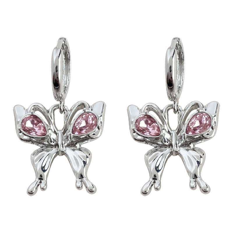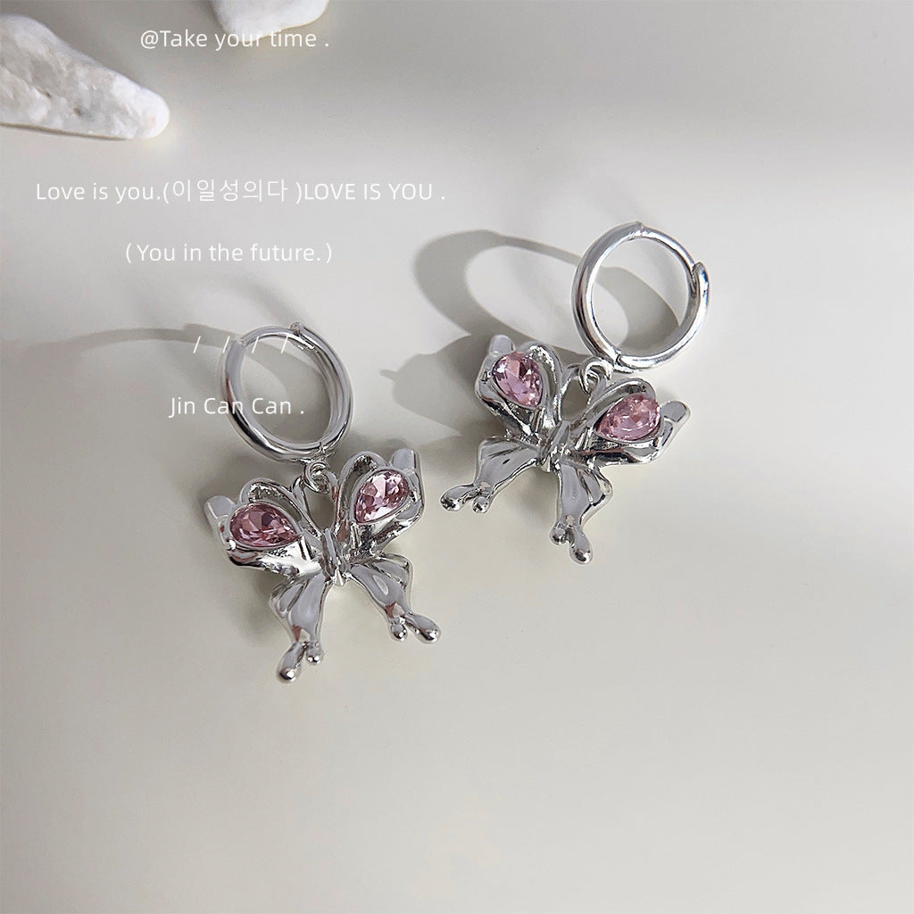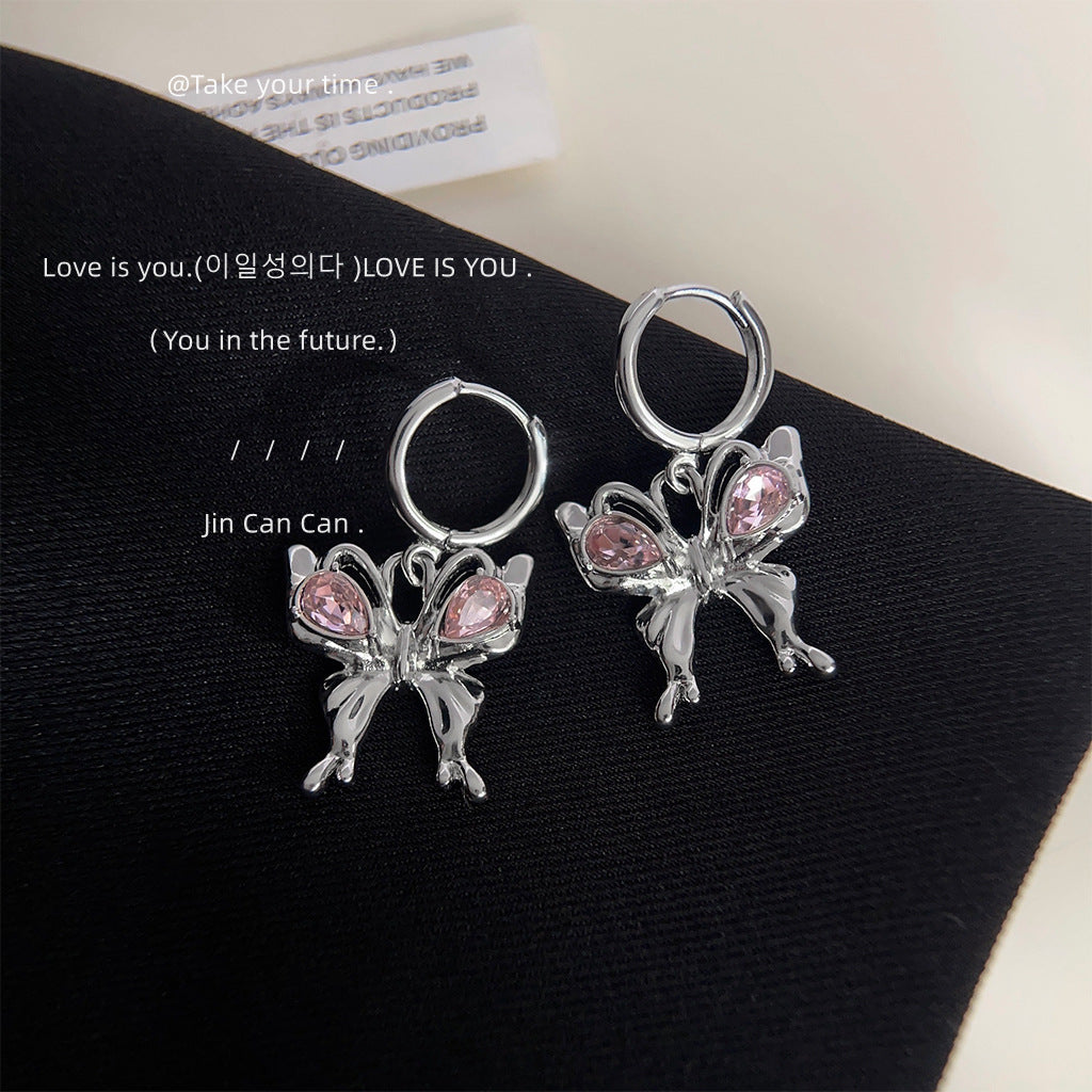 C廠【3677】甜酷風設計感個性ins蝴蝶粉紅玻璃水晶潮2024年新款耳飾 24.03-2