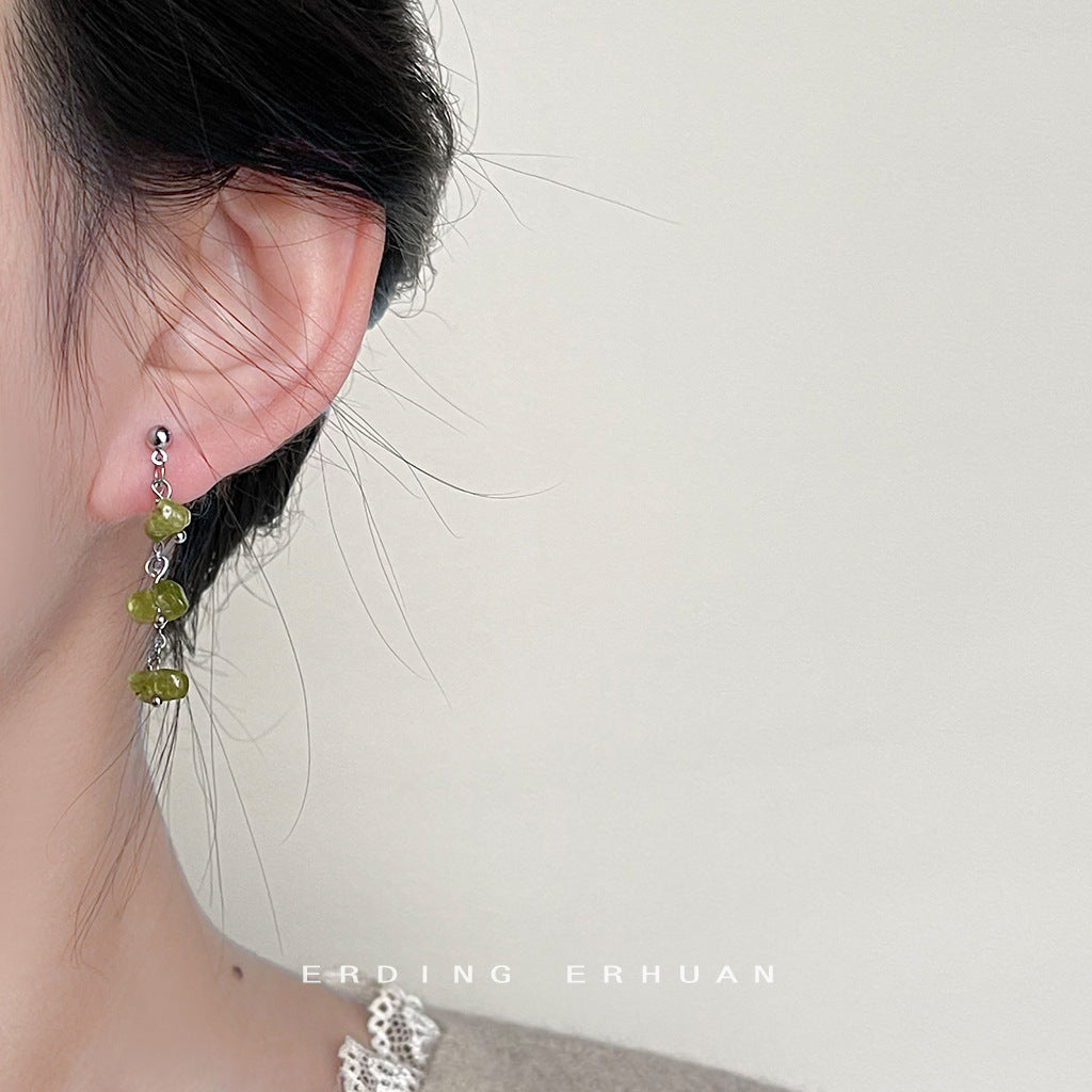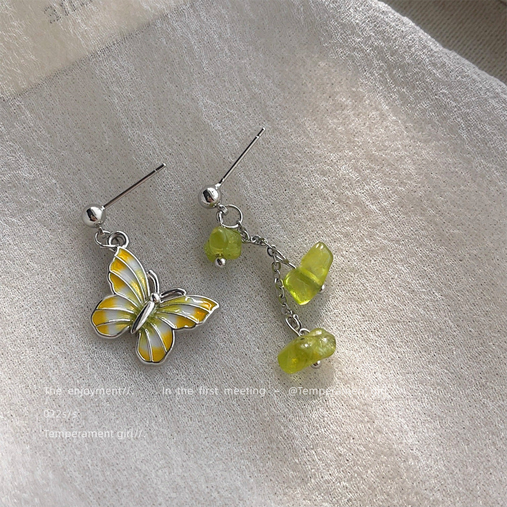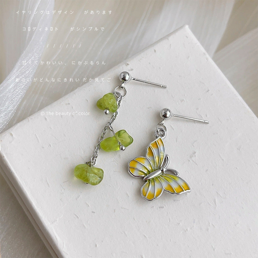 C廠【3687】森系小清新原創設計手作耳飾女不對稱蝴蝶橄欖石設計師款 24.03-2