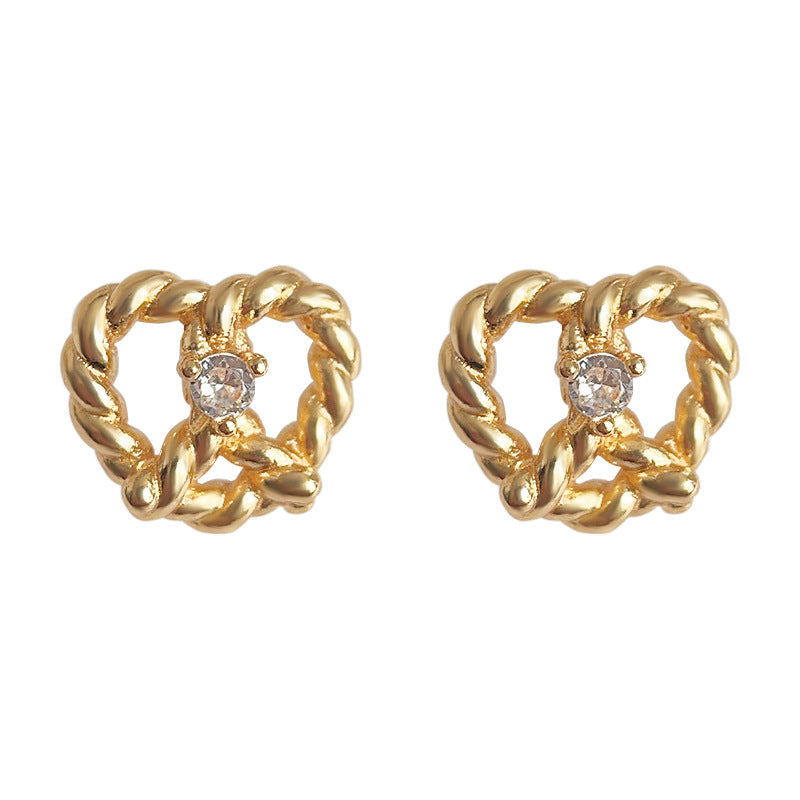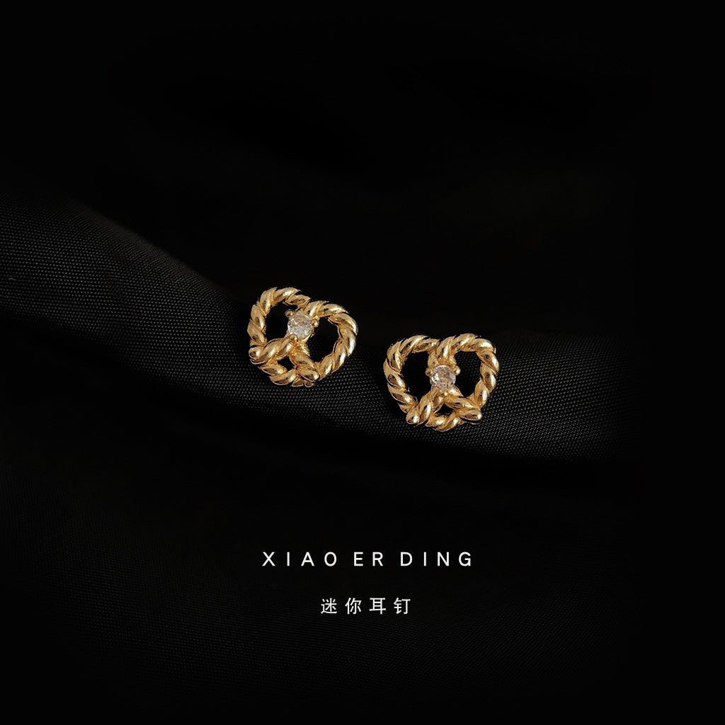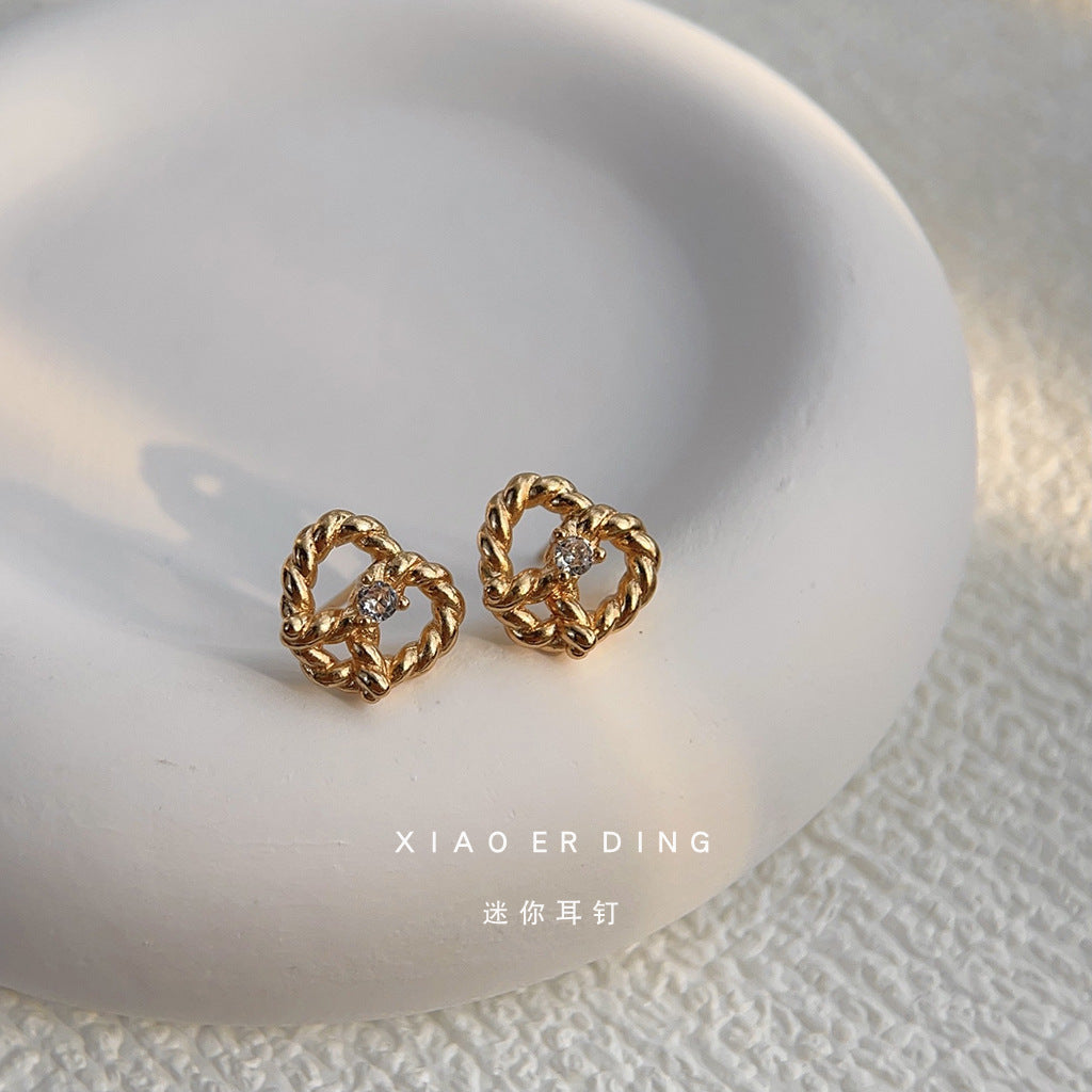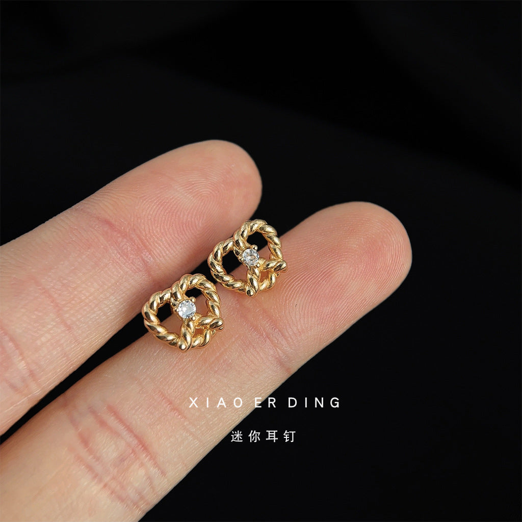 C廠【3694】微鑲鋯石迷你版~日常通勤百搭簡約心型鍍14K銀針耳釘 24.03-4