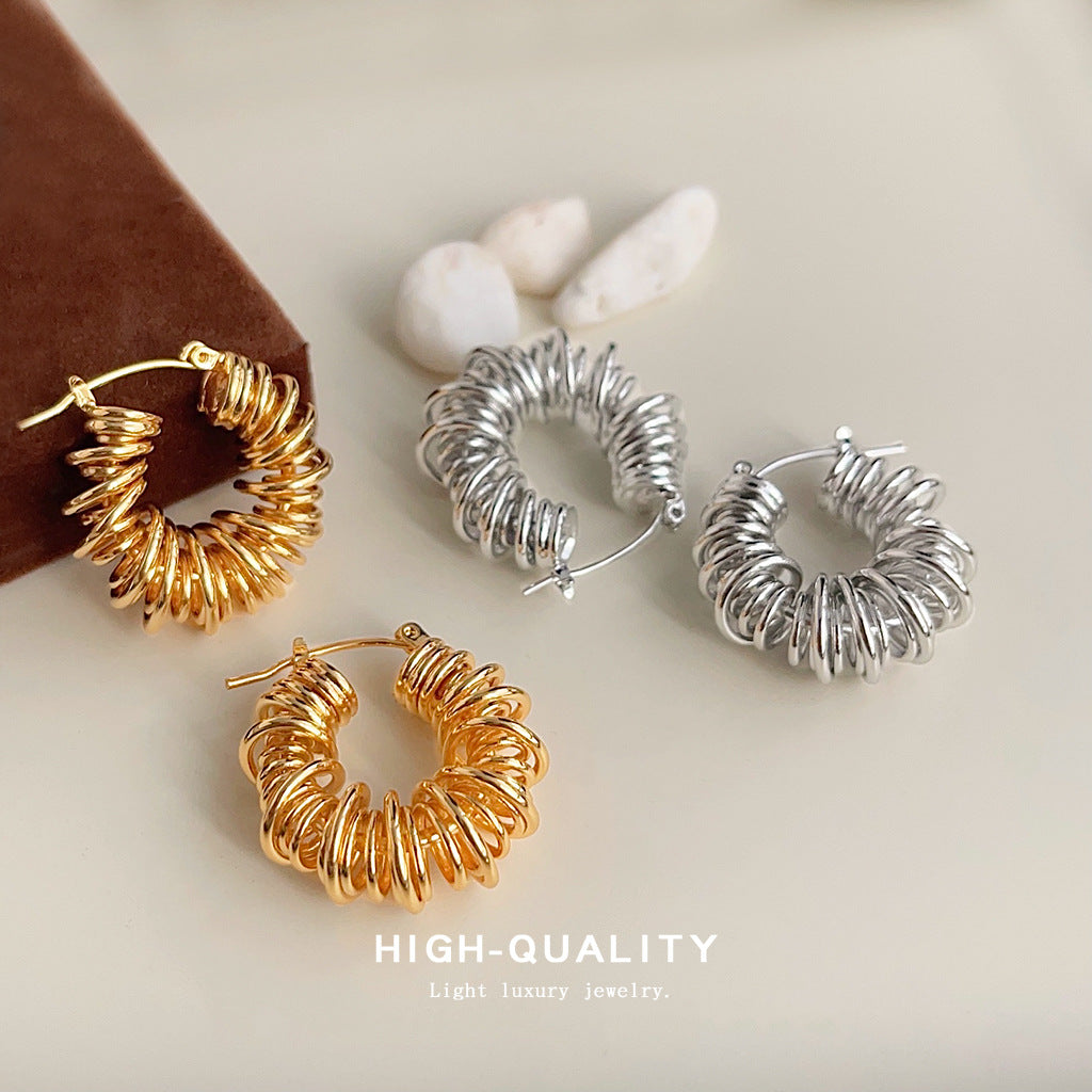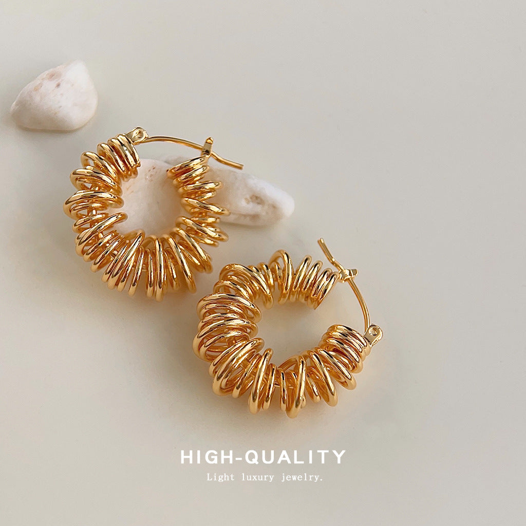 C廠【3699-3700】升級版鍍真金加厚時尚通勤高級感高品質幾何圓耳圈輕奢耳環 24.03-2
