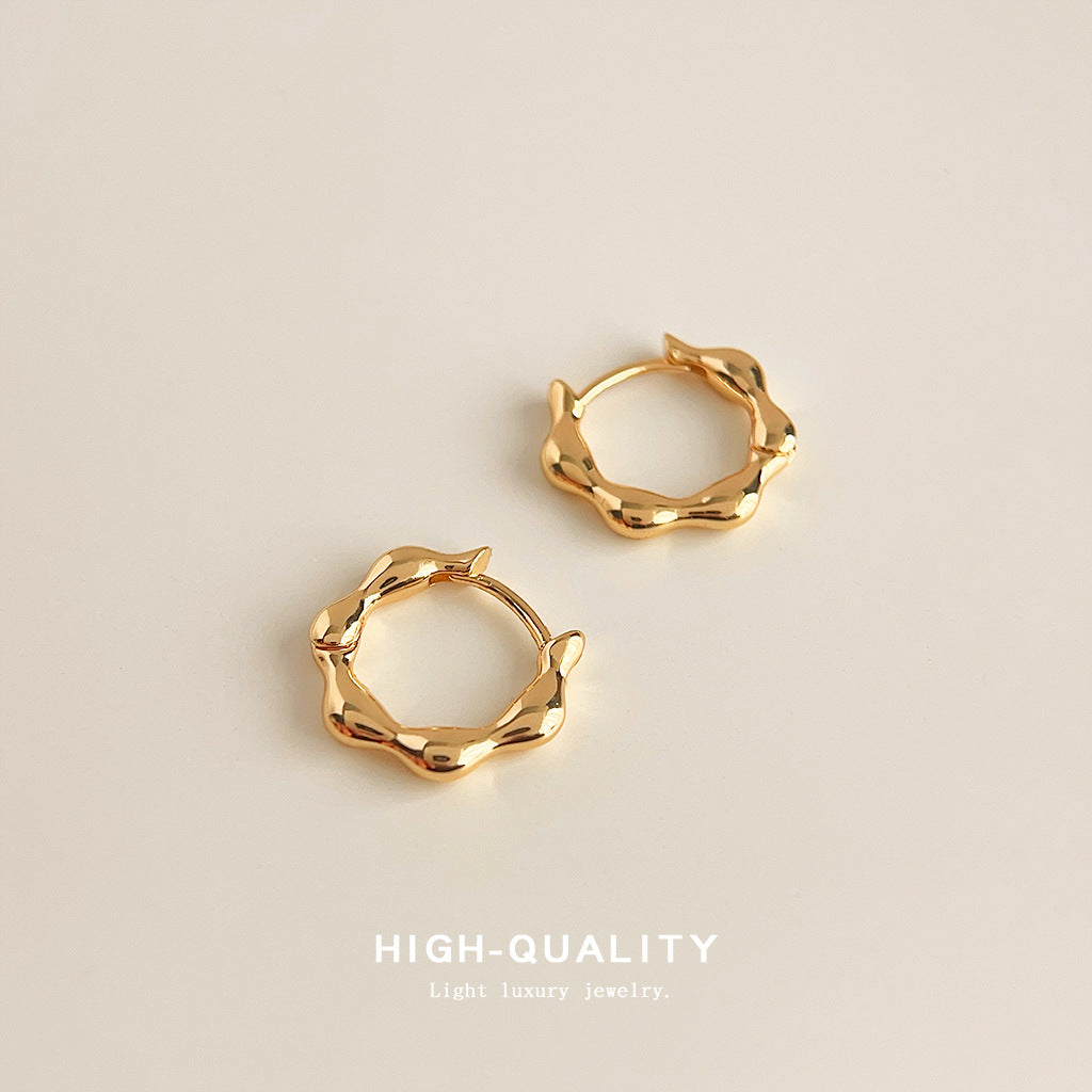C廠【3703-3704】升級版輕奢風電鍍18K真金高級感通勤百搭圓形耳扣新潮個性耳飾女 24.04-4