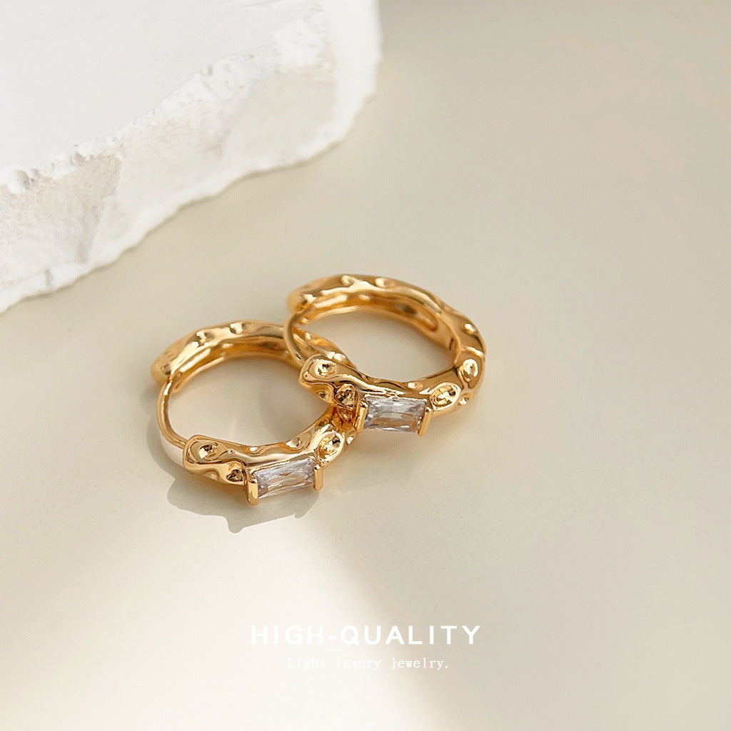 C廠【3705】升級版電鍍18K真金加厚時尚通勤輕奢質感圓形鋯石耳扣簡約耳飾女 24.04-4