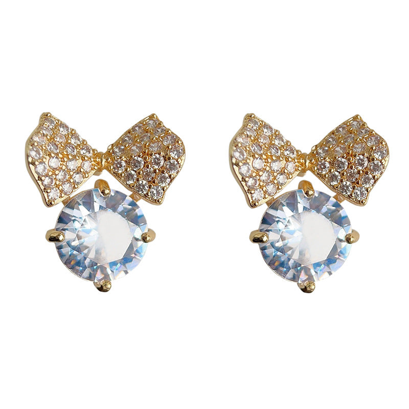 C廠【3727】實物很閃! 鑲嵌鋯石蝴蝶結鍍14K銀針耳飾時尚高級感氣質耳環 24.04-1