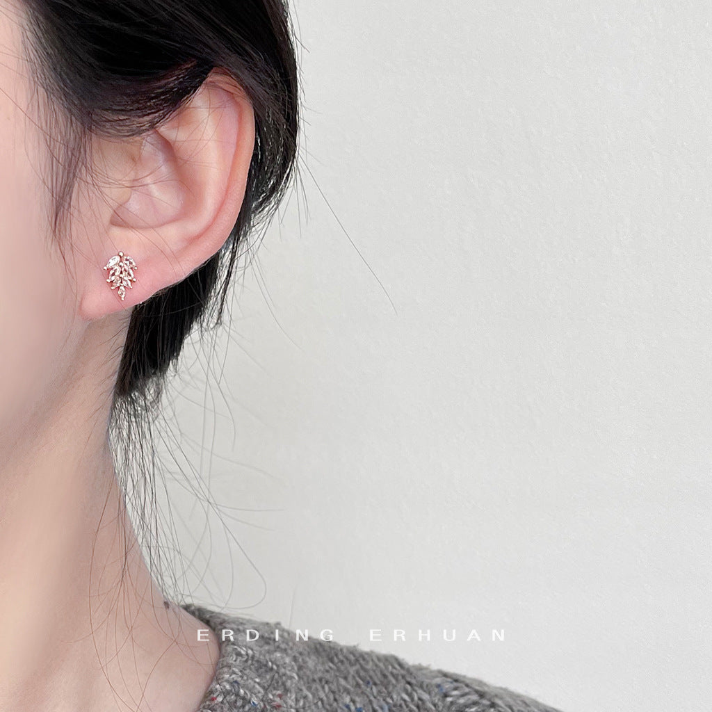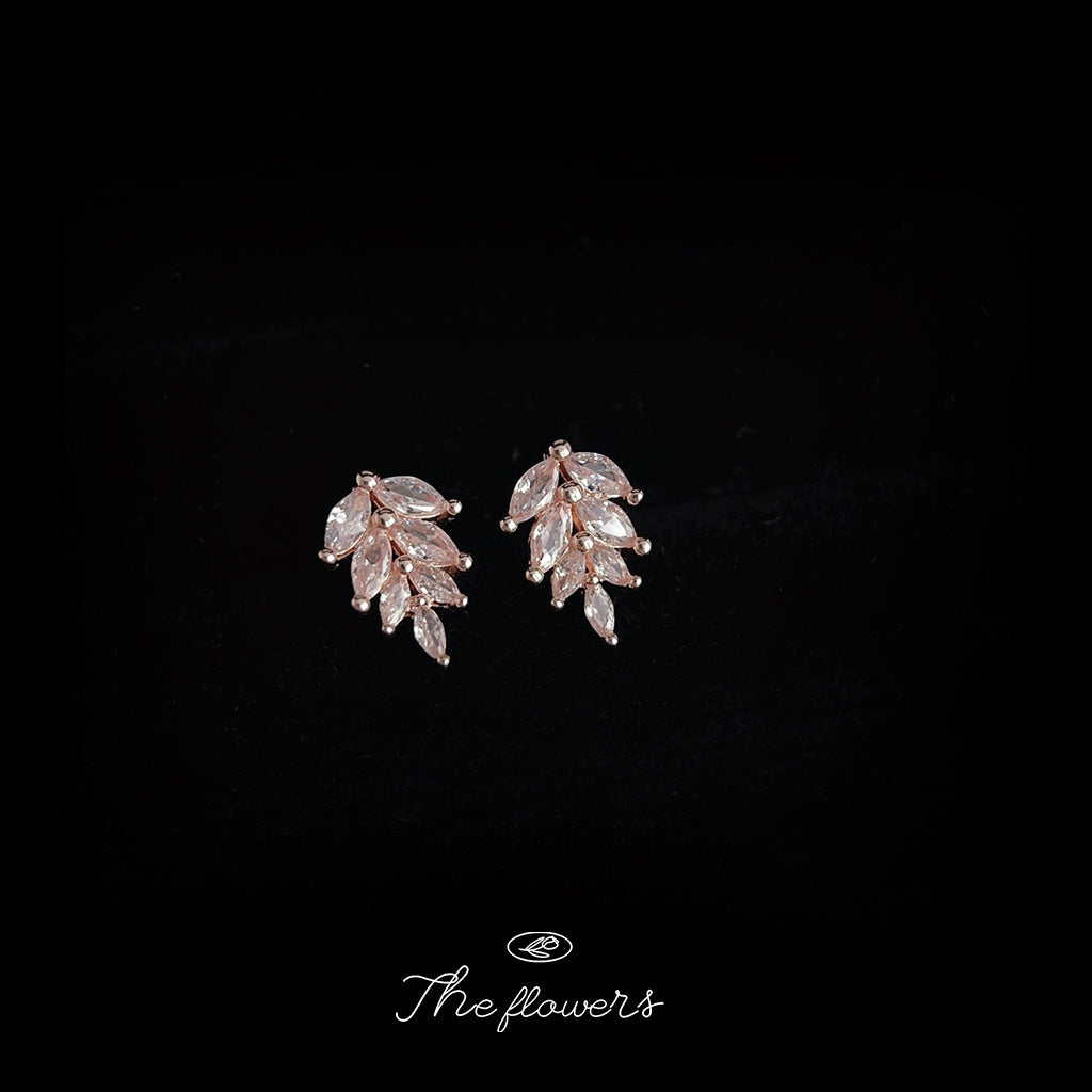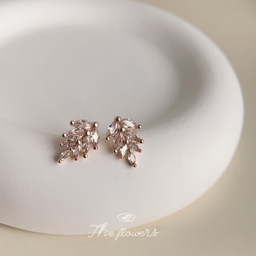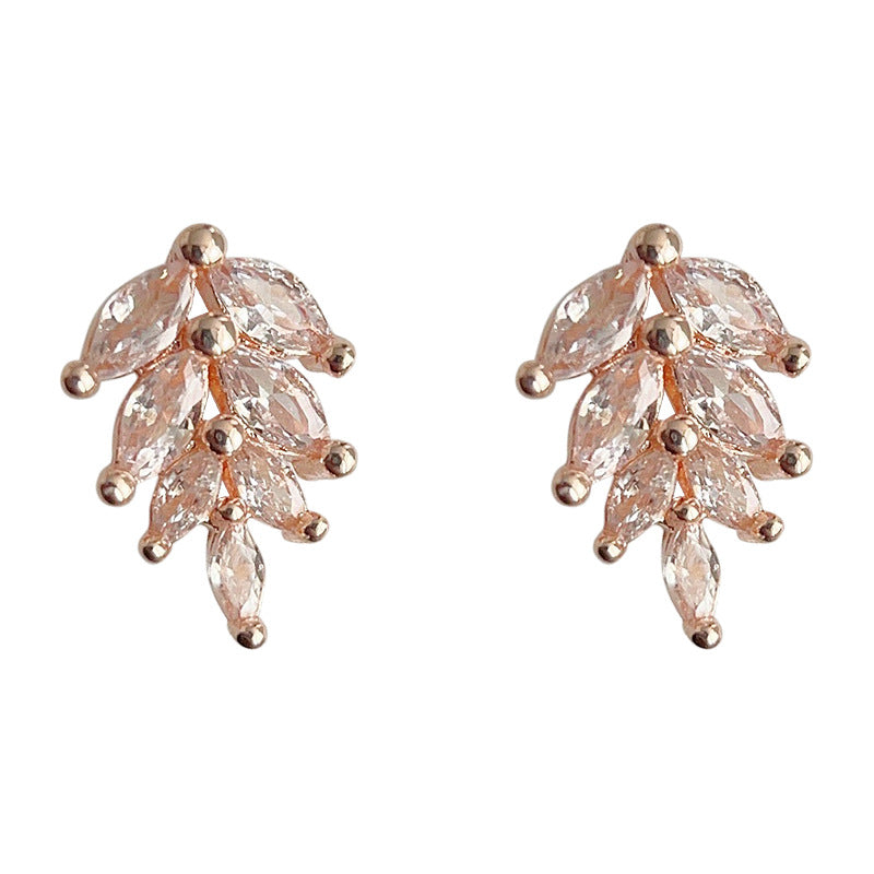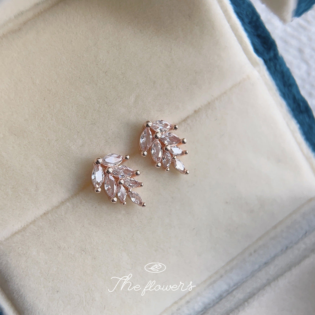 C廠【3735】麥穗~微鑲鋯石迷你版簡約時尚通勤鍍玫瑰金銀針小耳環氣質耳飾女 24.03-4