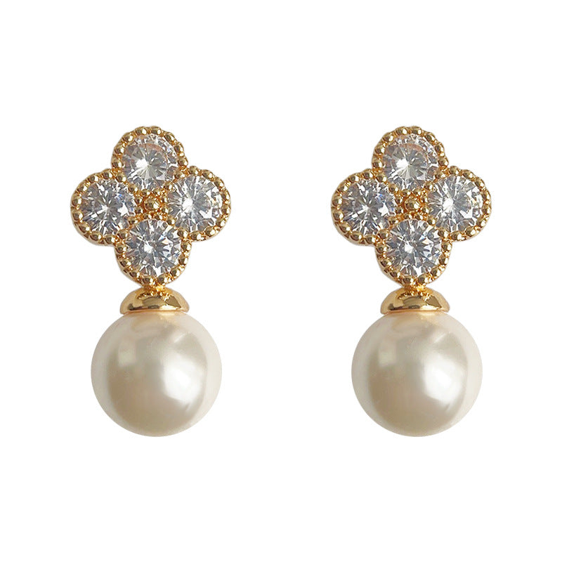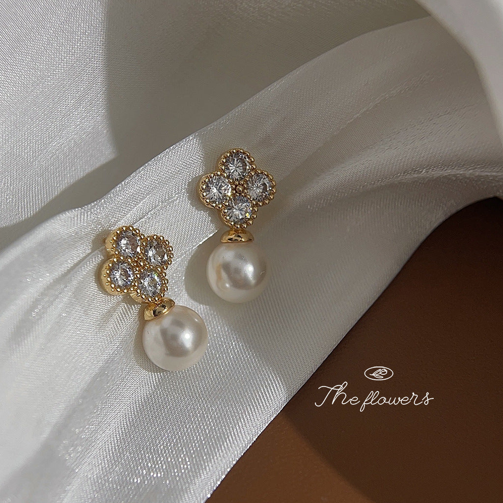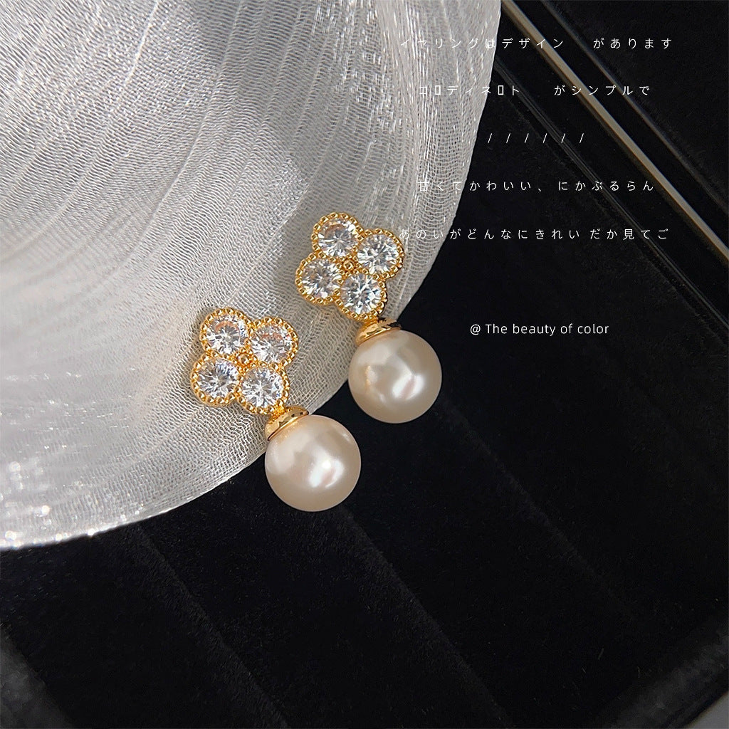 C廠【3743】時尚通勤高級感微鑲鋯石鍍14K幸運草簡約輕奢銀針耳飾耳環女 24.04-2