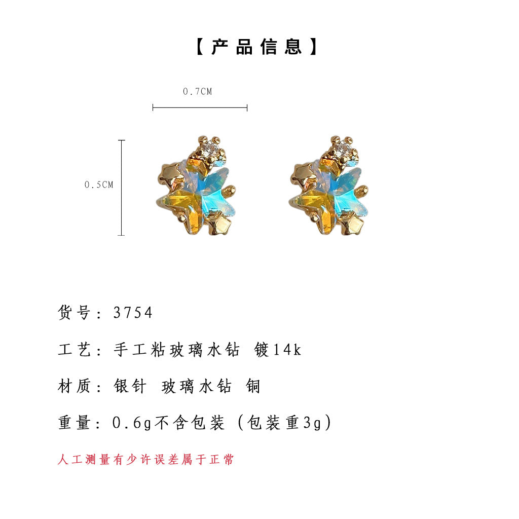 C廠【3754-3755】實物很小~很美! 夢幻幻彩玻璃迷你版銀針鍍14K蝴蝶小耳環耳飾女 24.04-1