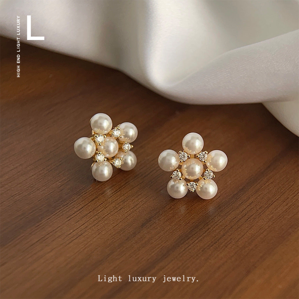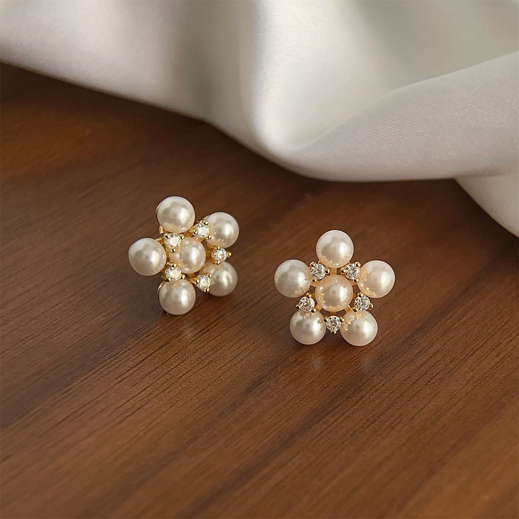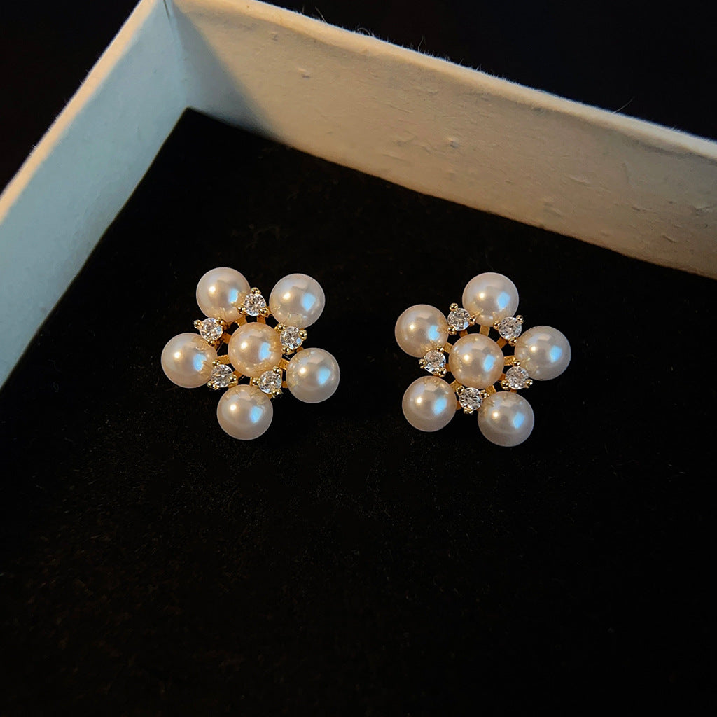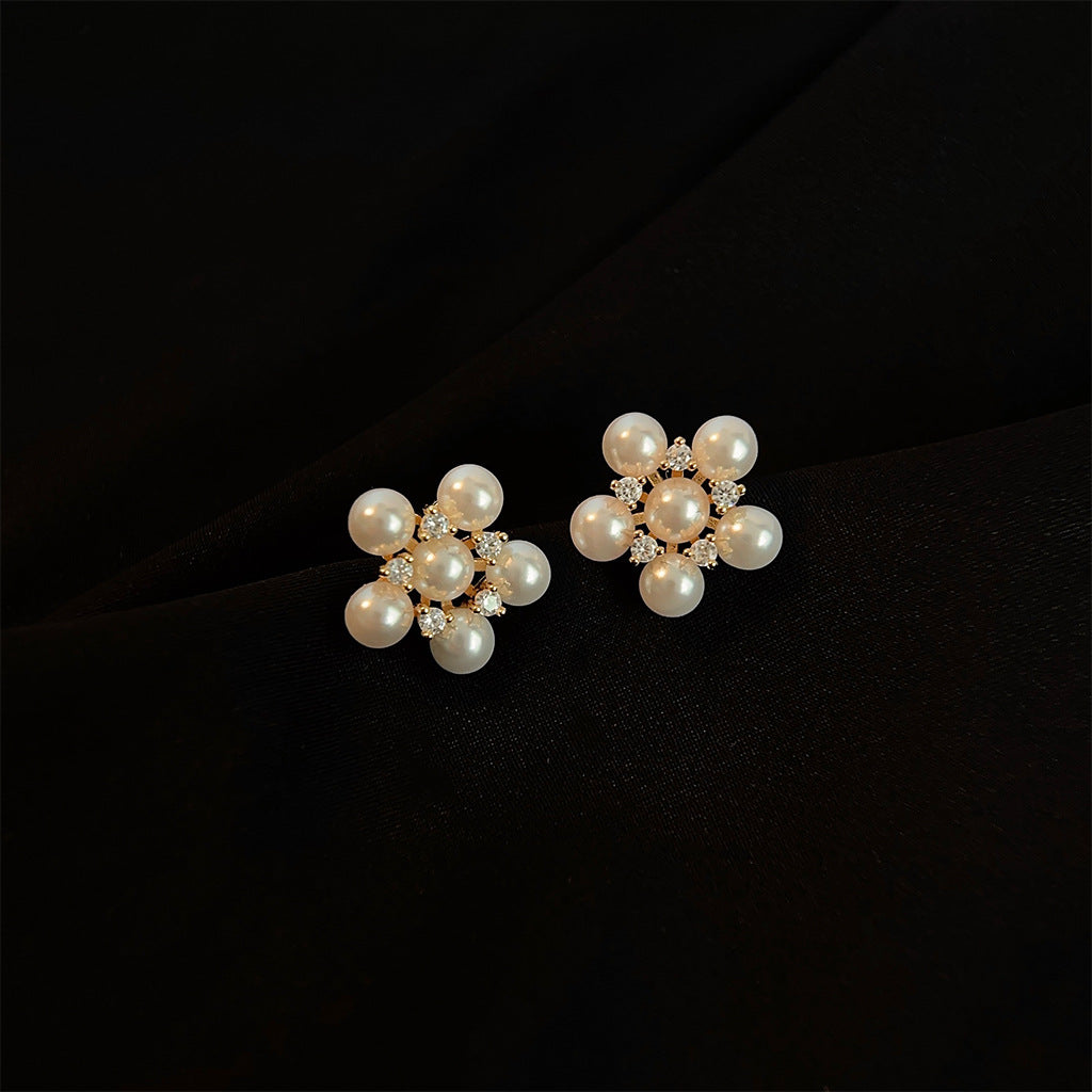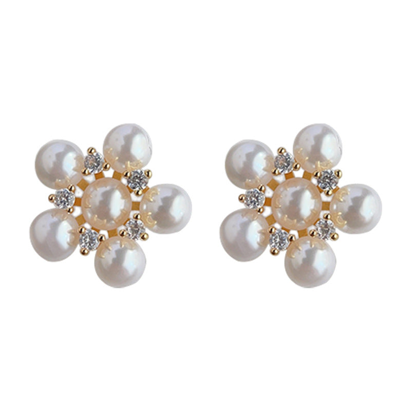 C廠【3768】法式復古微鑲鋯石珍珠花朵鍍14K銀針耳環氣質高級感耳飾飾品 24.04-2