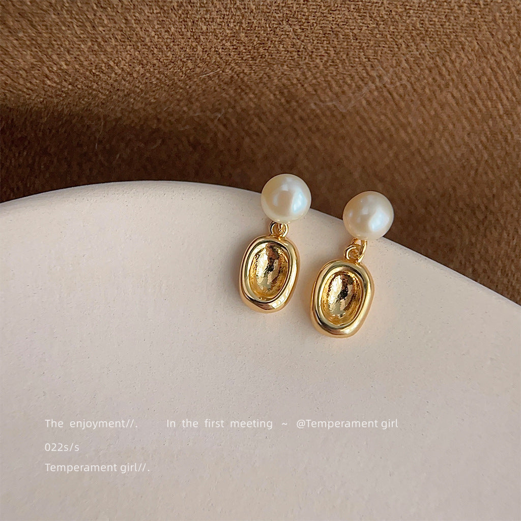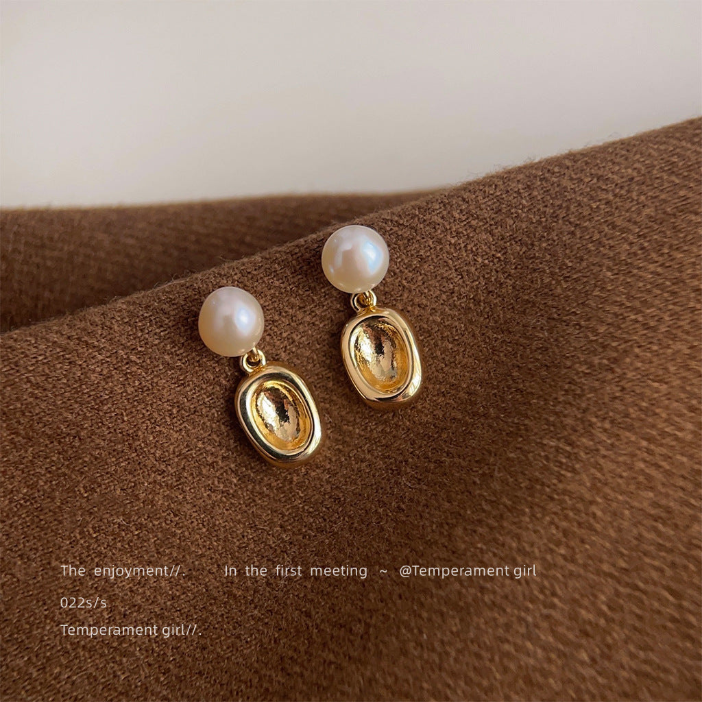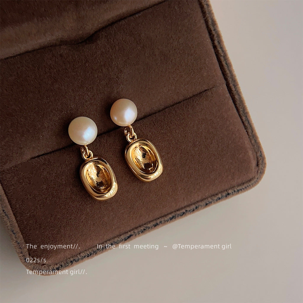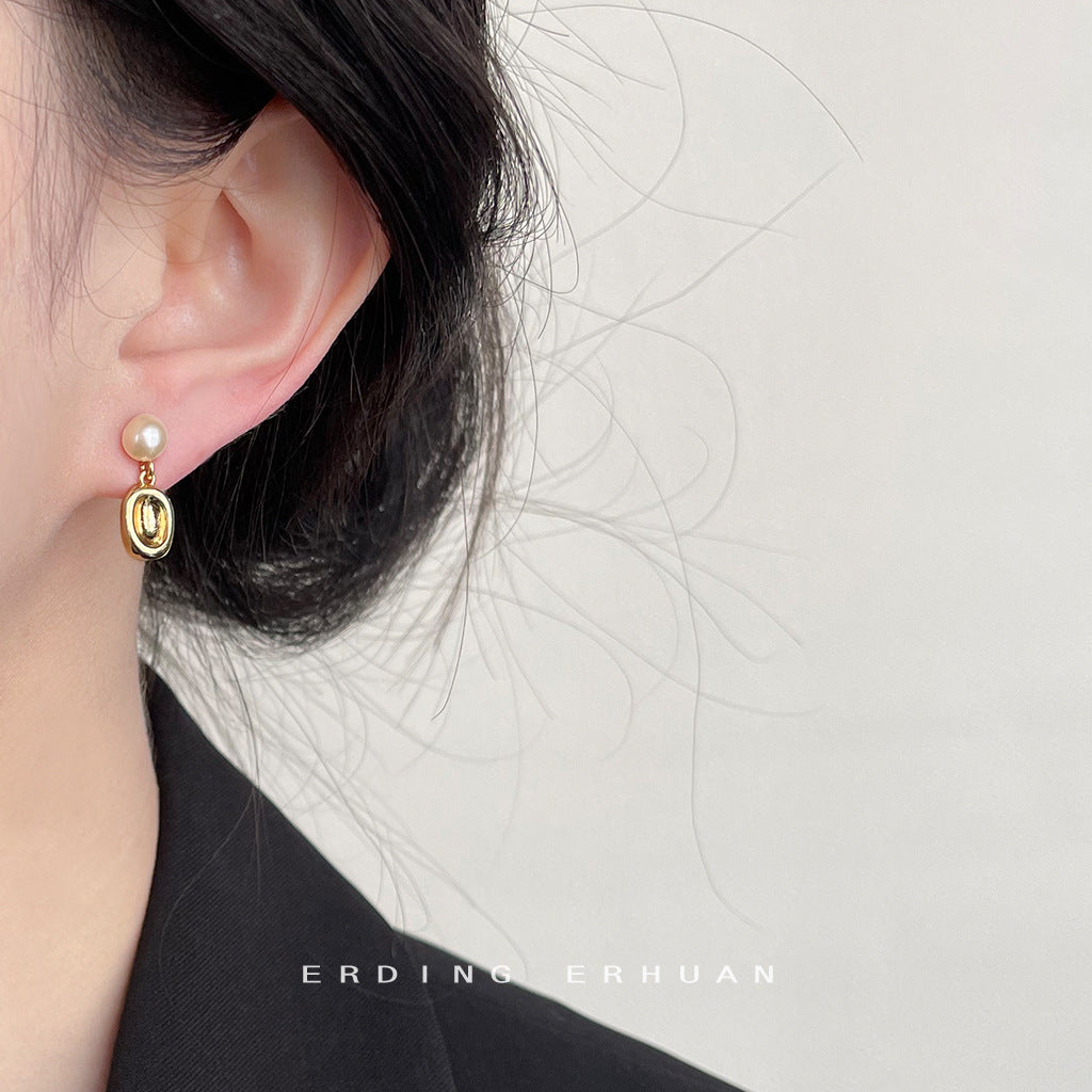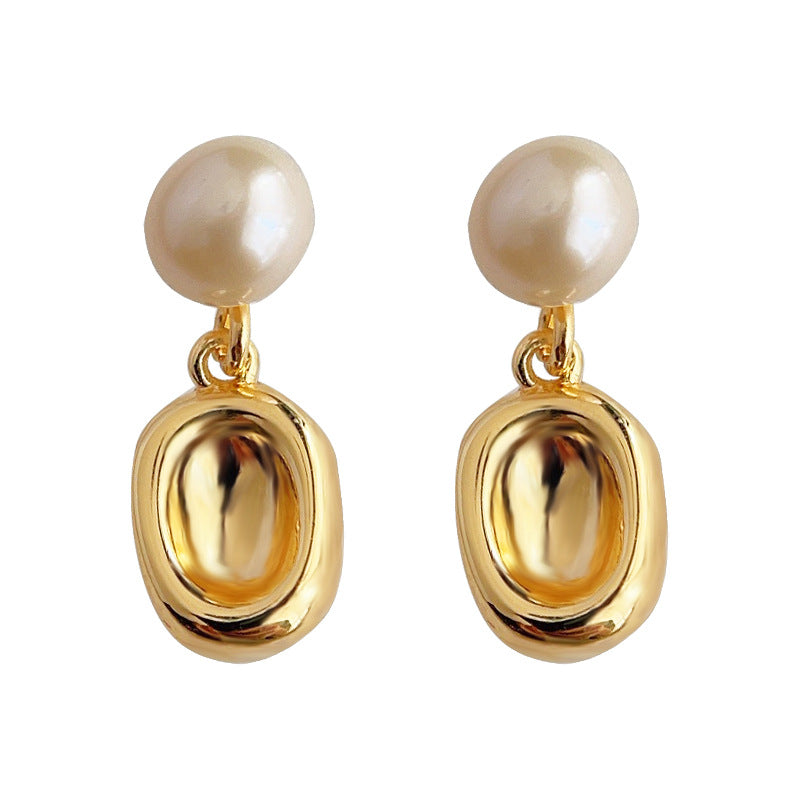 C廠【3773】淡水珍珠高級感輕奢風鍍14K銀針幾何簡約百搭時尚耳環耳環女 24.04-2