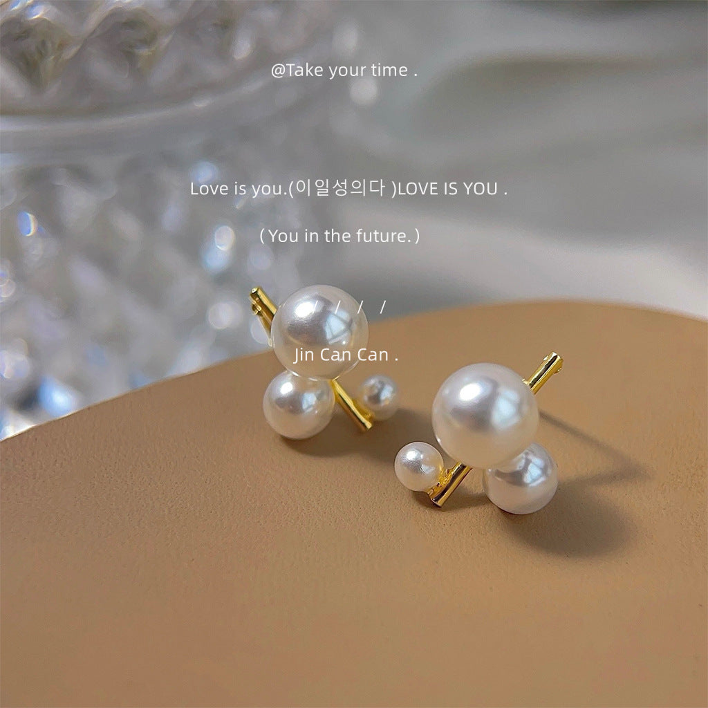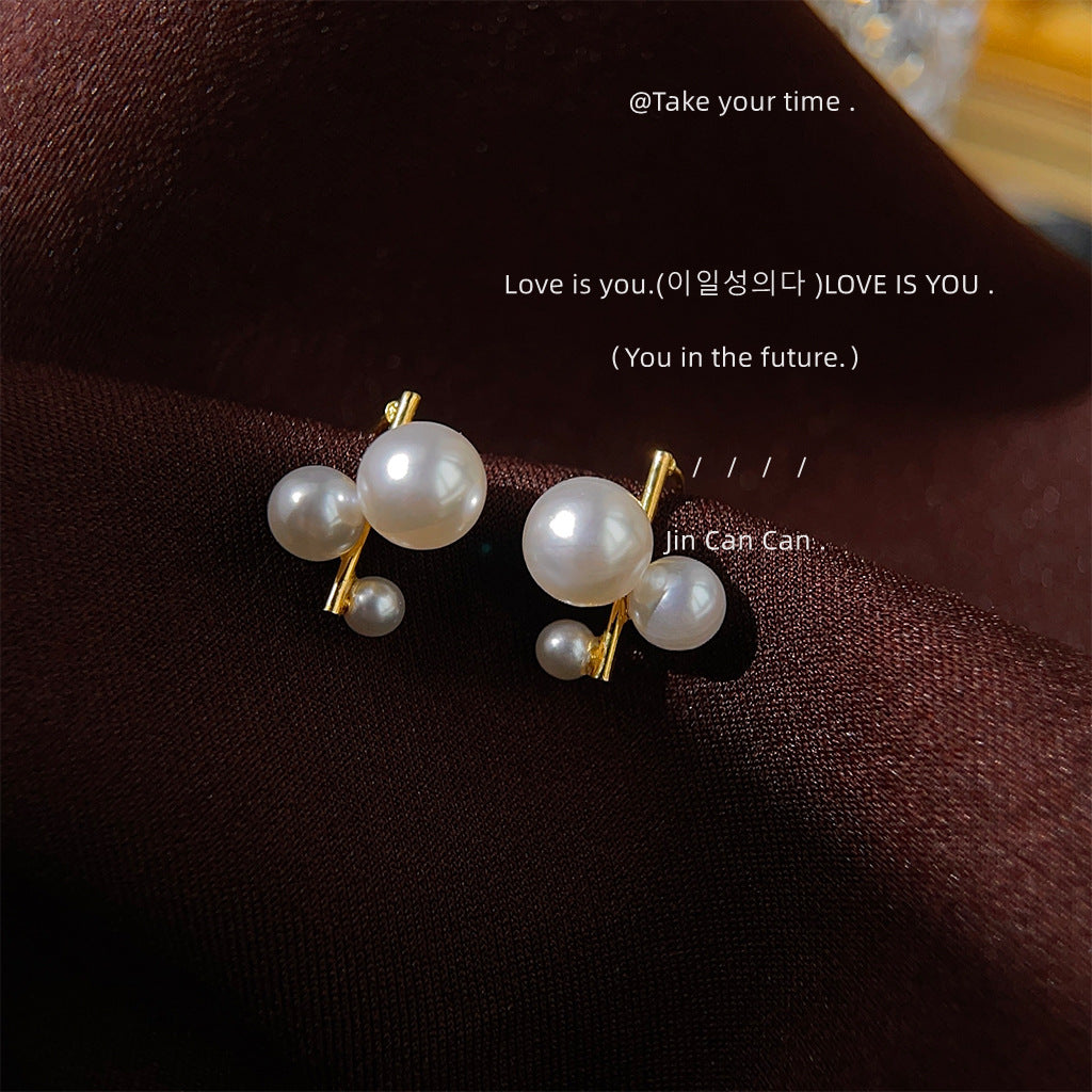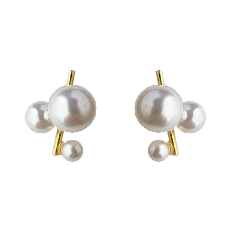 C廠【3780】個性小眾設計師珍珠幾何鍍14K耳環ins通勤百搭網紅耳飾飾品女 24.04-2