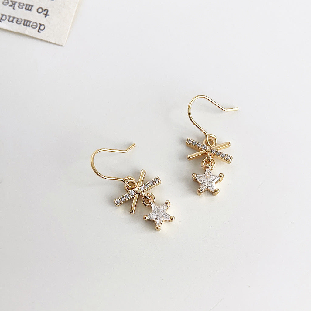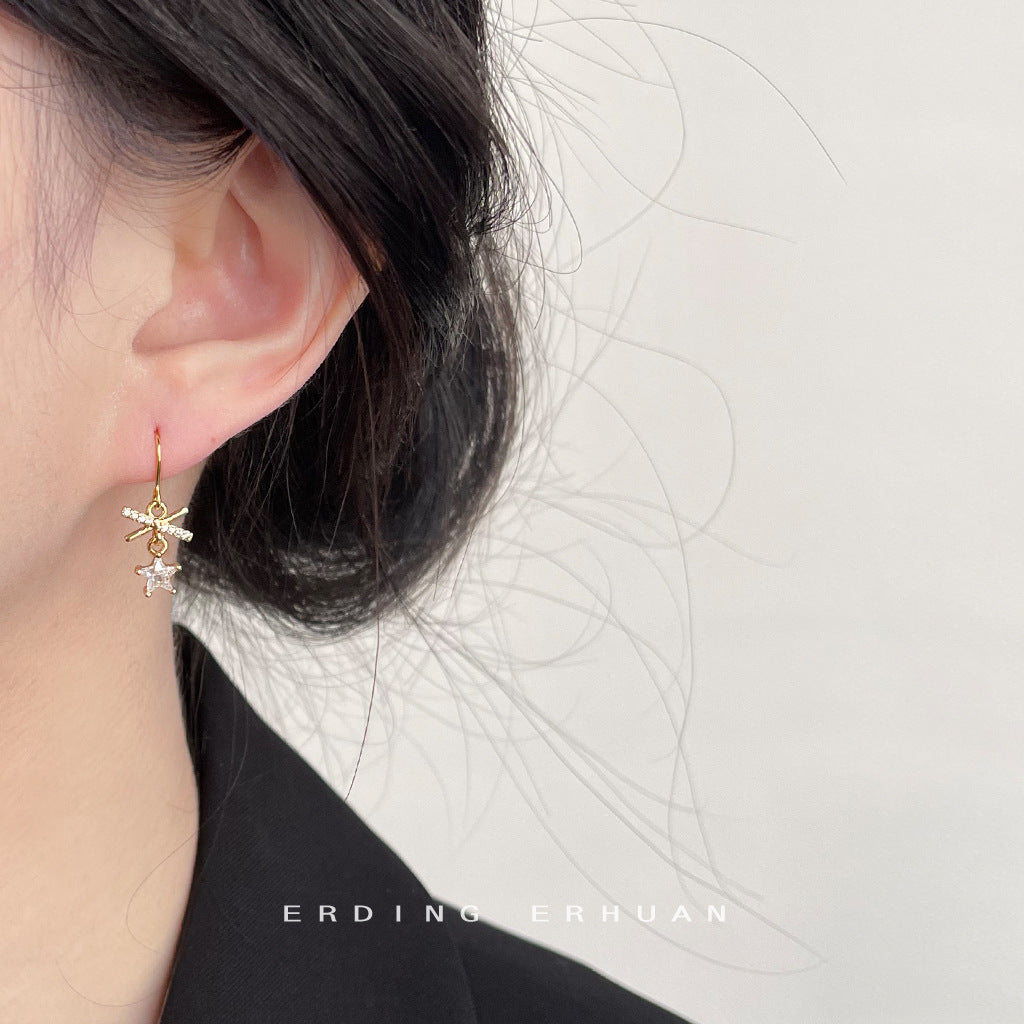 C廠【3784】升級版電鍍18K真金加厚微鑲鋯石蝴蝶結輕奢風通勤百搭耳飾女耳環 24.04-2
