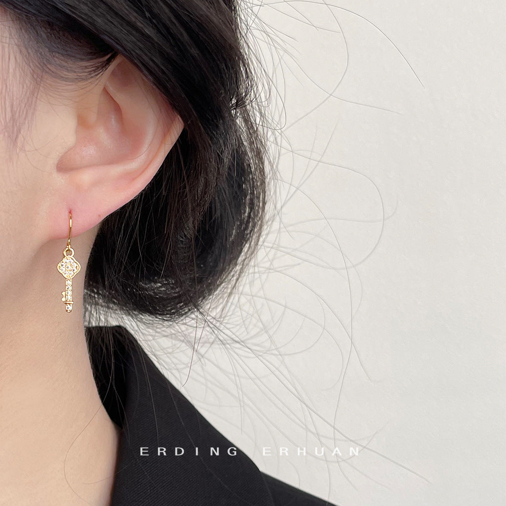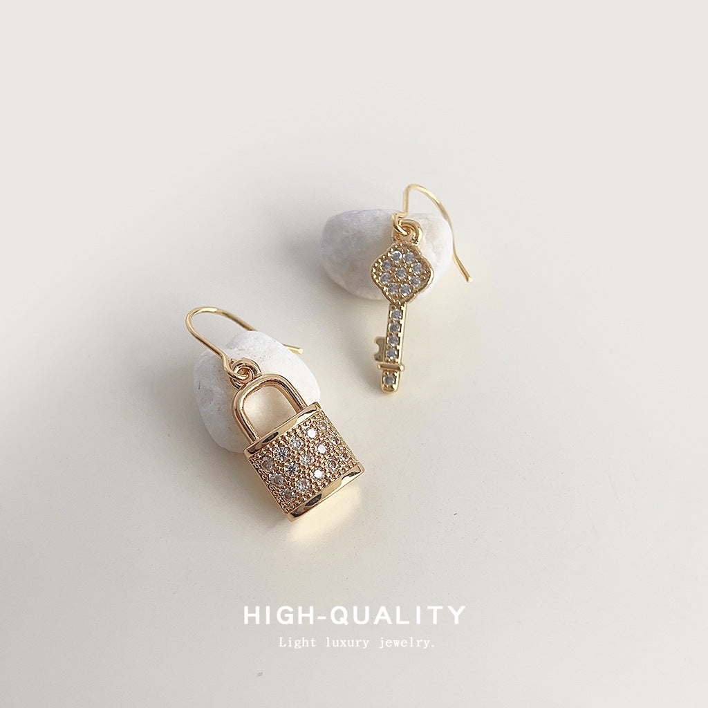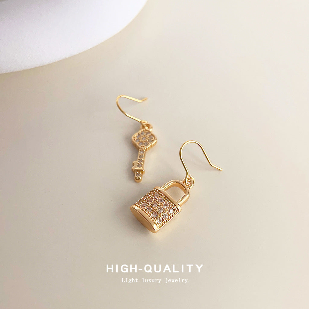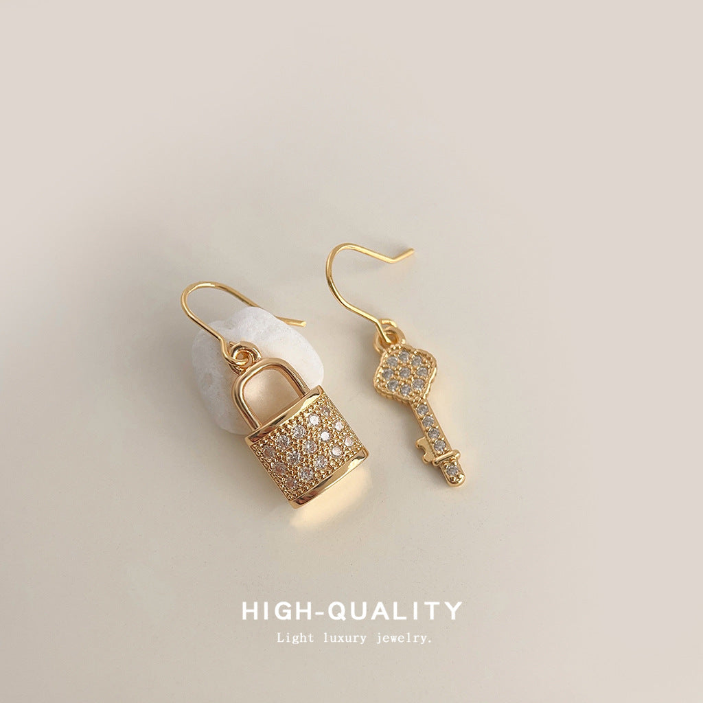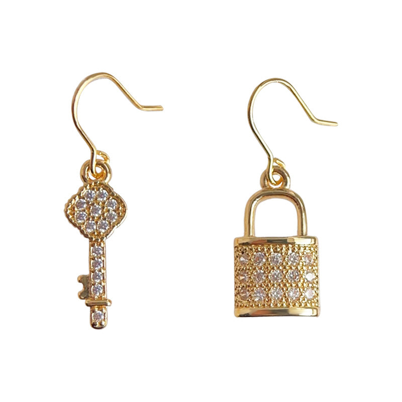 C廠【3786】升級版電鍍18K不對稱設計感個性輕奢風鎖與鑰匙小巧耳環 24.04-2