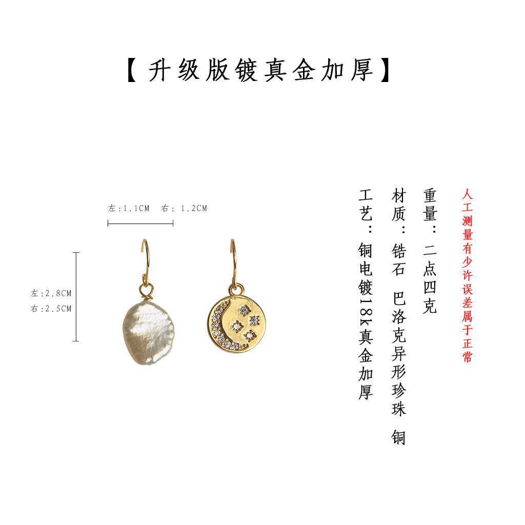 C廠【3789】升級版鍍18K真金巴洛克天然淡水珍珠不對稱設計法式復古耳環耳環 24.05-1