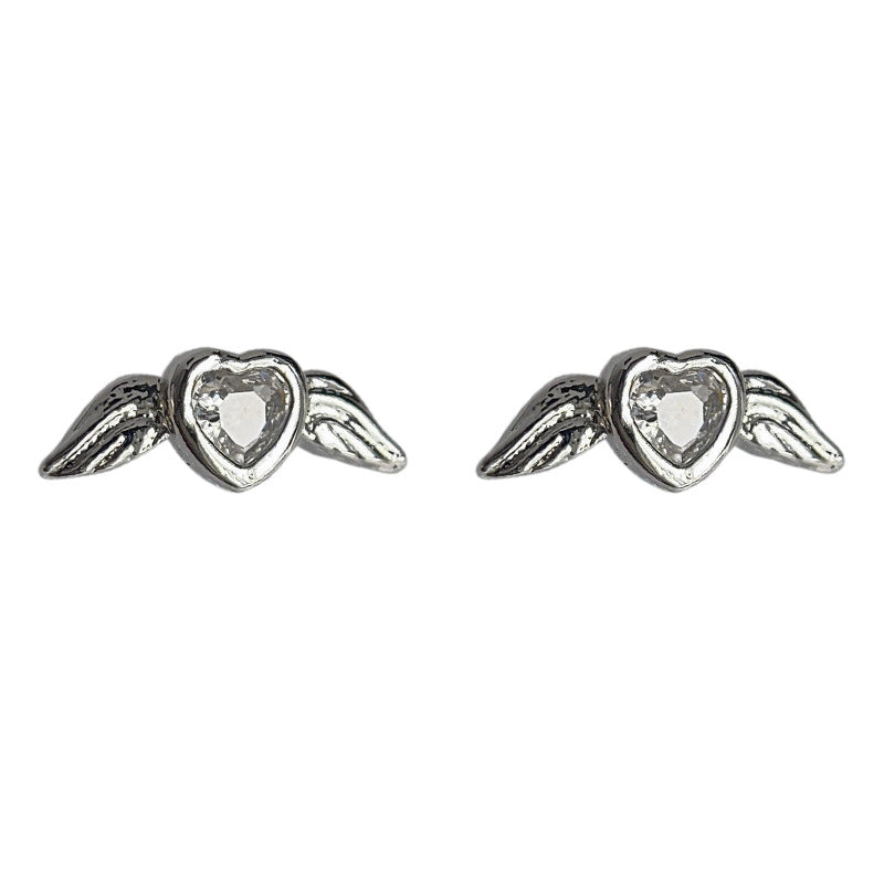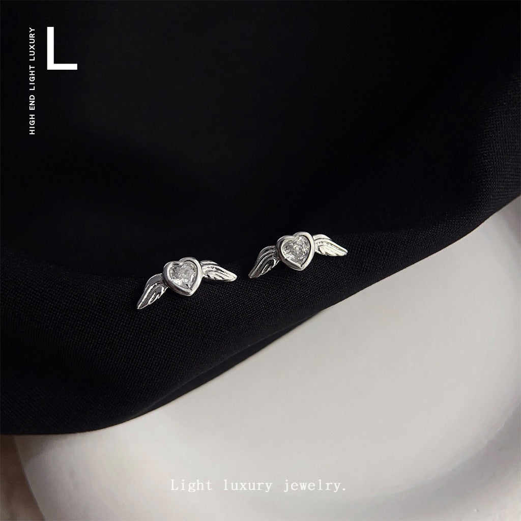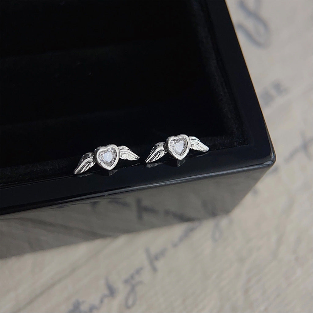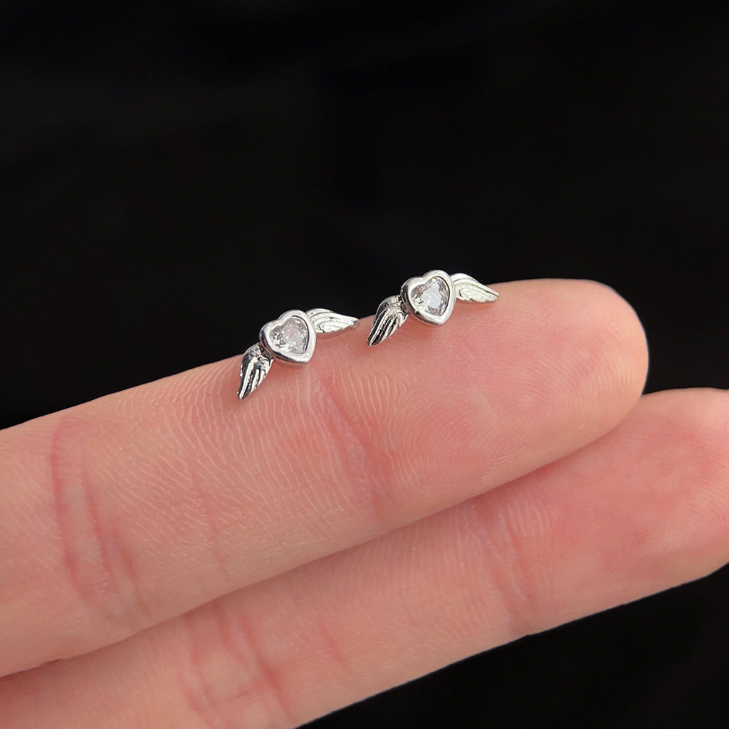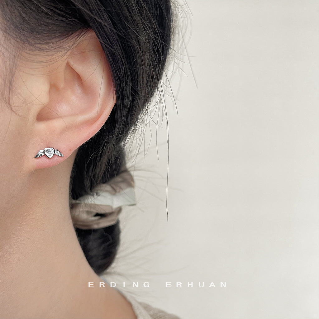 C廠【3801】迷你版微鑲鋯石小天使翅膀個性簡約通勤百搭ins耳環銀針耳飾 24.04-2